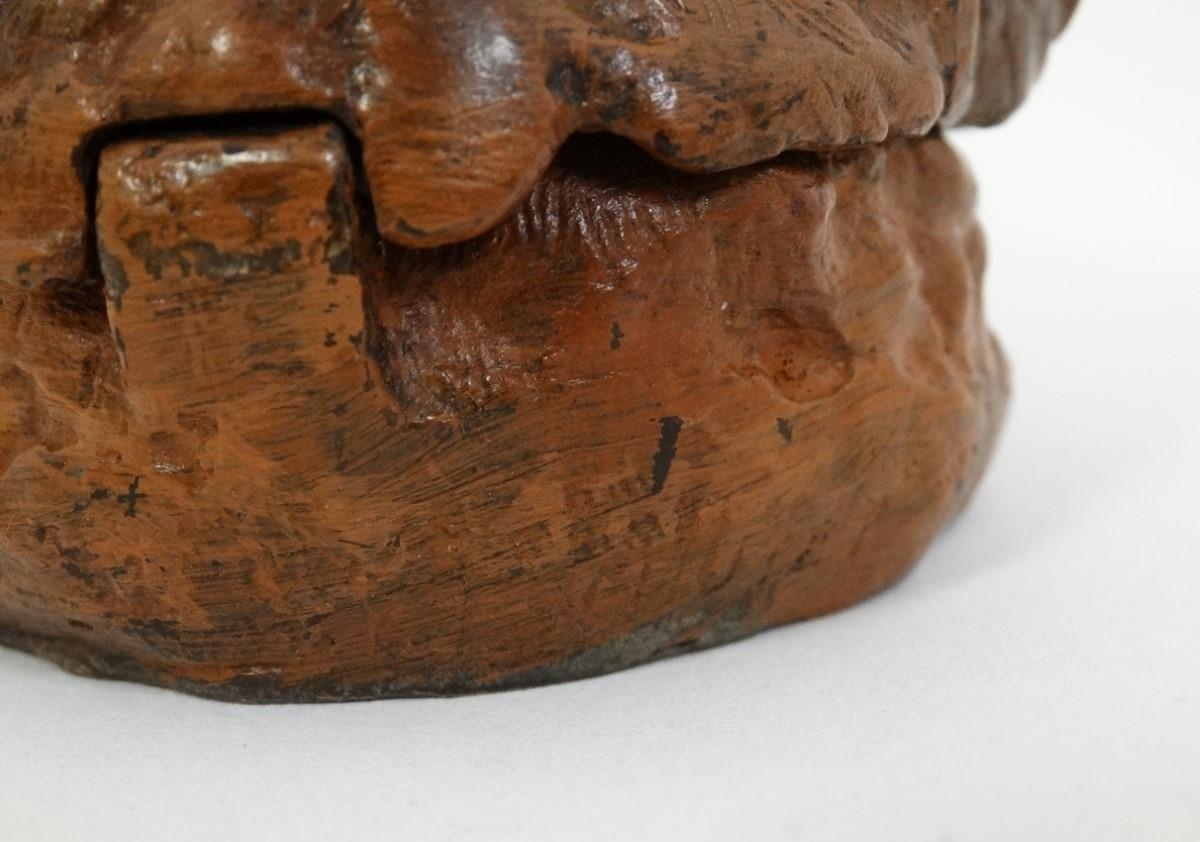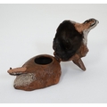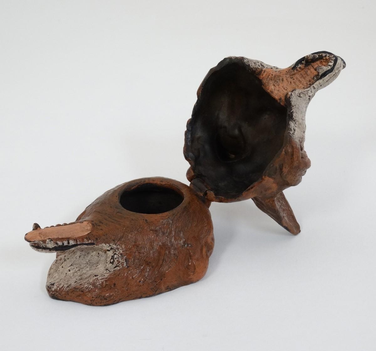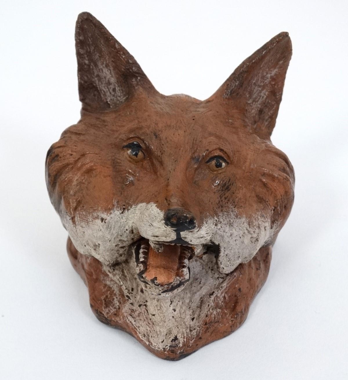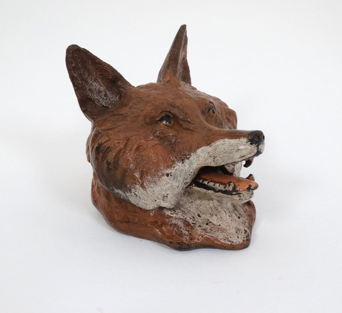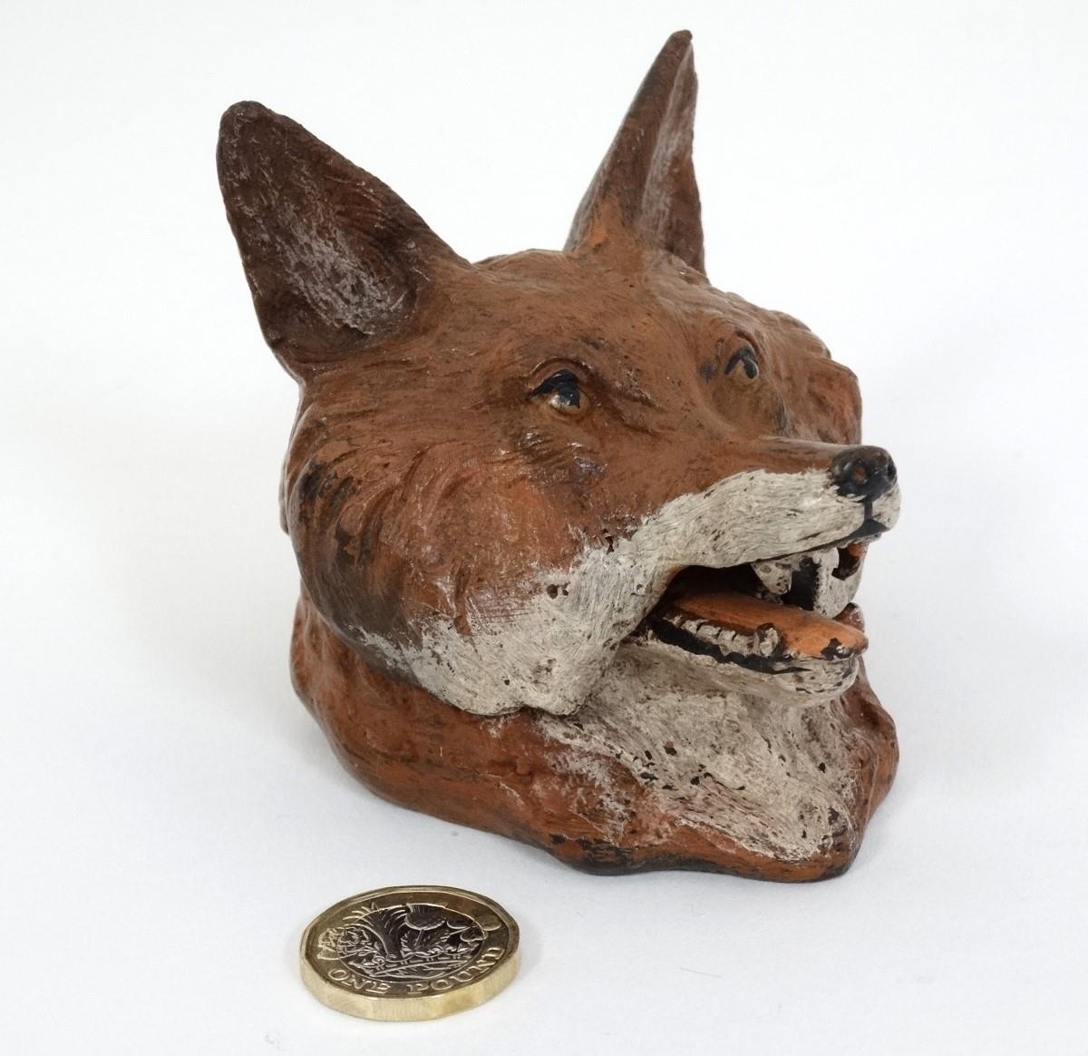 A 21stC novelty cold painted bronze inkwell formed as a fox head. Approx. 3 1/2'' long