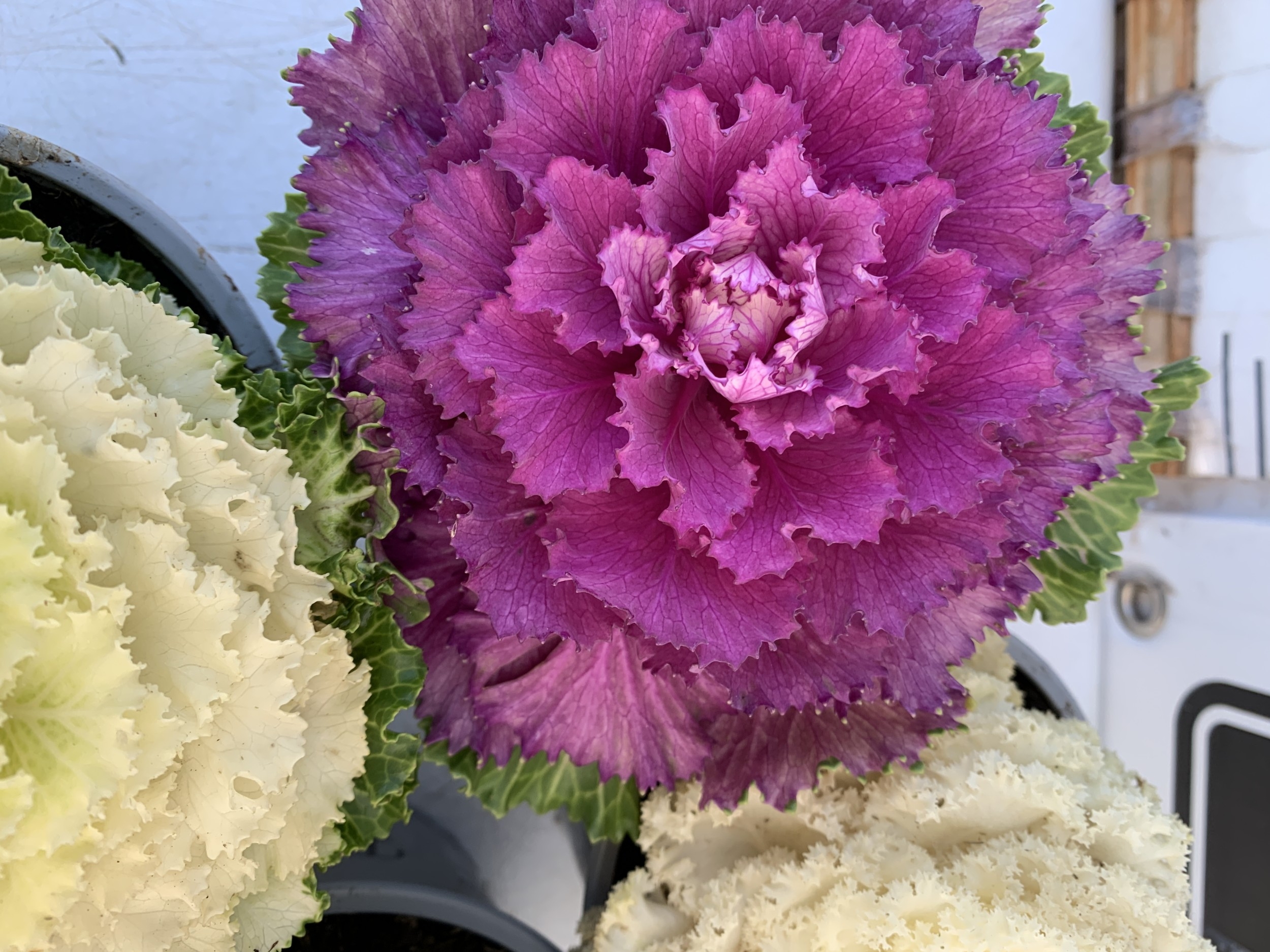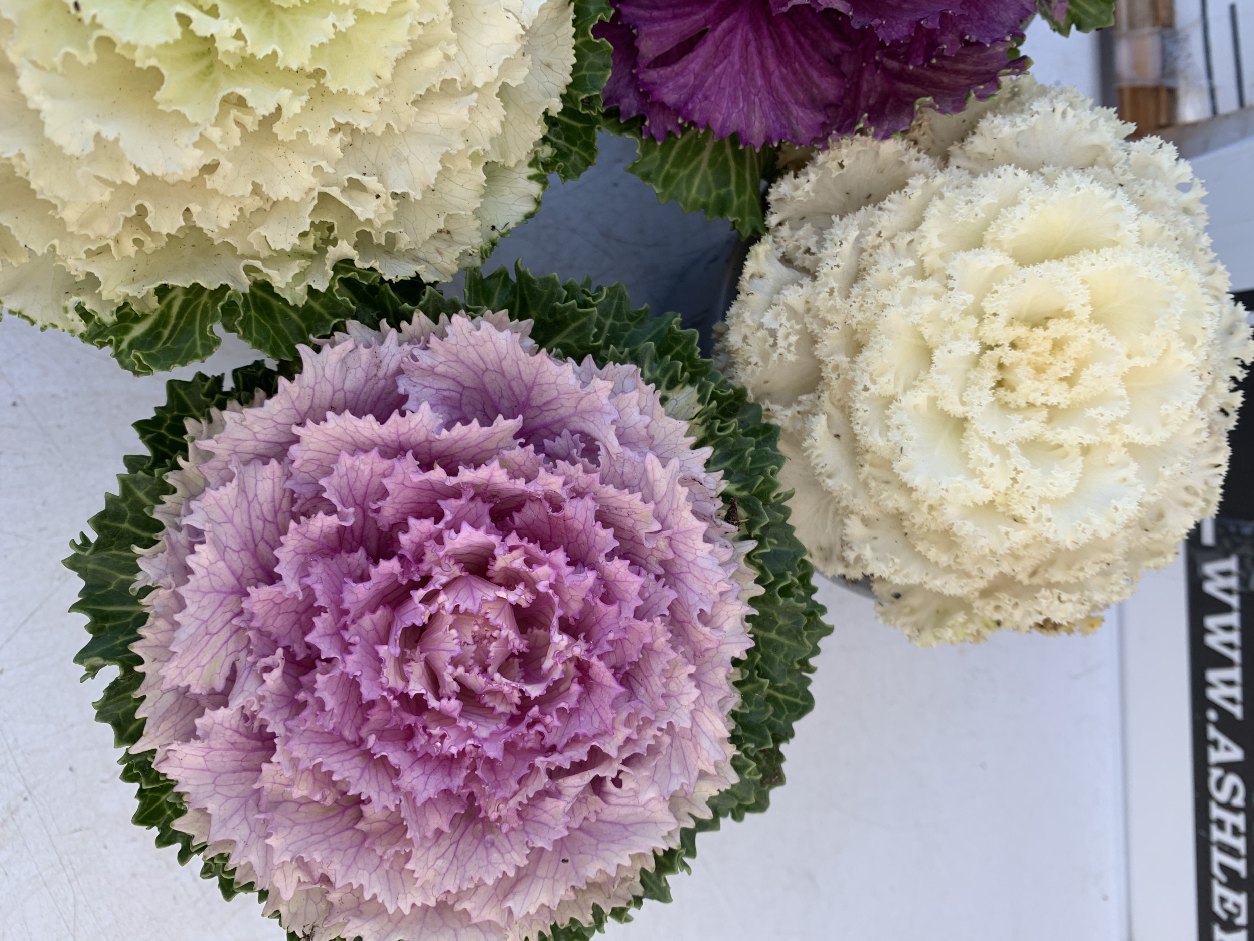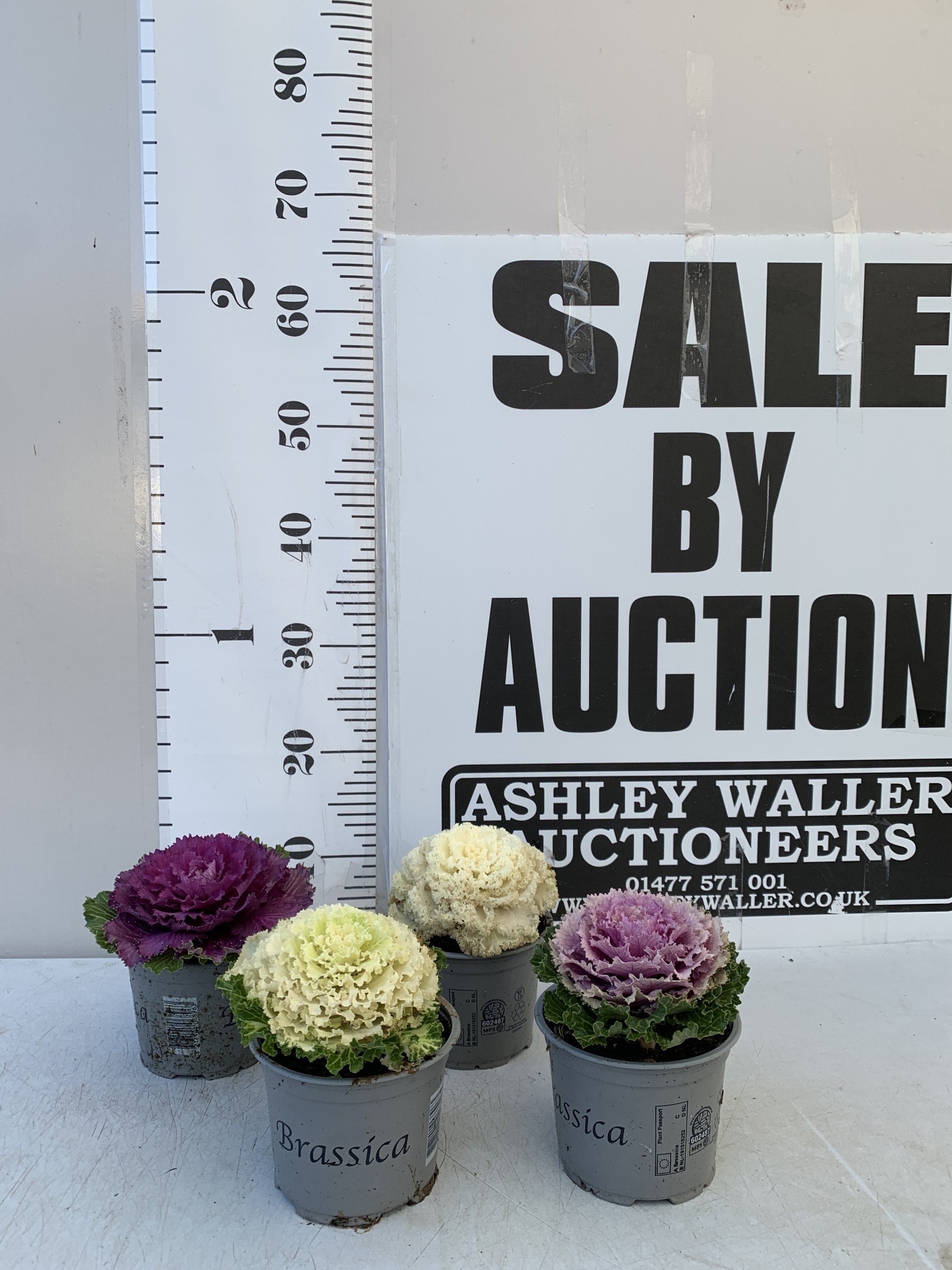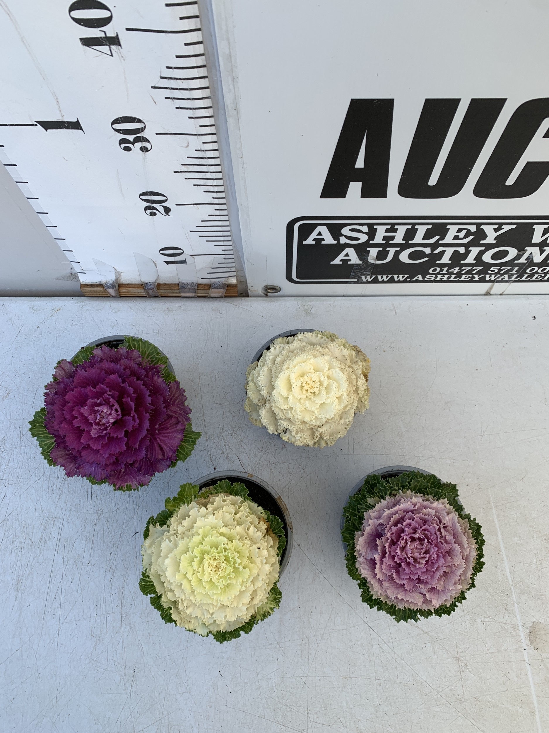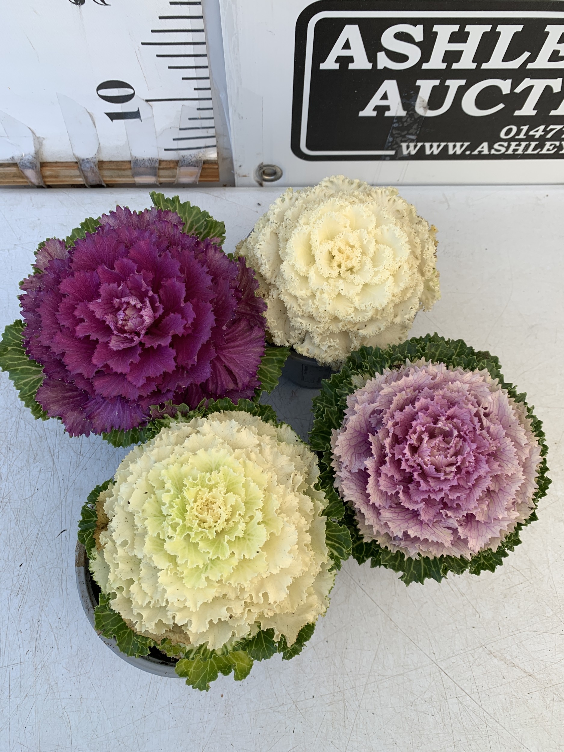 FOUR POTTED MULTCOLOURED ORNAMENTAL CABBAGE BRASSICAS IN 10C...