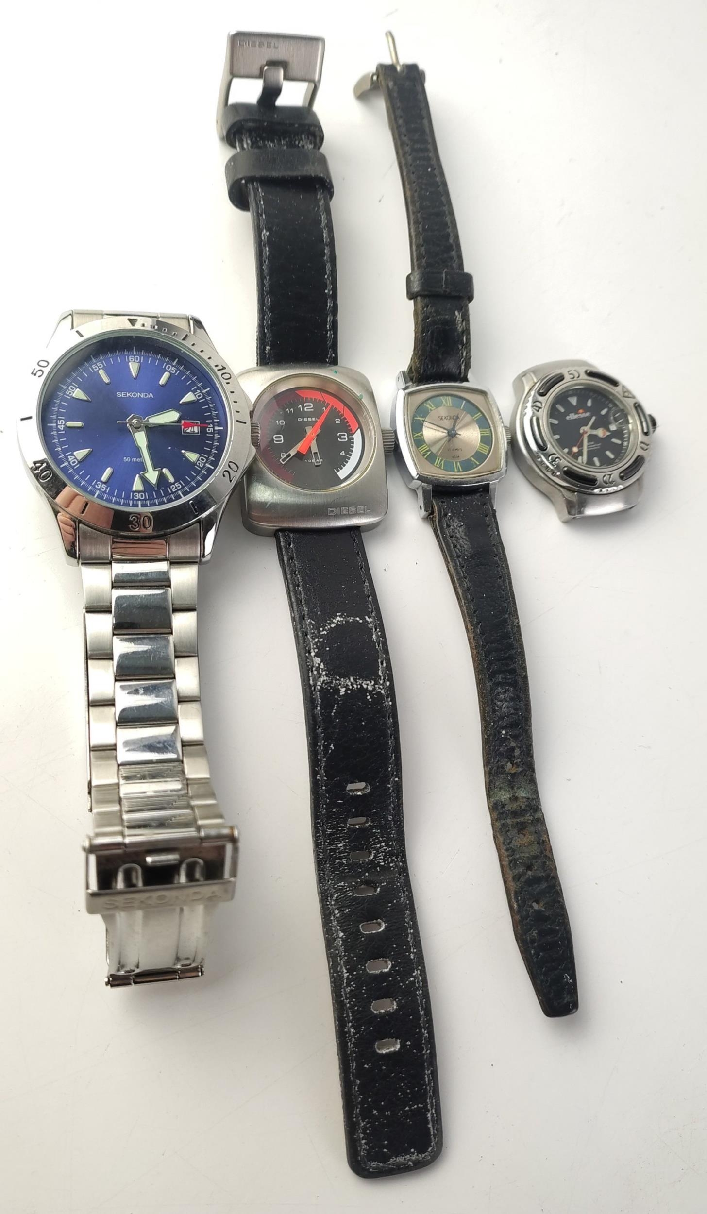 WATCHES. A DIESEL, A SEKONDA and two others. Batteries may be required.