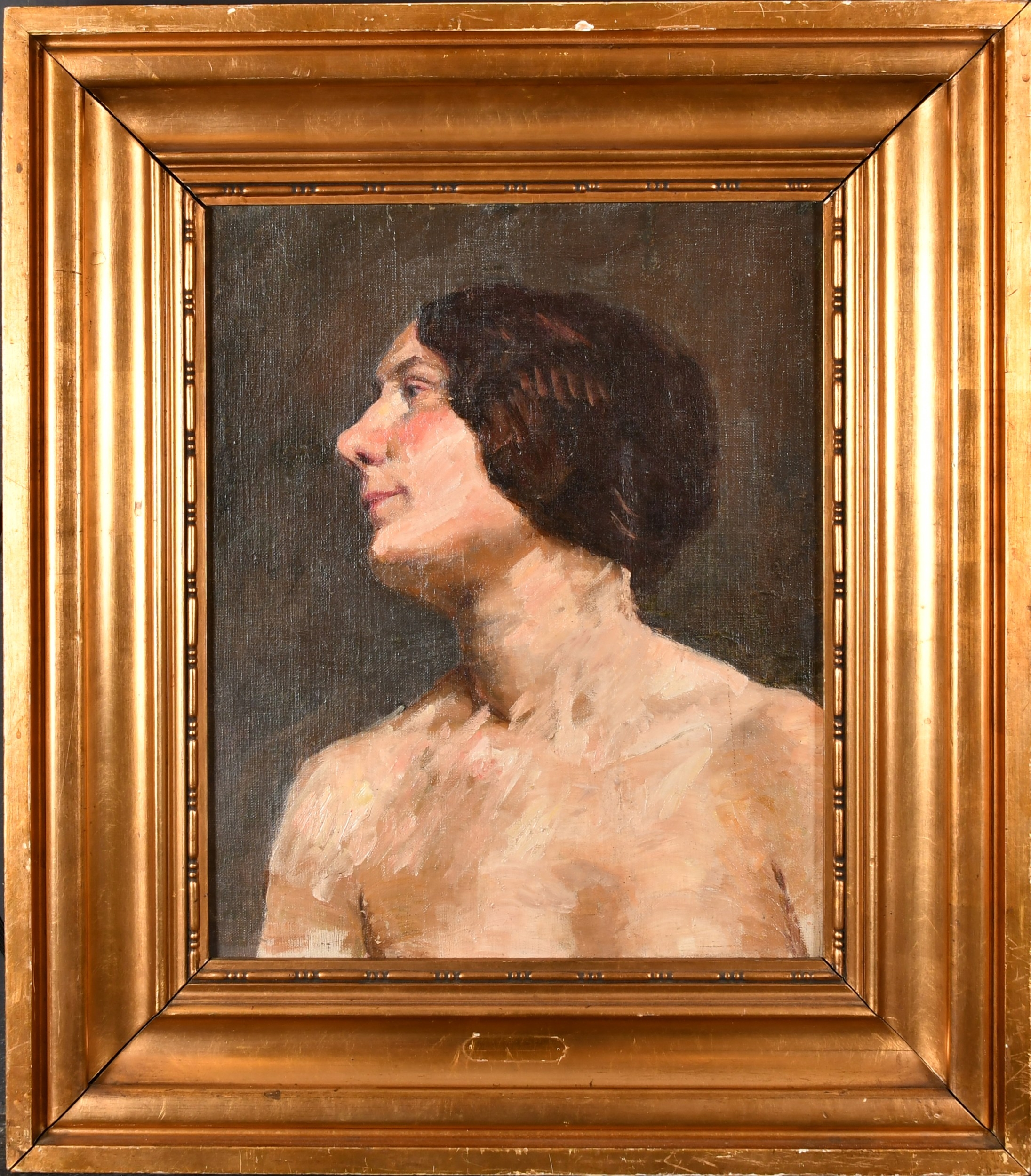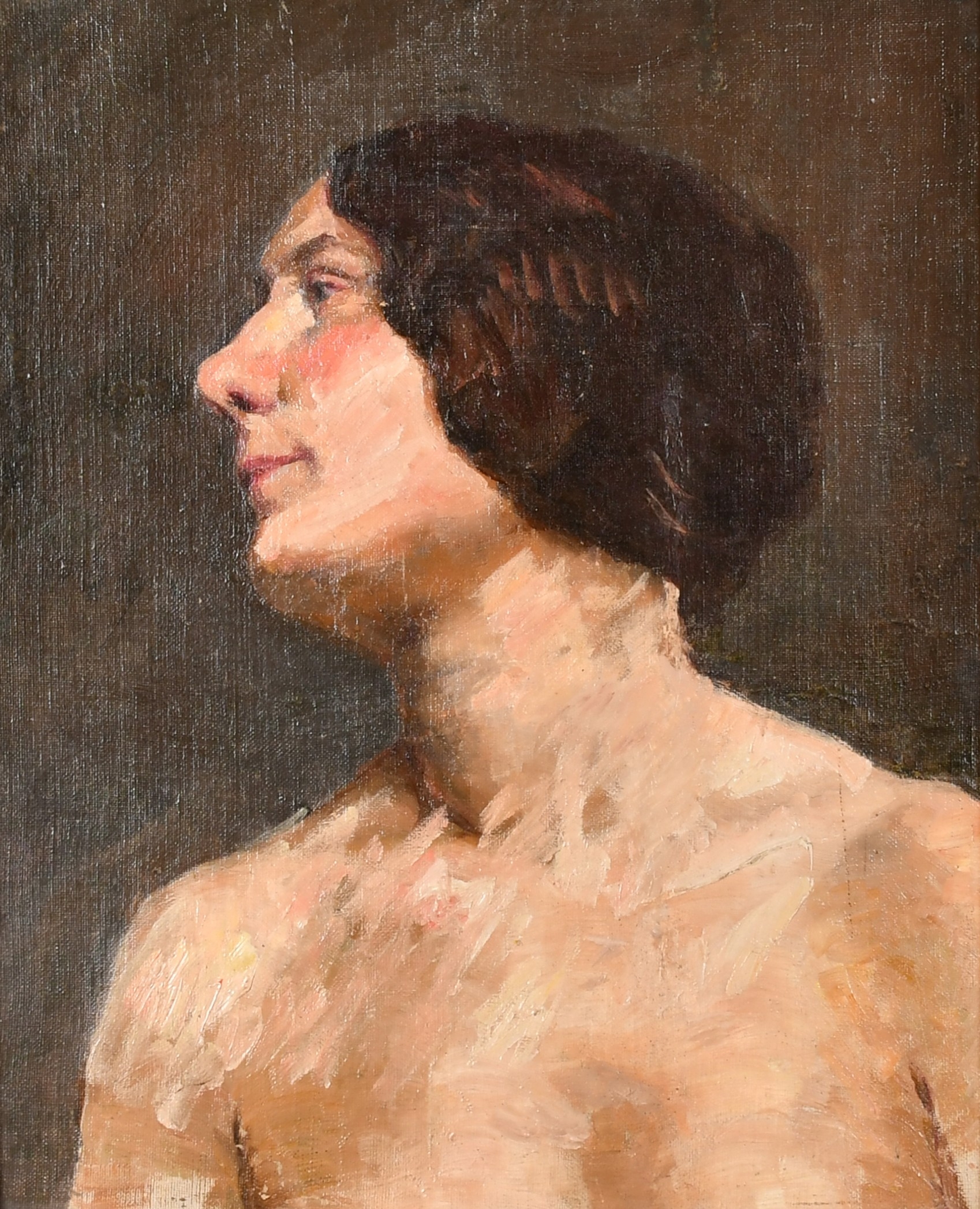 20th Century European School. Bust Portrait of a Nude, Oil on canvas, 18" x 15" (45.7 x 38.1cm)