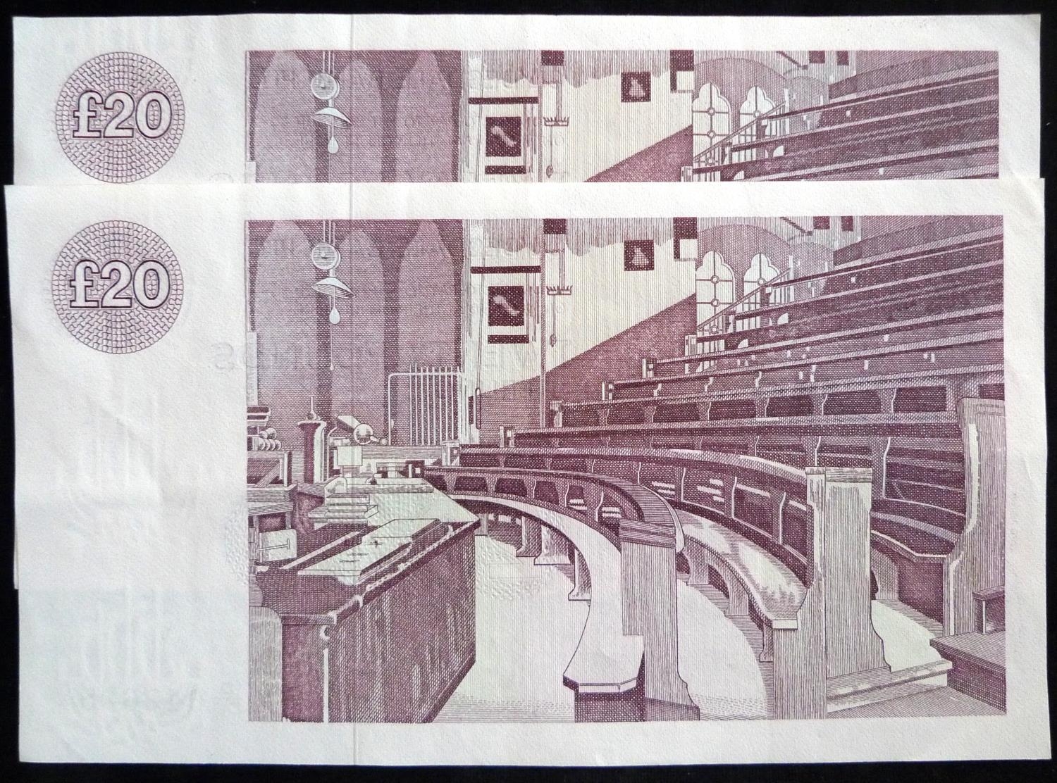 Clydesdale Bank plc. £20. (2) SC351b. 08.04. 85. D/DG 042628 - 629 consecutive. NEF.