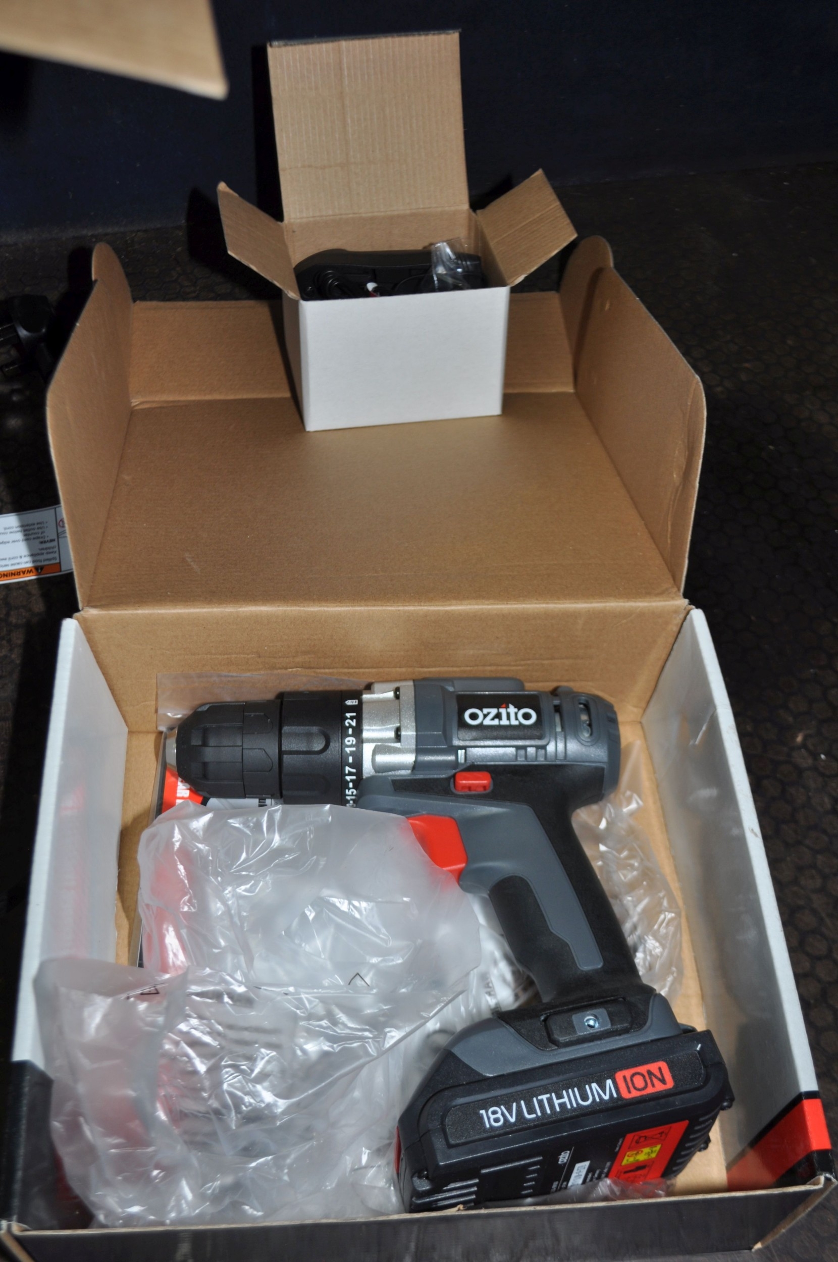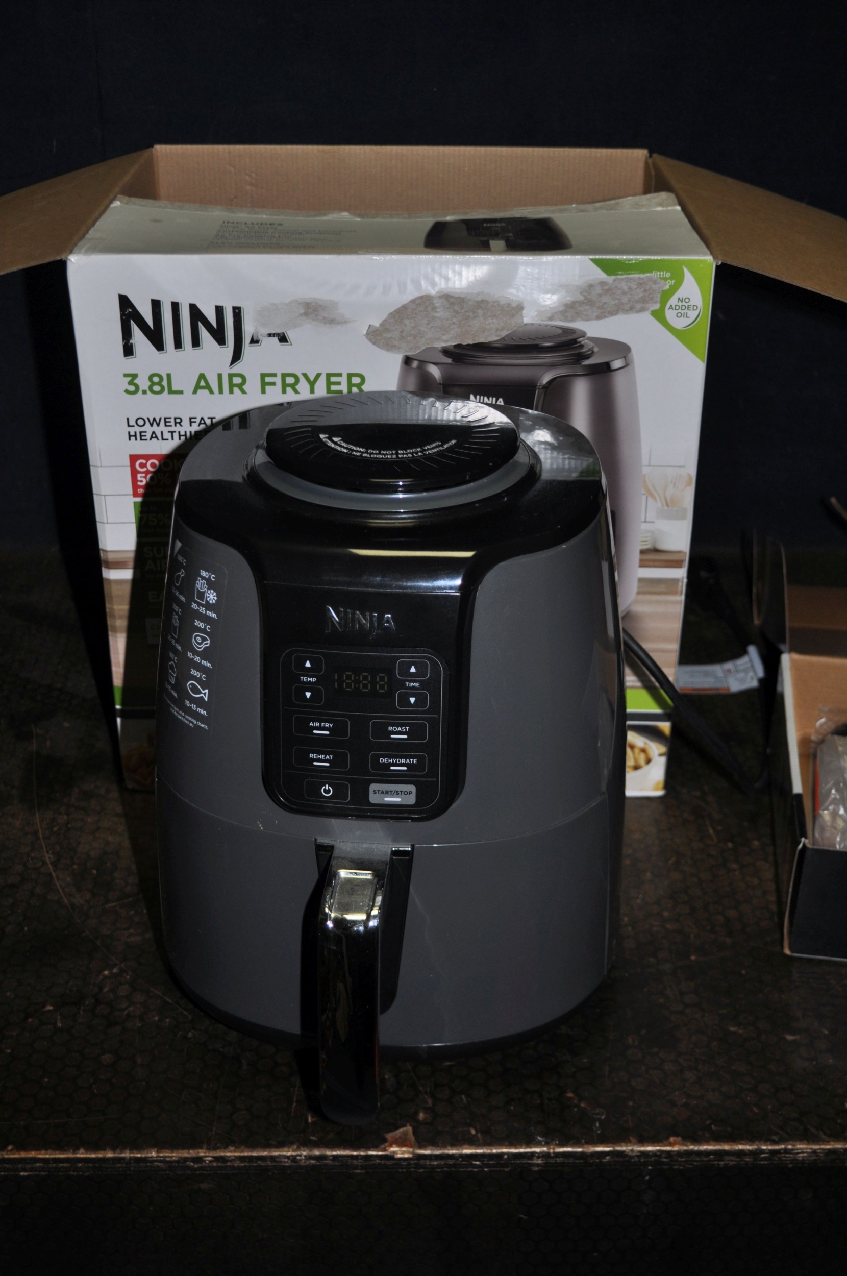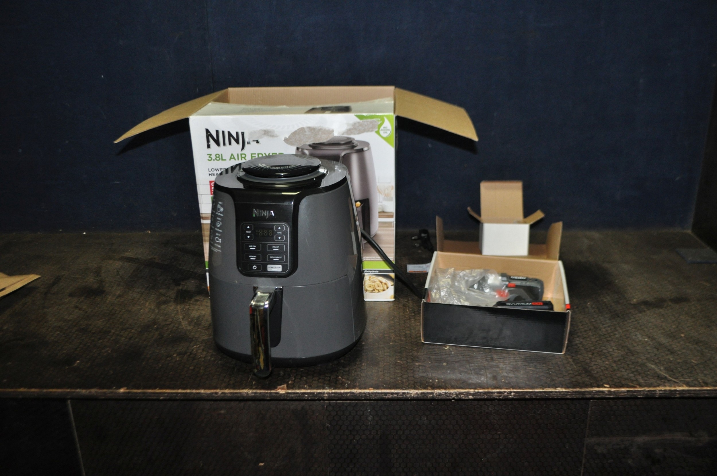 A NINJA AIR FRYER with original box, 3.8ltr capacity and an Ozito 18v cordless drill driver with original box, one battery and charger (both PAT pass and working)