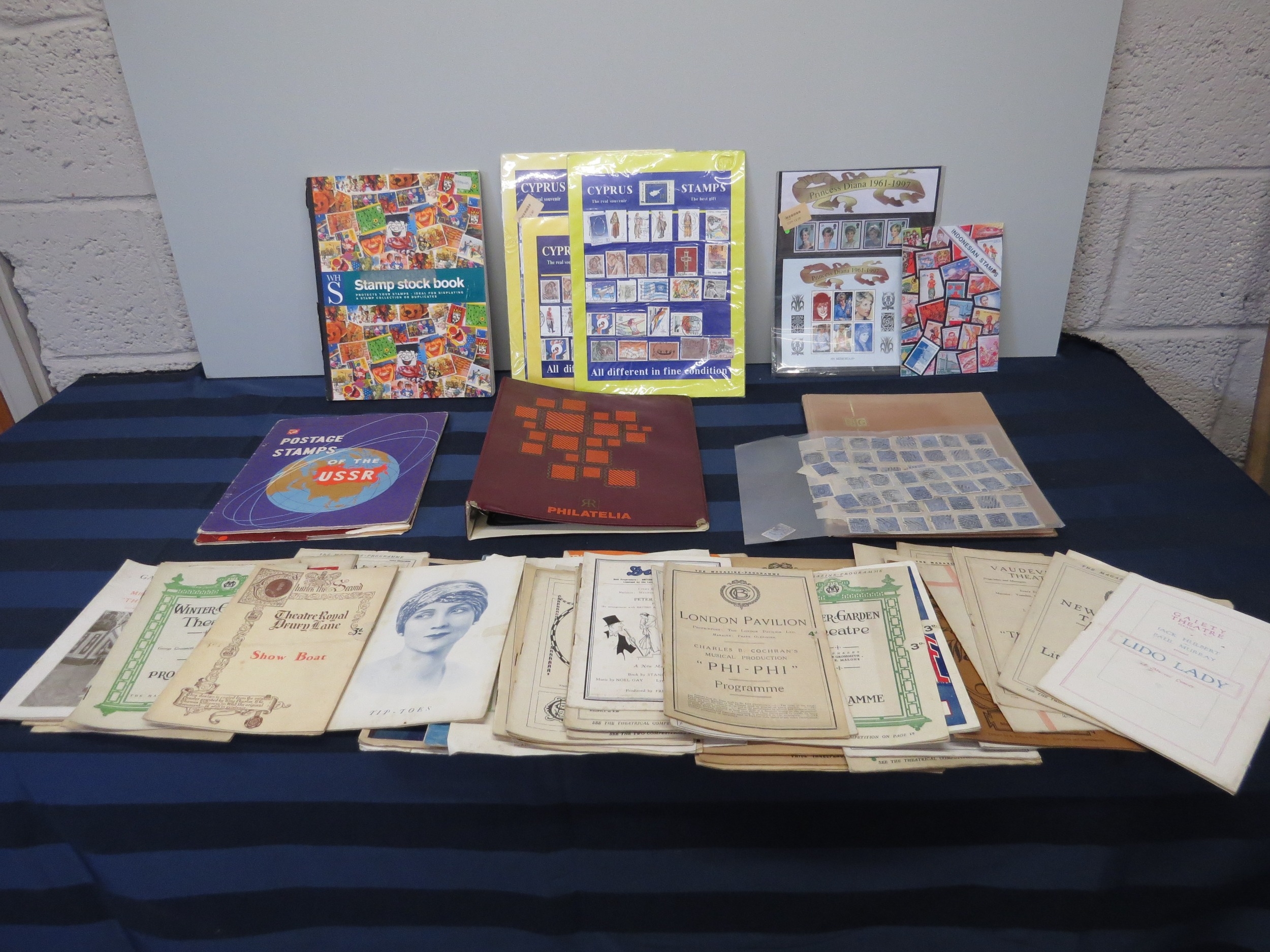 COLLECTION OF VARIOUS STAMPS IN ALBUMS AND SOME EARLY TO MID 20TH CENTURY THEATRE PROGRAMMES