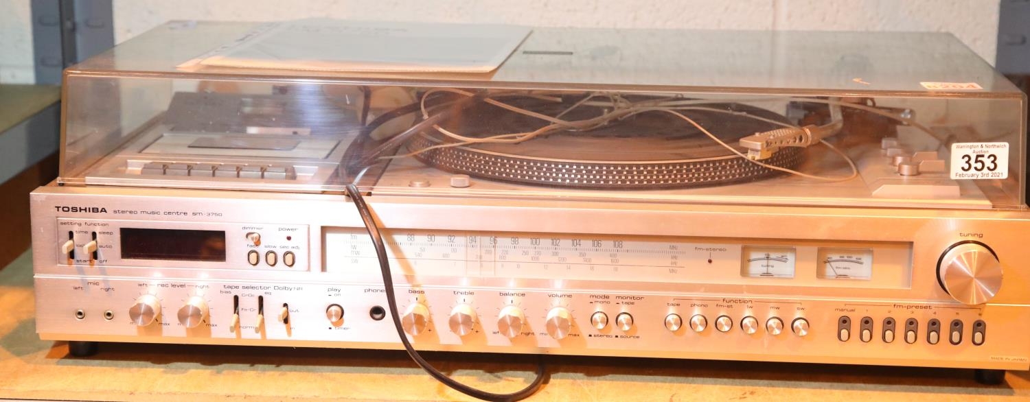 Toshiba stereo music centre SM-3750 with speakers. Not available for in-house P&P, contact Paul O'Hea at Mailboxes on 01925 659133