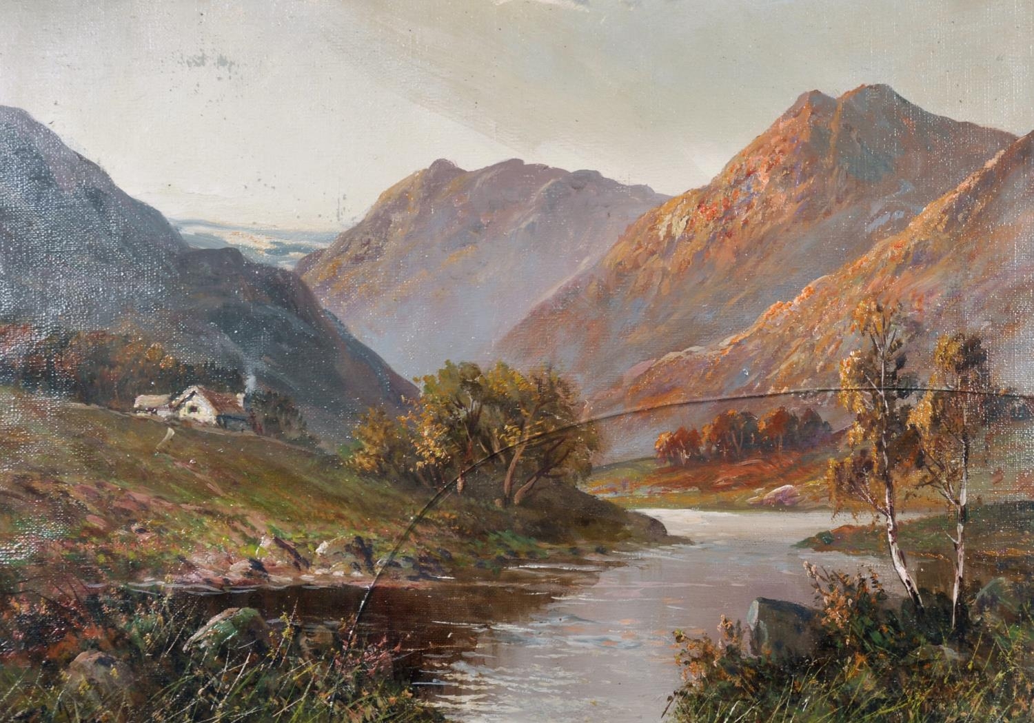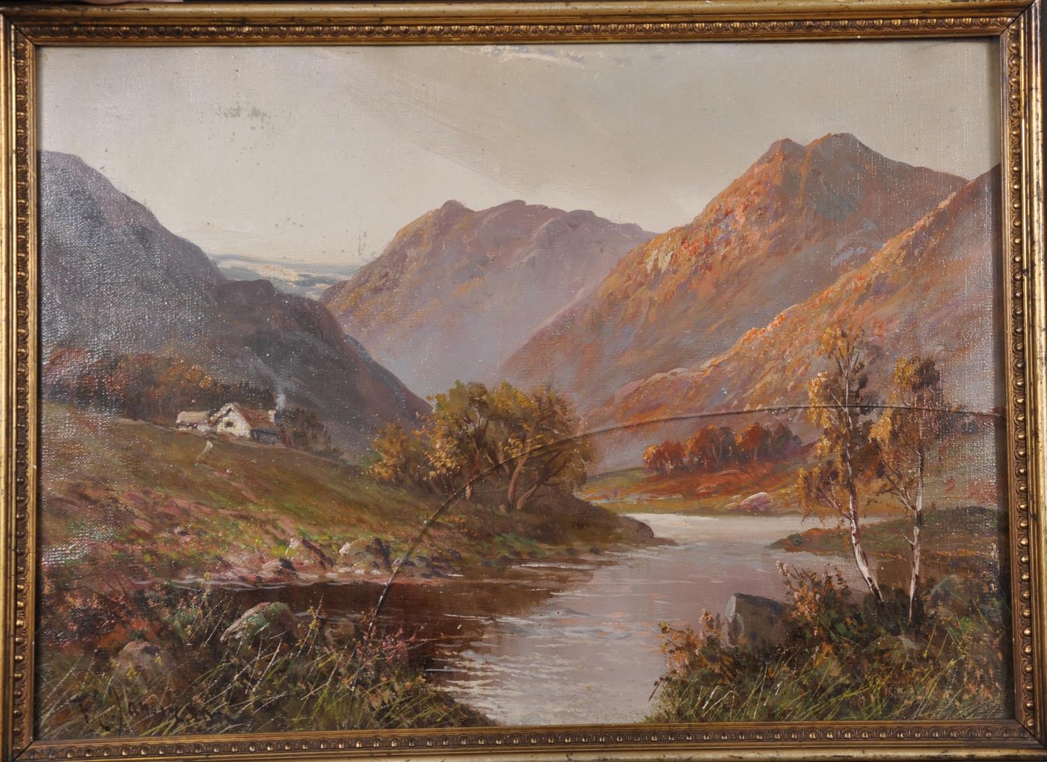 Frank E Jamieson (1834-1899) British. A Mountainous River Landscape, Oil on Unstretched Canvas, Signed, 15.25” x 20.75” (38.5 x 52.7cm)