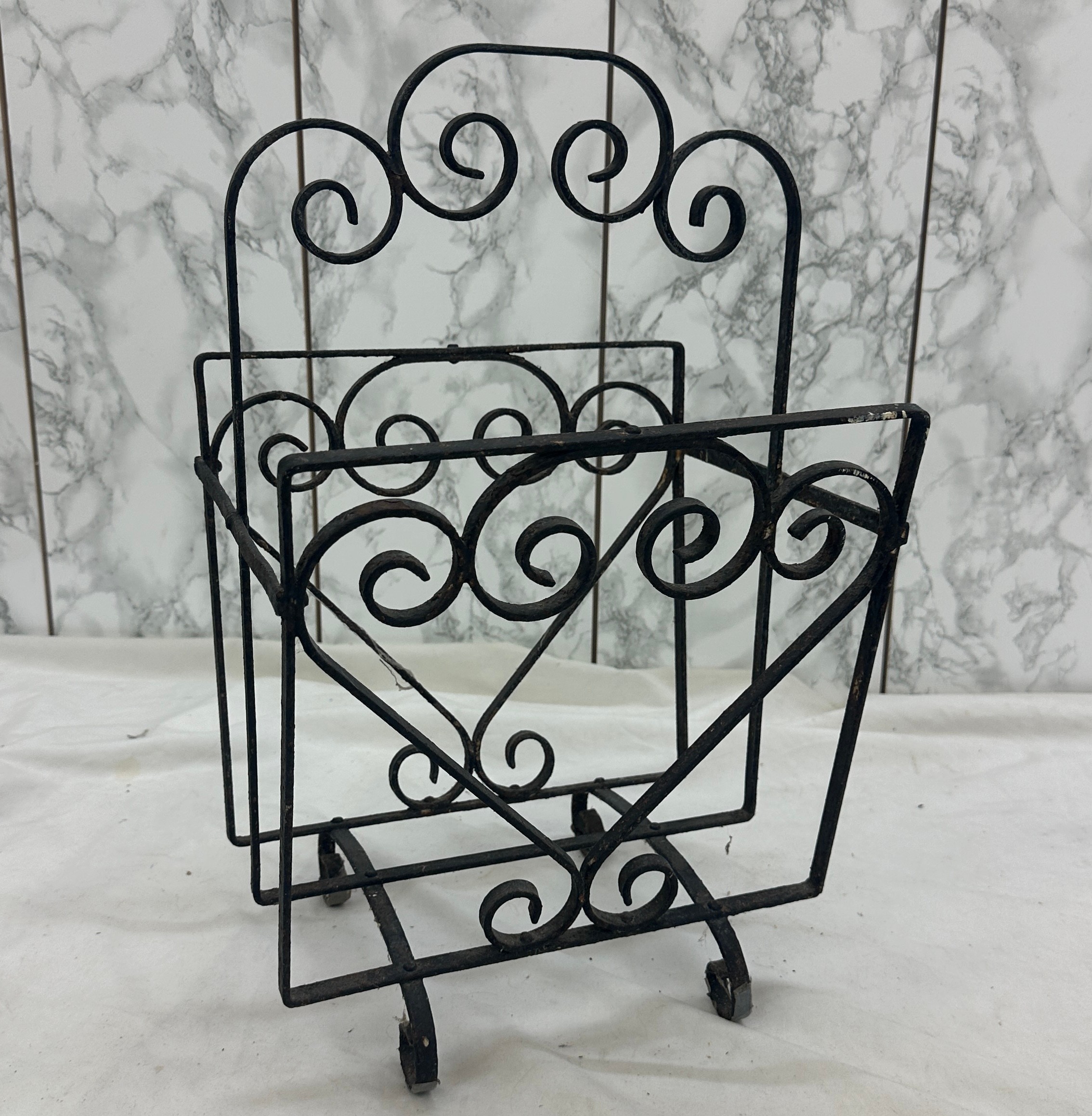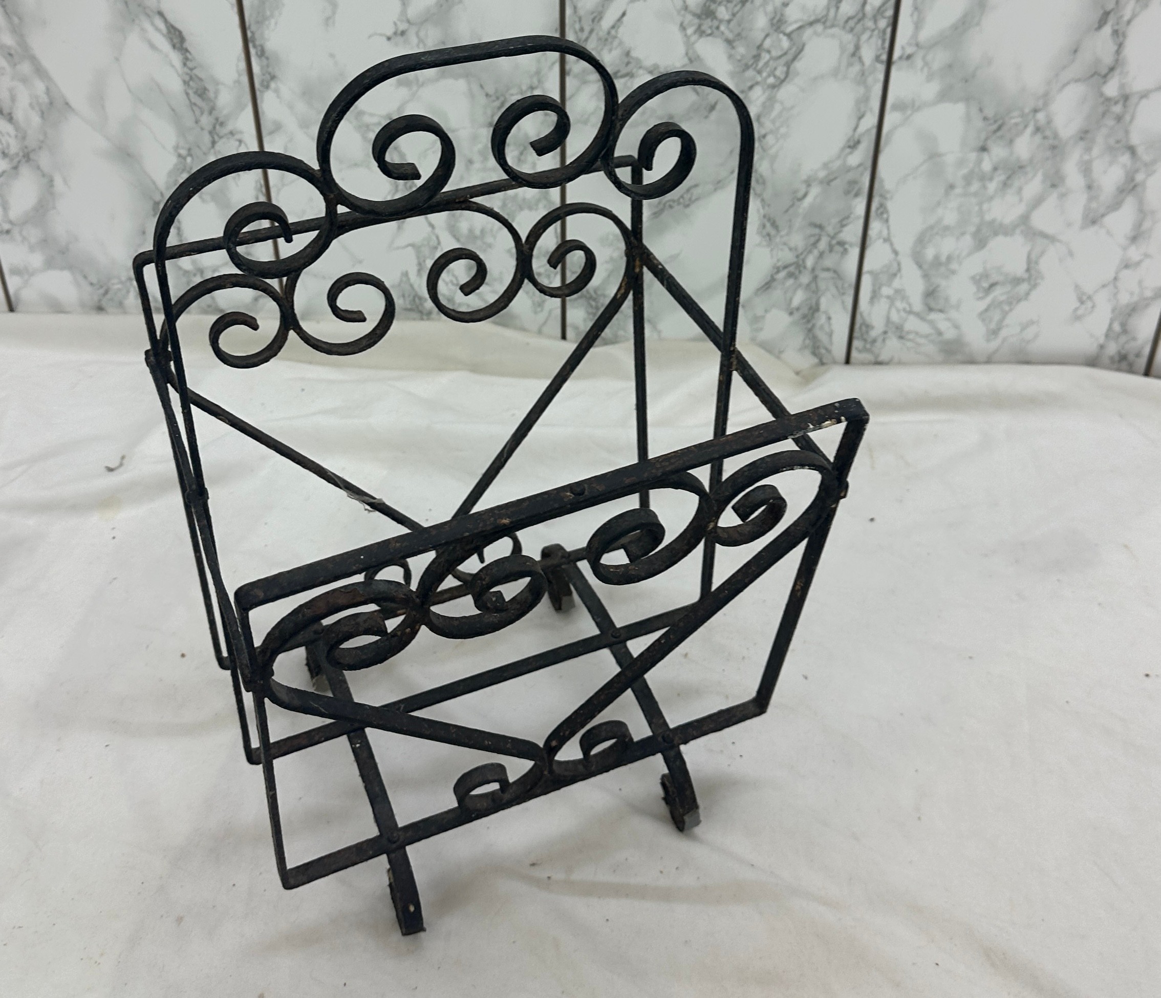 Cast iron magazine rack measures approximately 17 inches tall x 13 wide