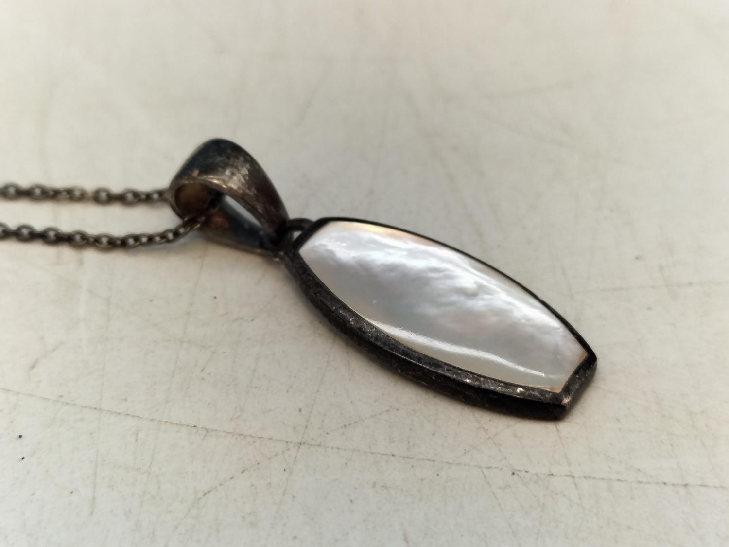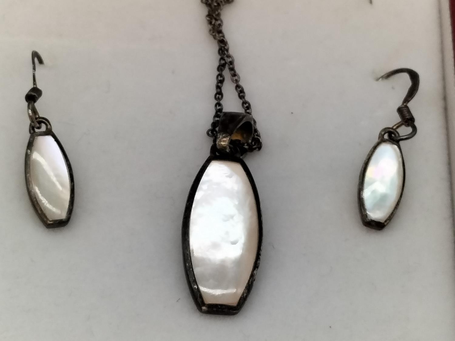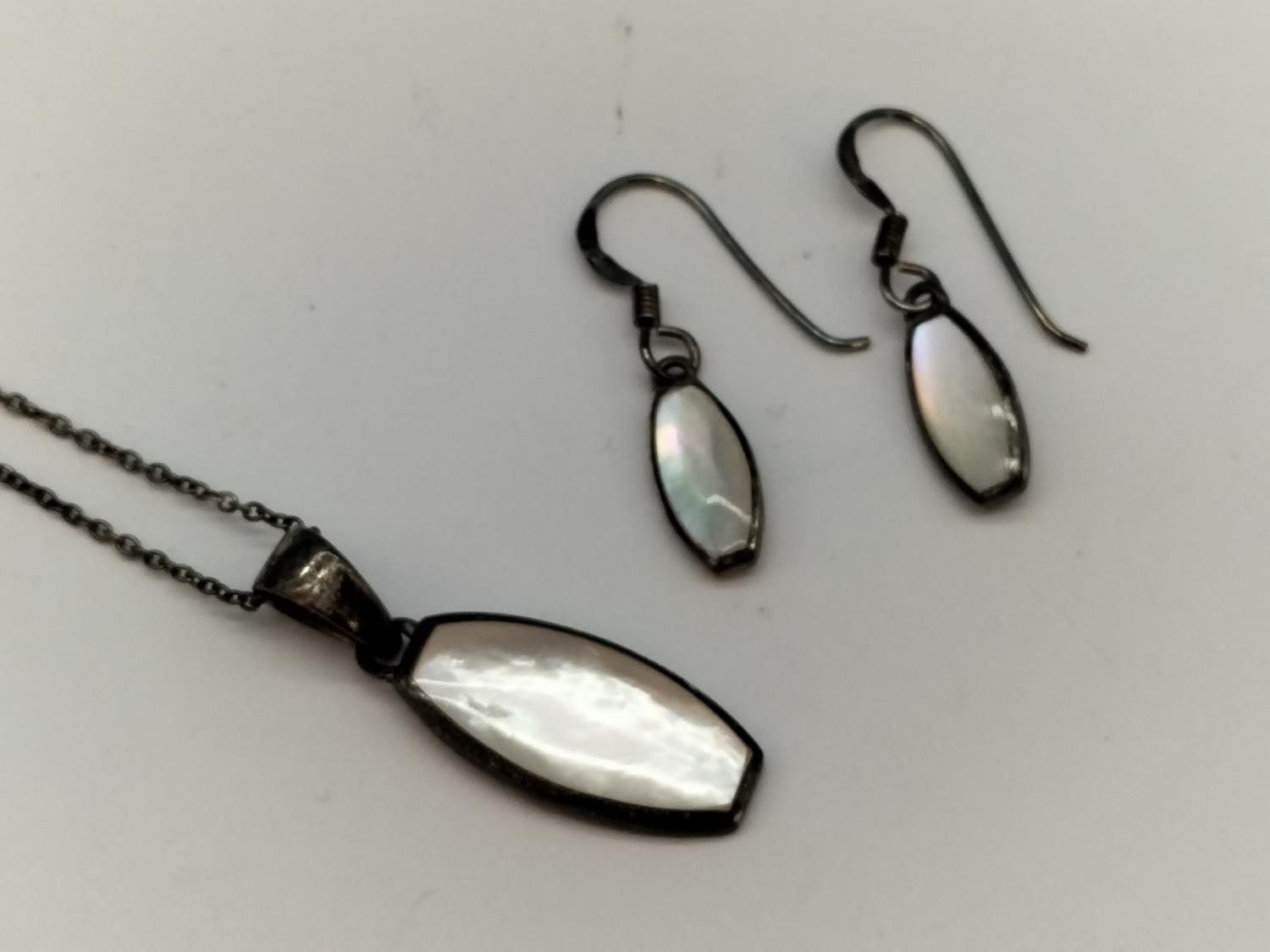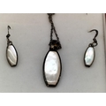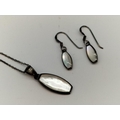 925 Silver and Mother of Pearl 16" Chain, Pendant and Earrings Set.