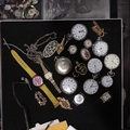 A selection of jewellery and watches, including a micro mosaic brooch, gold leaf foil sheets, pocket watches and further items
