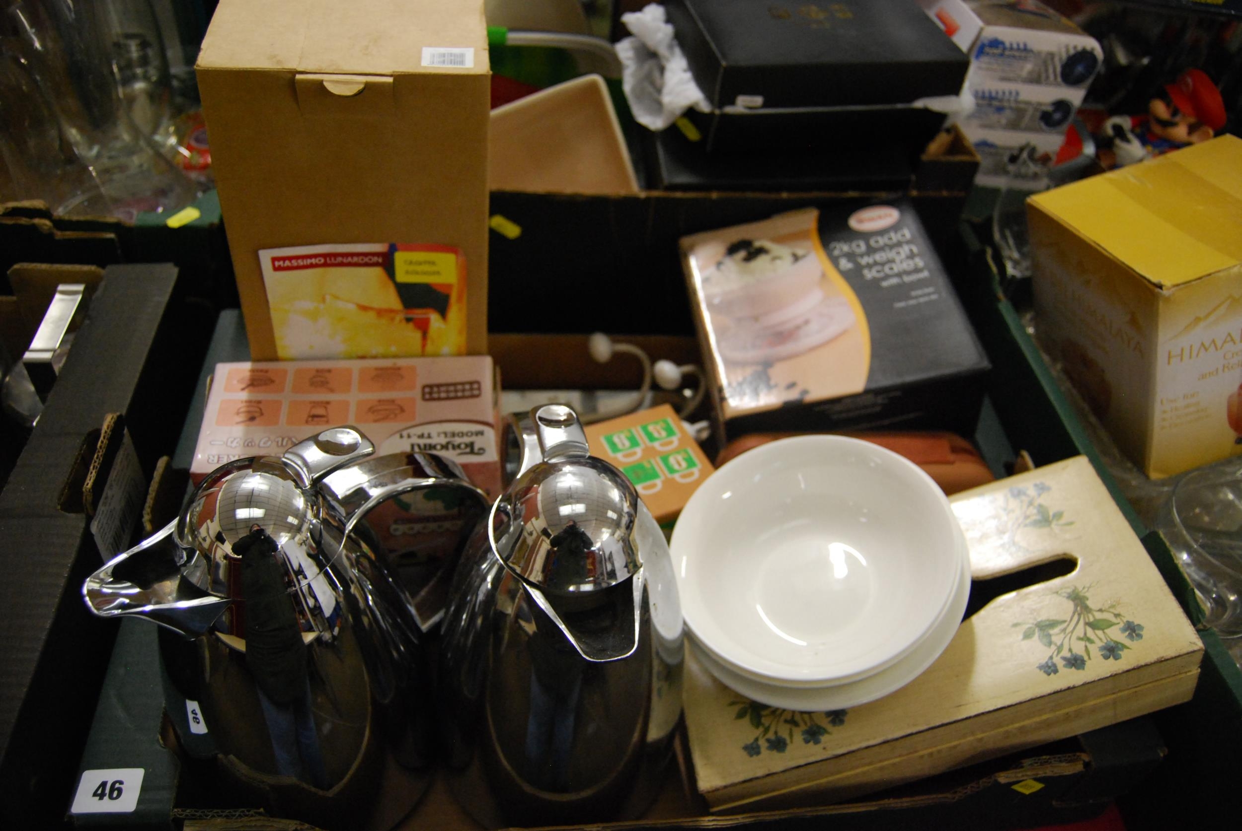 2 THERMOS FLASKS, 2 KG ADD & WEIGH SCALES, MASSIMO LUNARDON CARAFE, TOYOMI TRAVEL COOKER, ETC