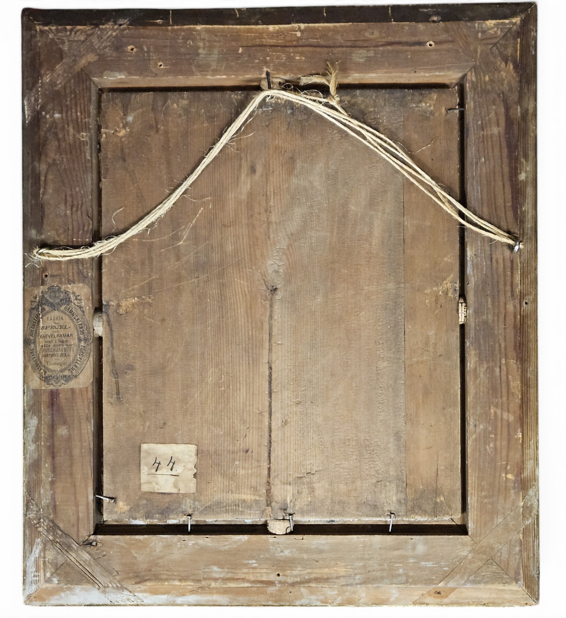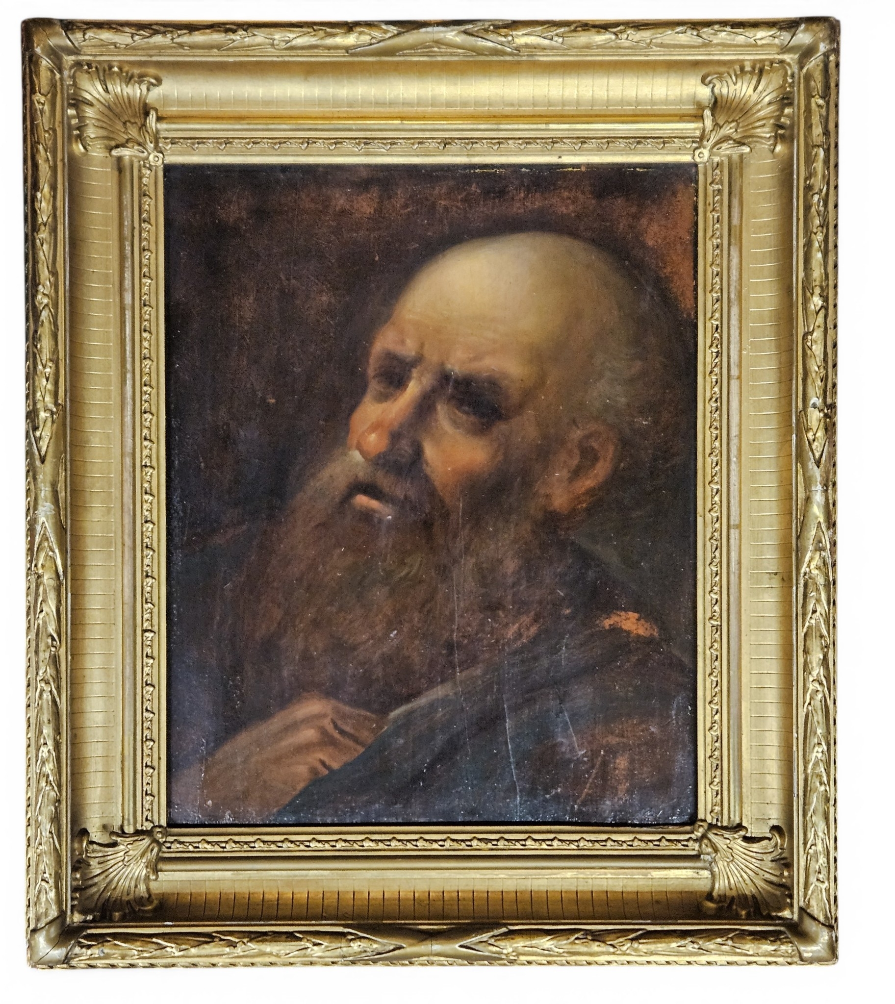 A superb late 18th Century - early 19th Century Oil on panel of a Scribe or Scholar with framers and gilders label verso for Joh Gustafsson, Stockholm in a good gilt frame. 36 x 28 cm approx.