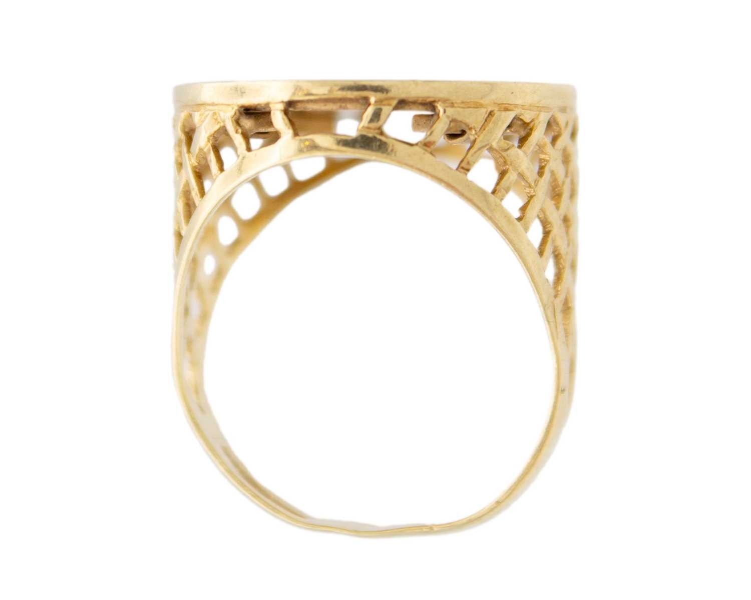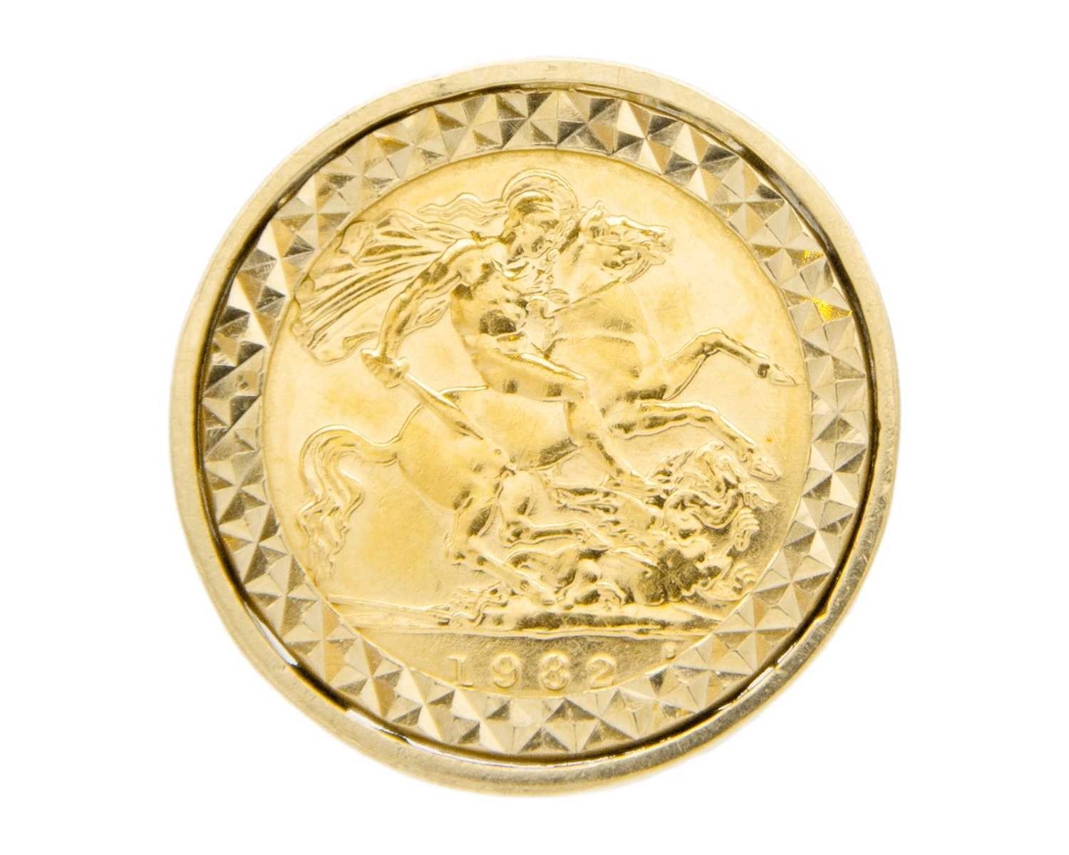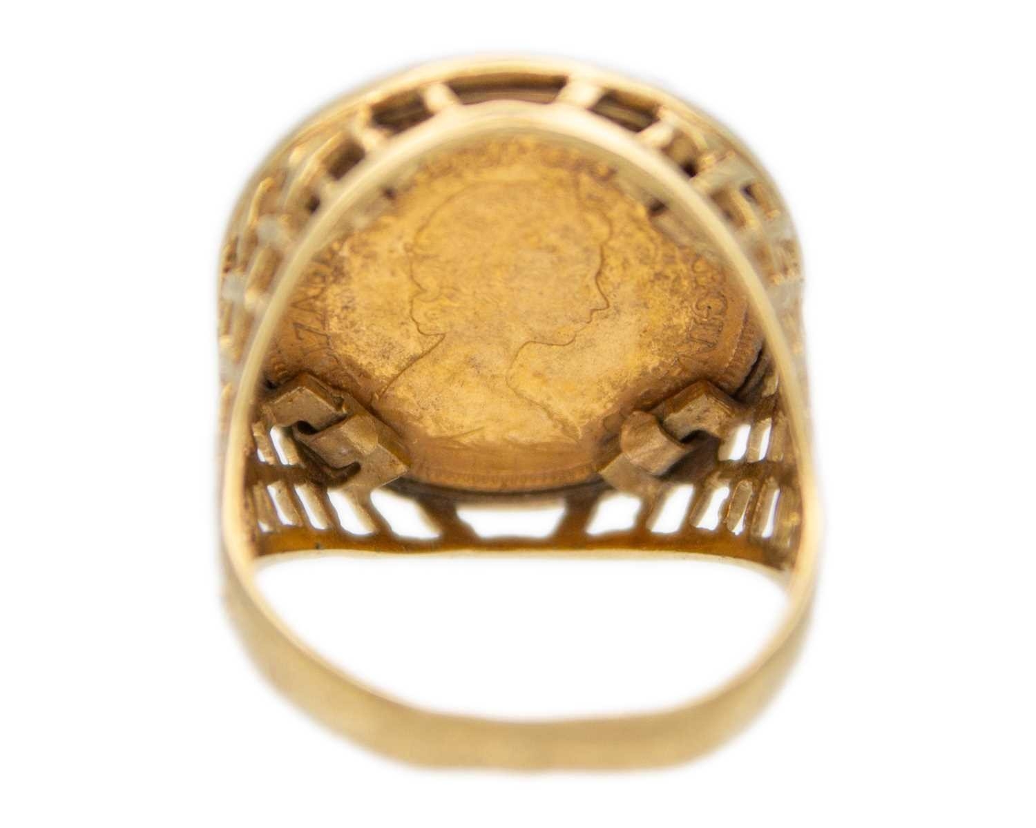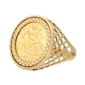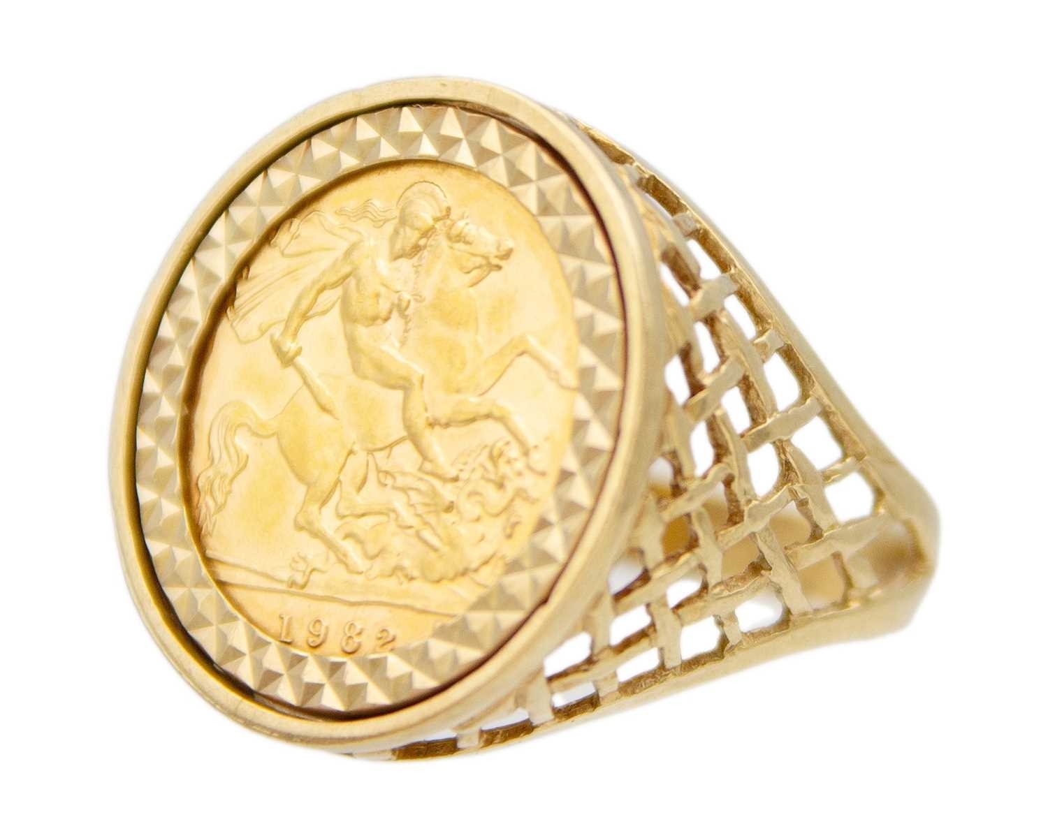 A half sovereign set in a 9k gold ring. The ring is London hallmarked 1990, by LG&S, size U, total weight 8.45g.