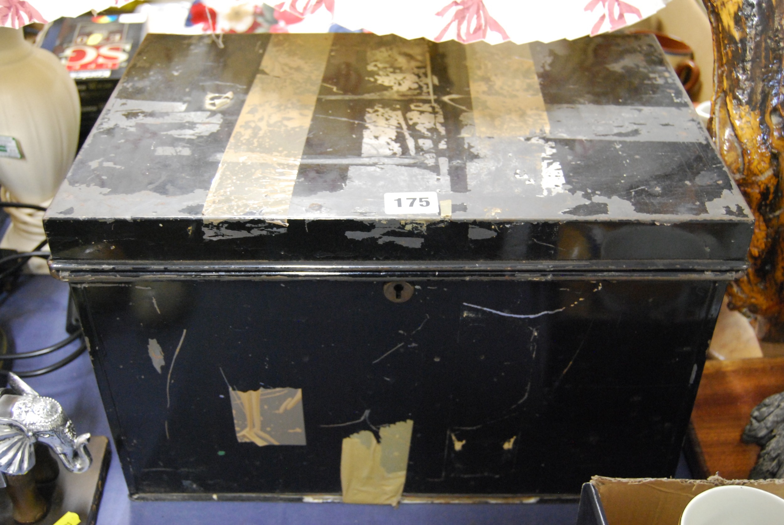 VINTAGE BLACK PAINTED METAL BOX
