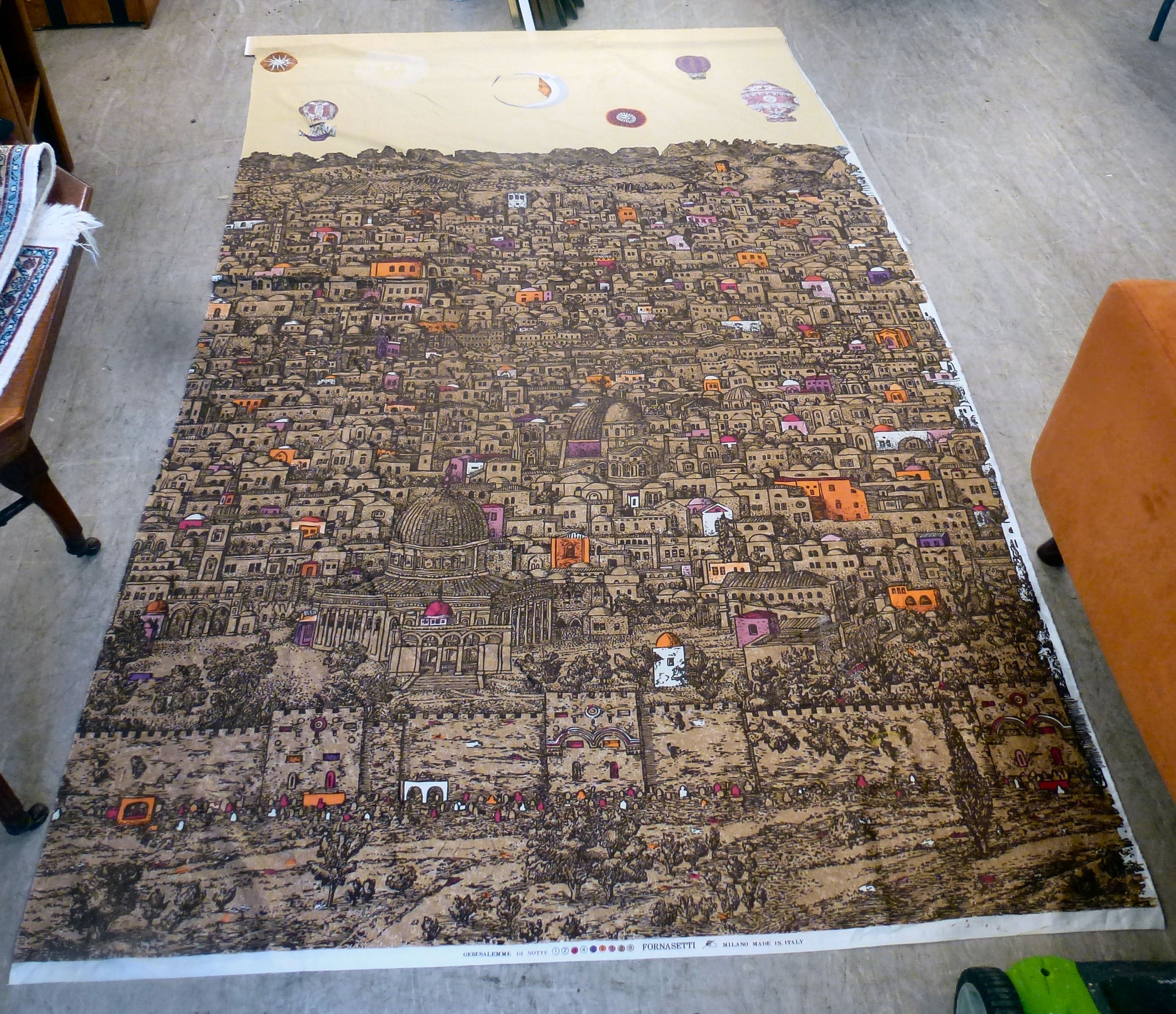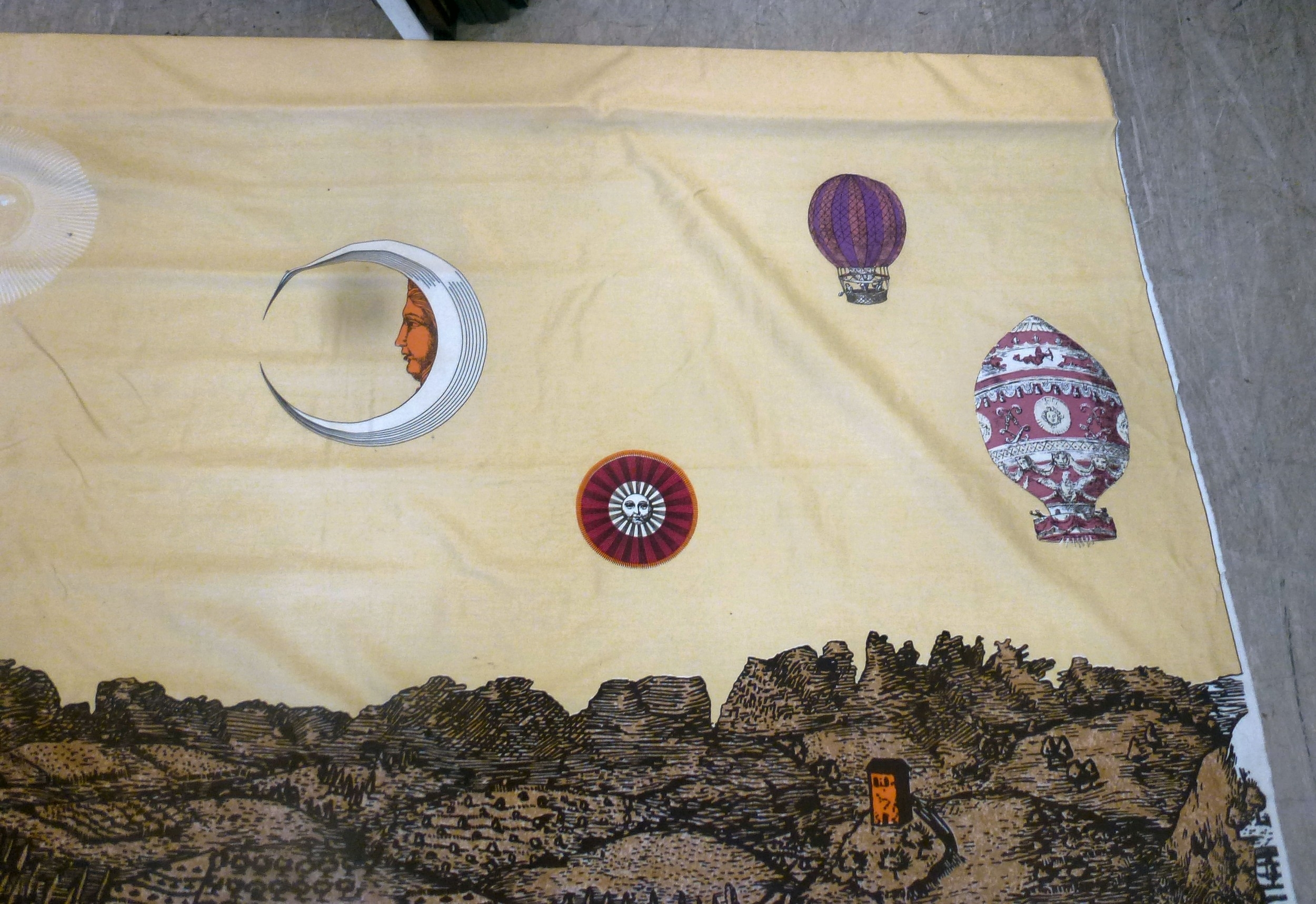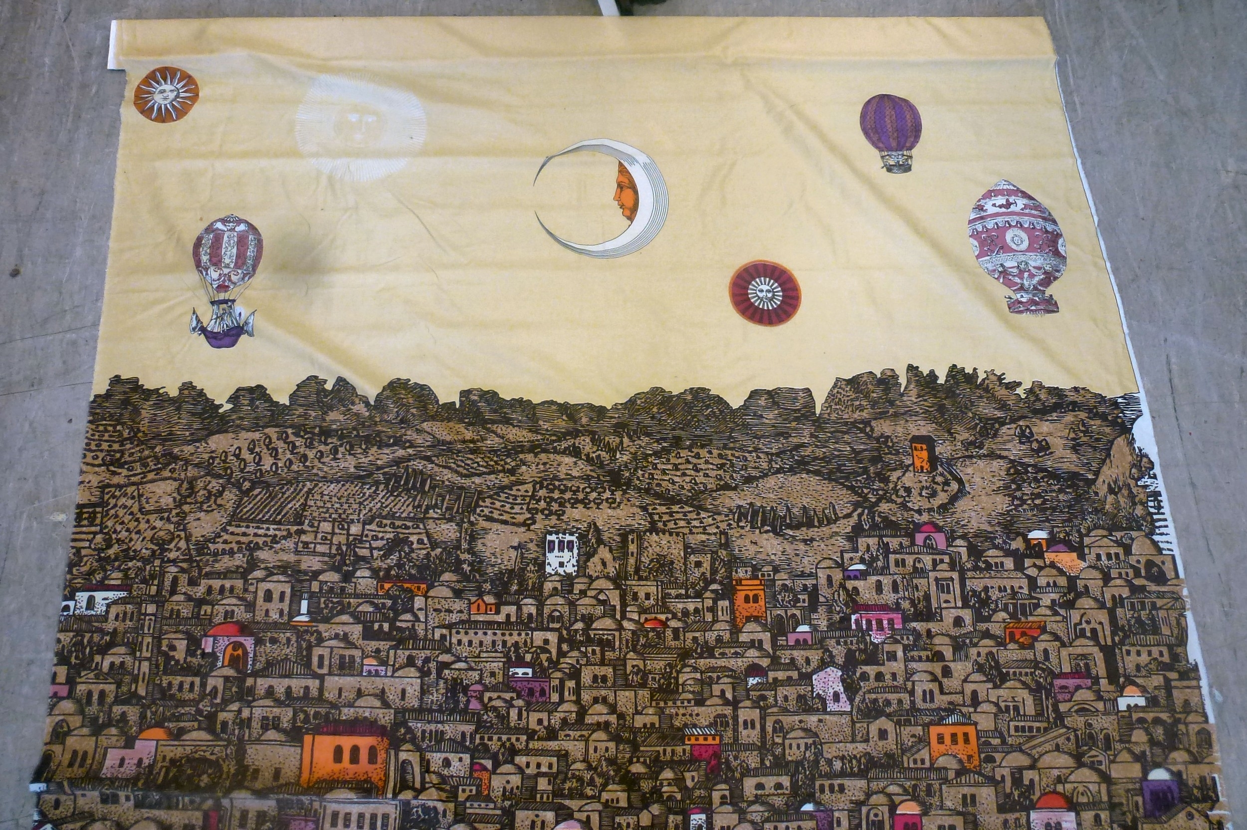 A Fornasetti Gerusalemme pattern fabric panel 57" x 105"