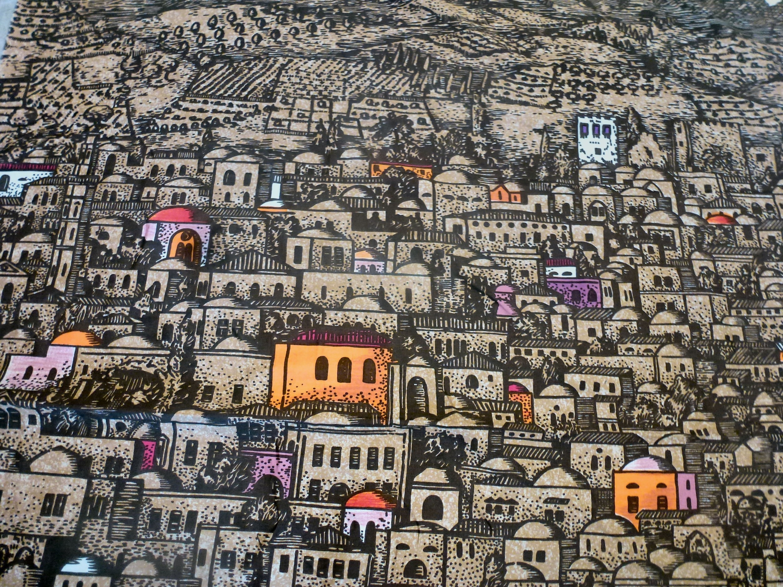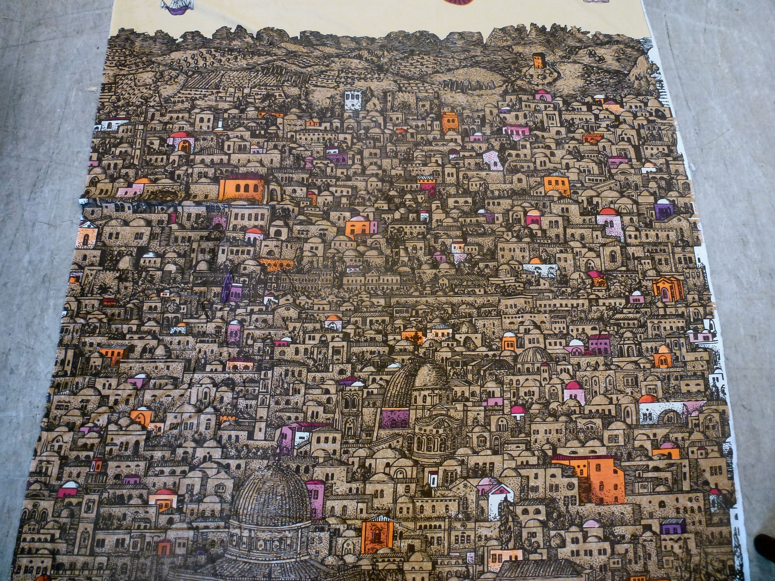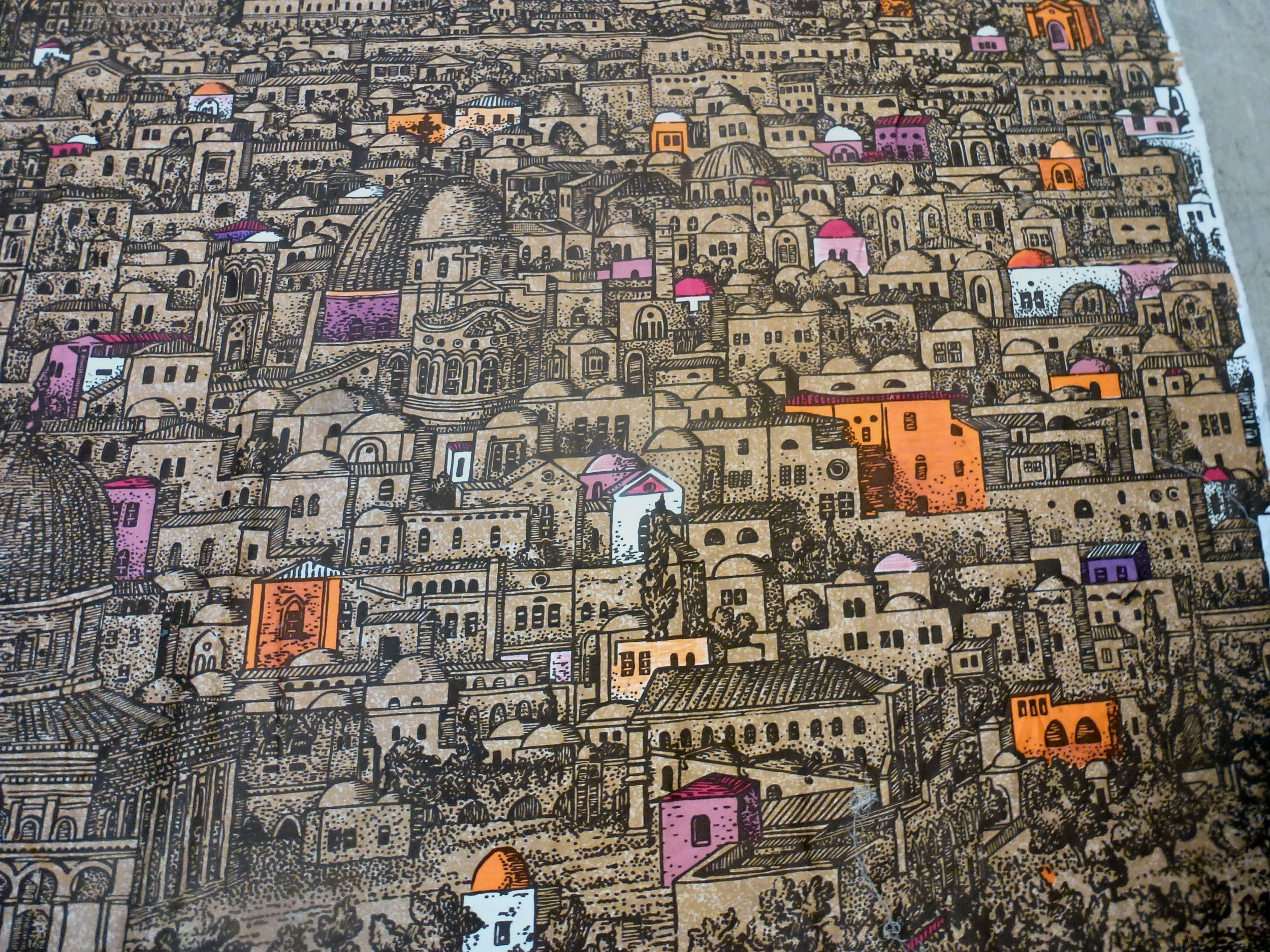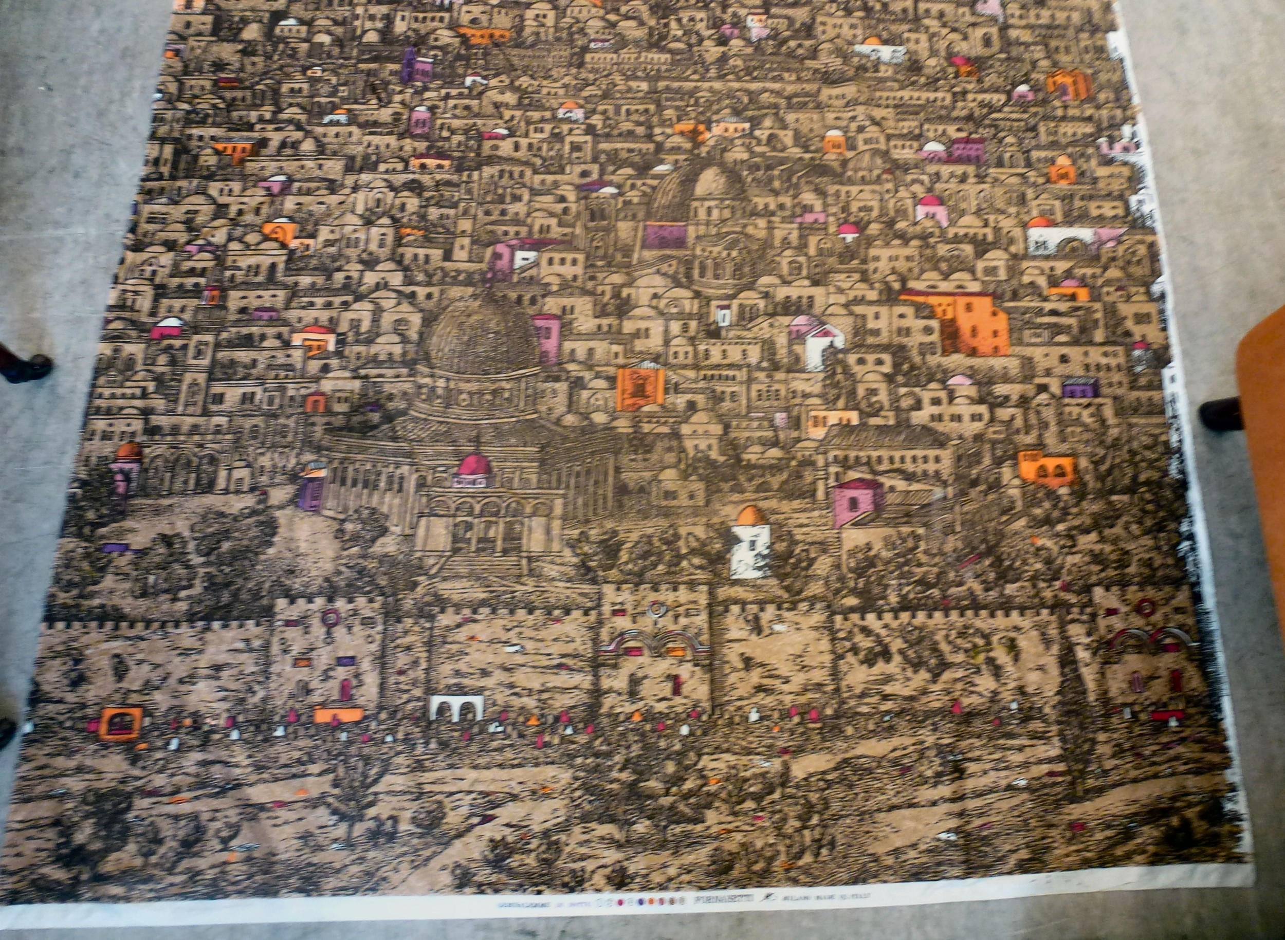 A Fornasetti Gerusalemme pattern fabric panel 57" x 105"
