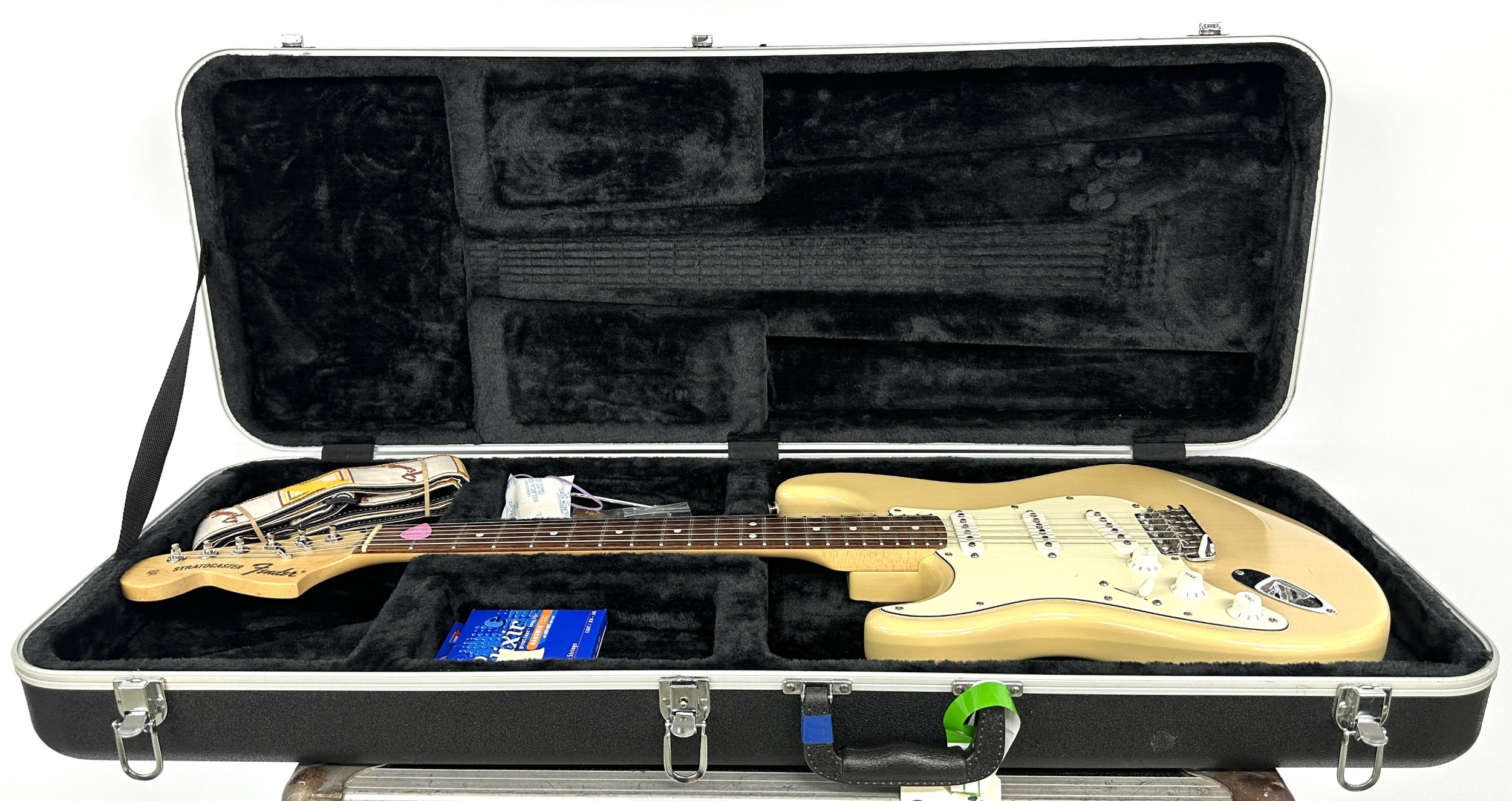2007 Fender Highway One Stratocaster left-handed electric guitar, made in USA; Body: honey blonde satin nitrocellulose finished alder; Neck: maple; Fretboard: rosewood; Frets: good; Electrics: working; Hardware: good; Case: hard case; Weight: 3.53kg; Overall condition: very good