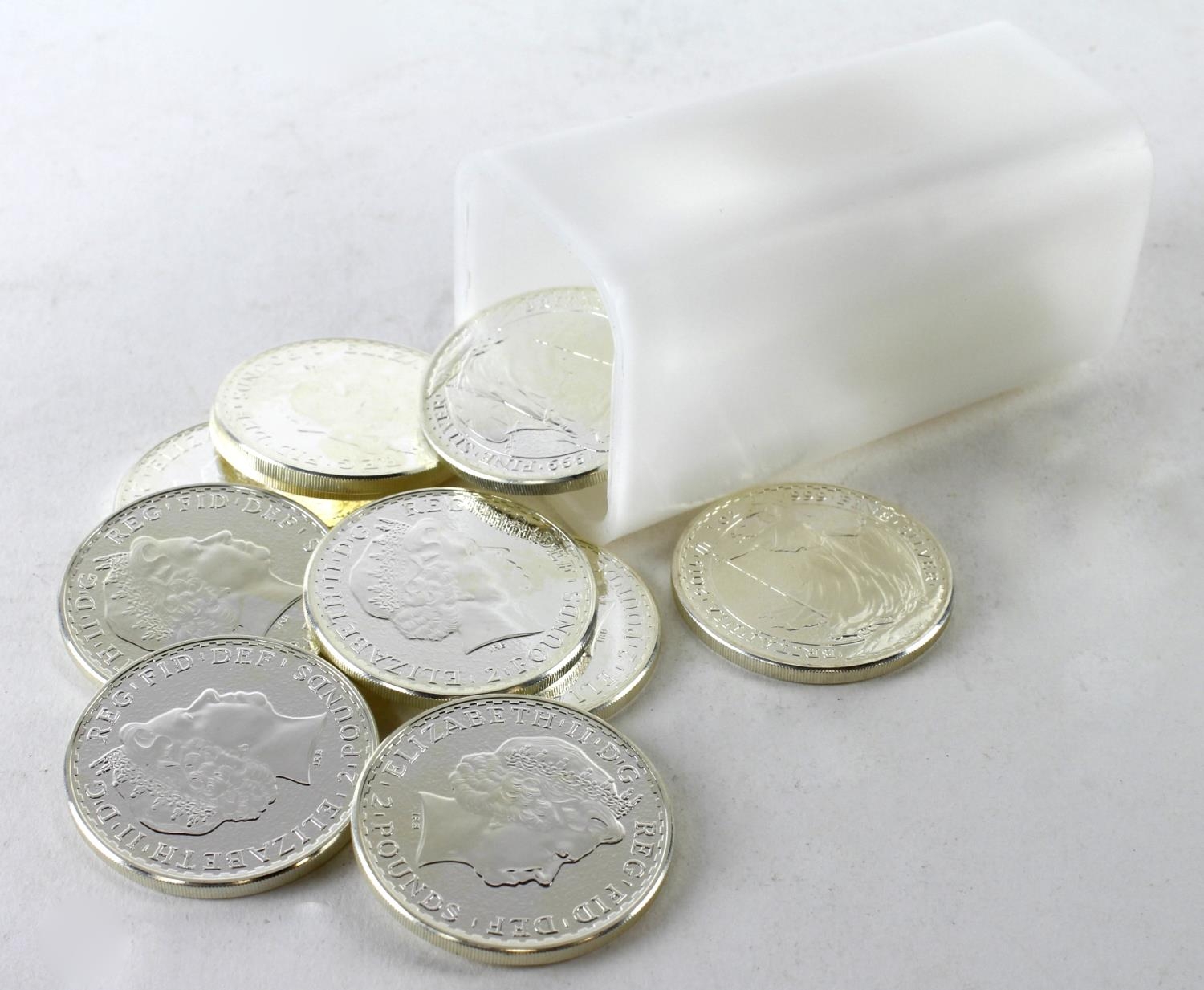 GB Silver one ounce Britannias (20) in a tube all dated 2015. Unc - BU