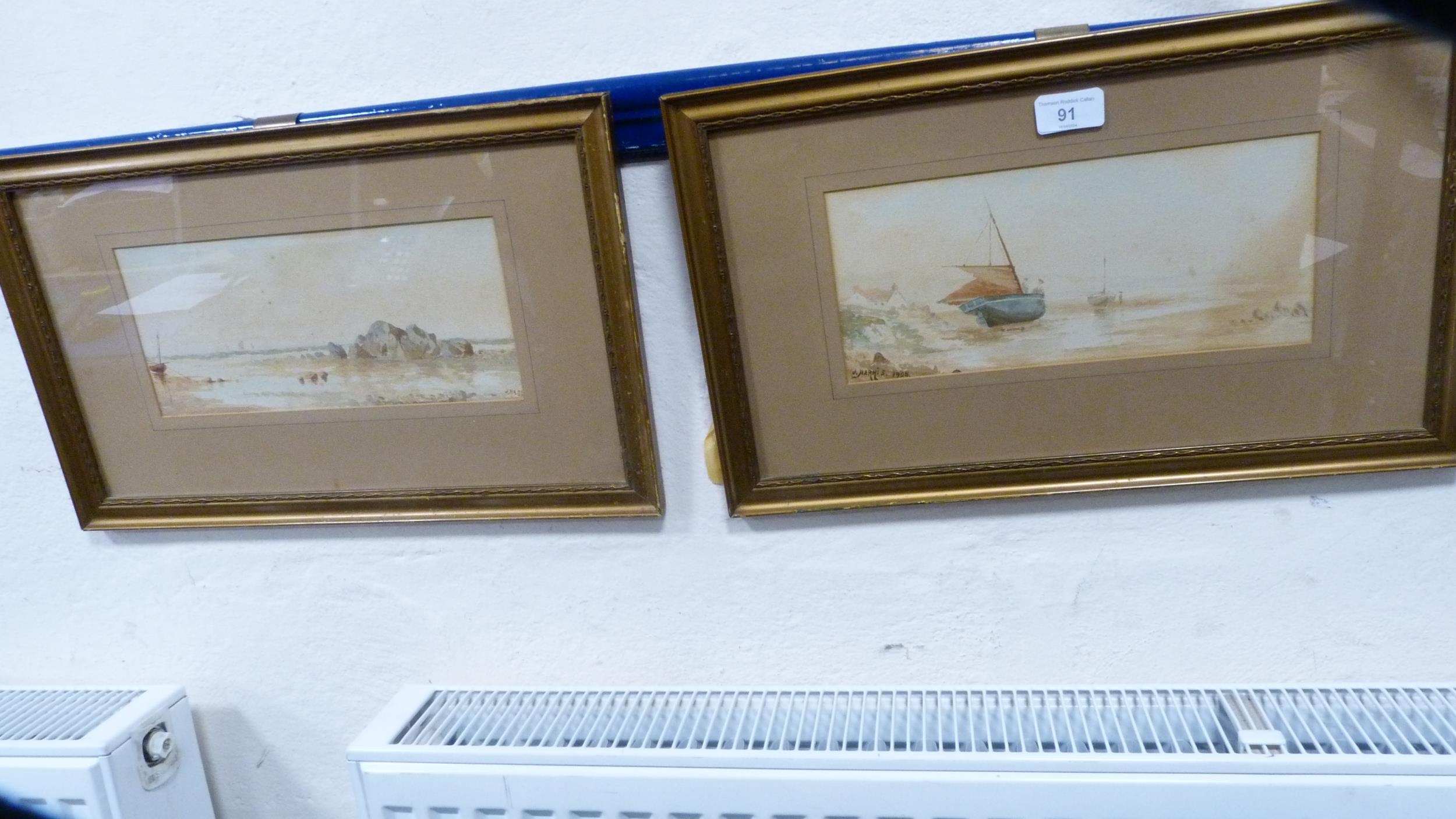 Signed and dated 1908, watercolour, 12.5cm x 28.5cm. (2)