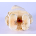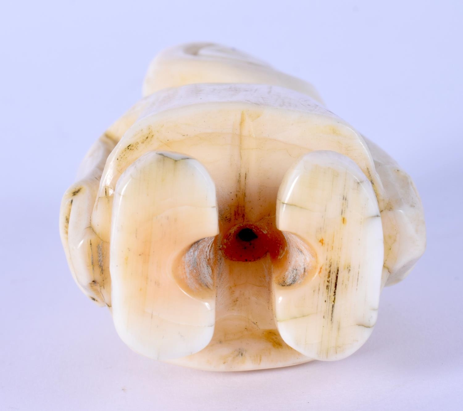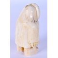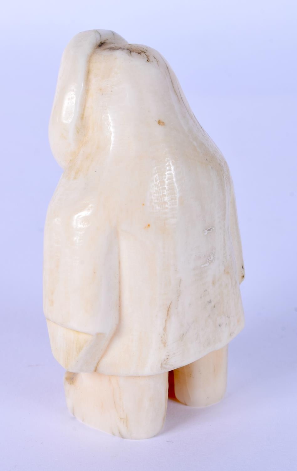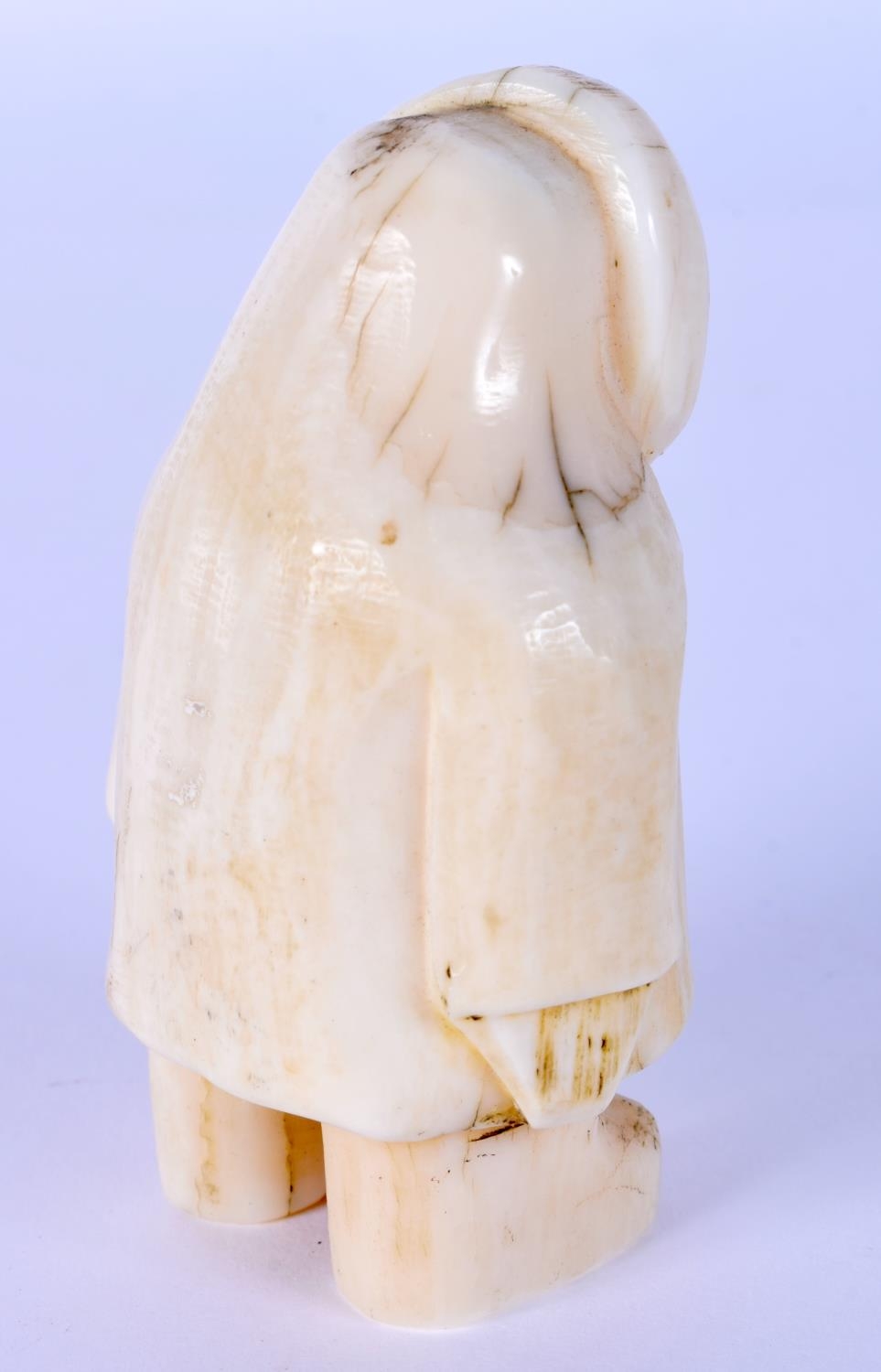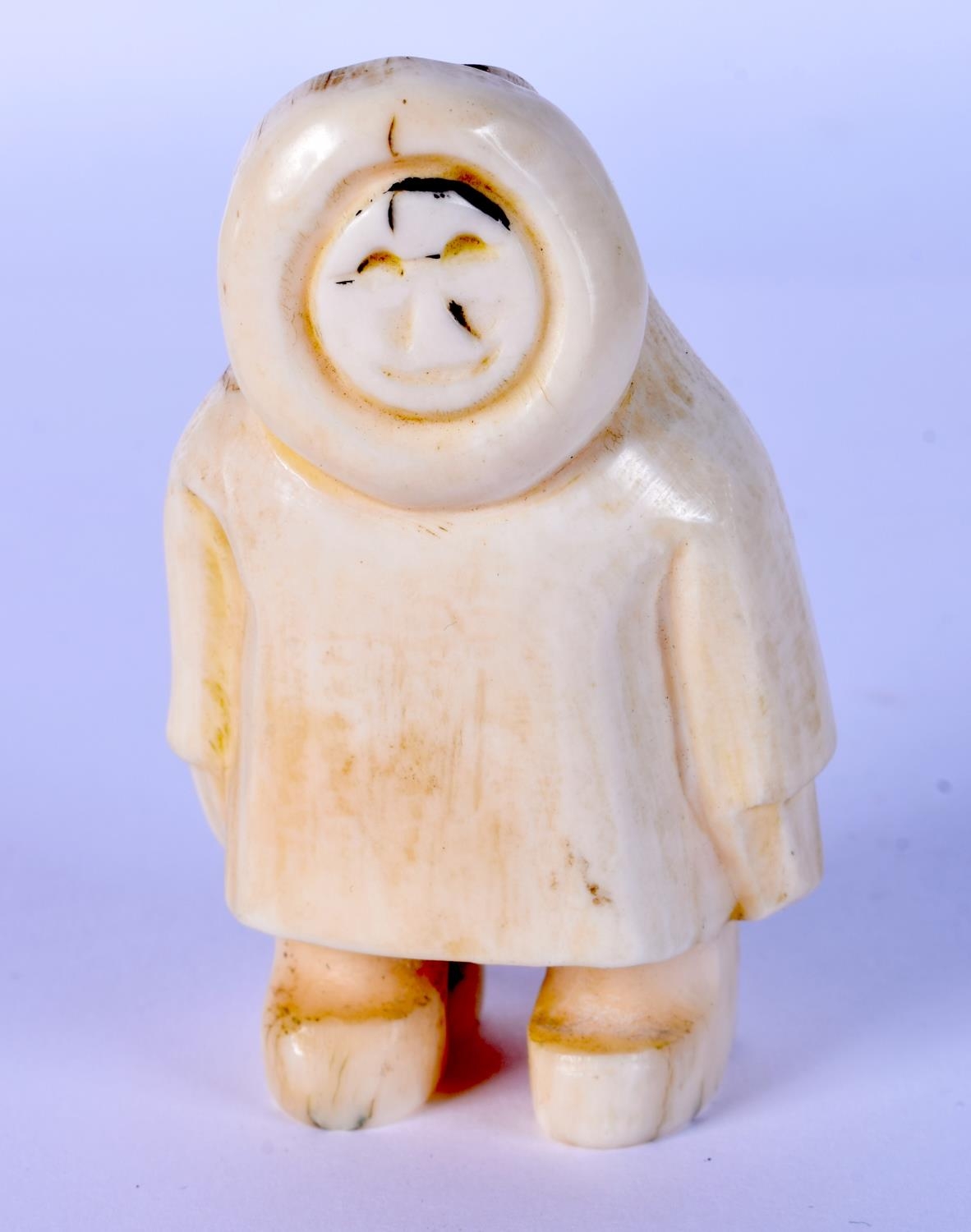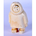 A RARE EARLY 20TH NORTH AMERICAN CARVED IVORY FIGURE OF AN ESKIMO possibly tribal. 7 cm x 4 cm.