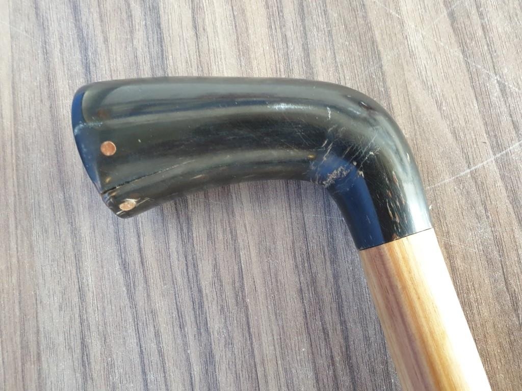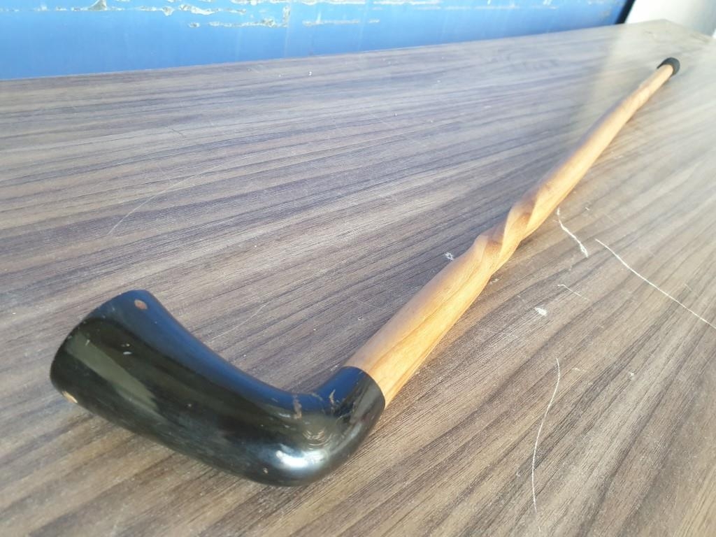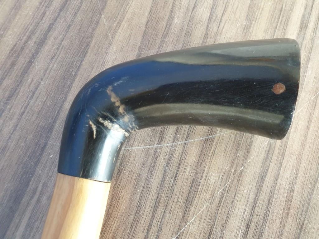 Solid Wood Walking Stick with Twist Near Top and Horn(?) Handle