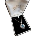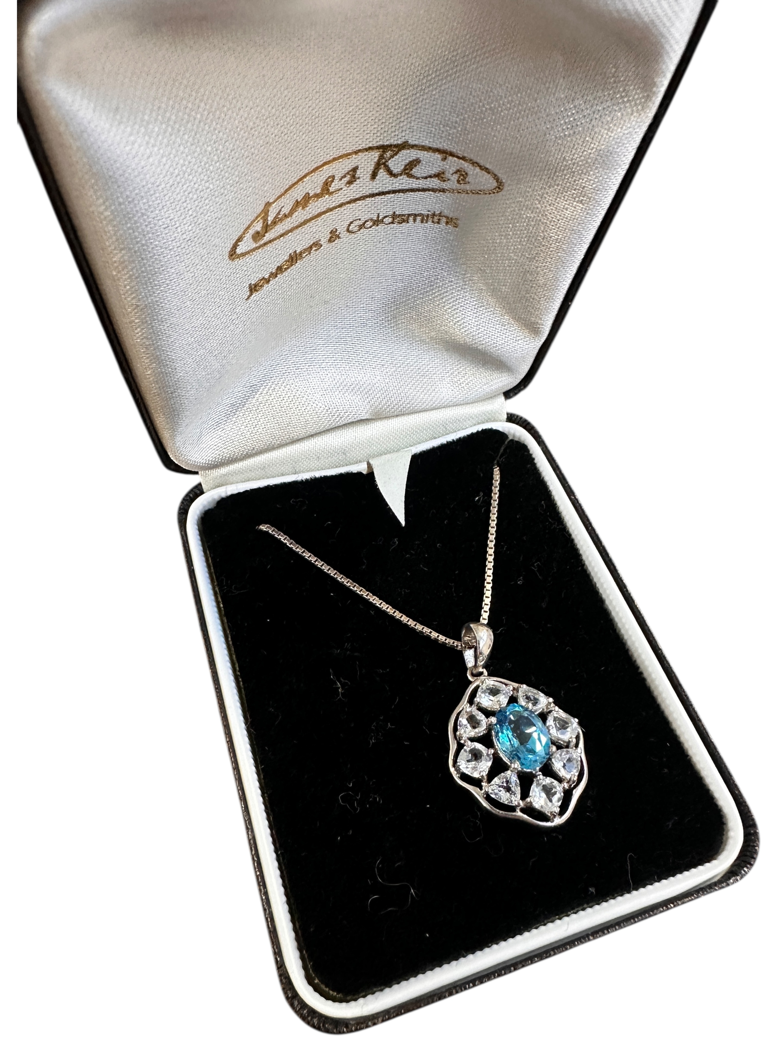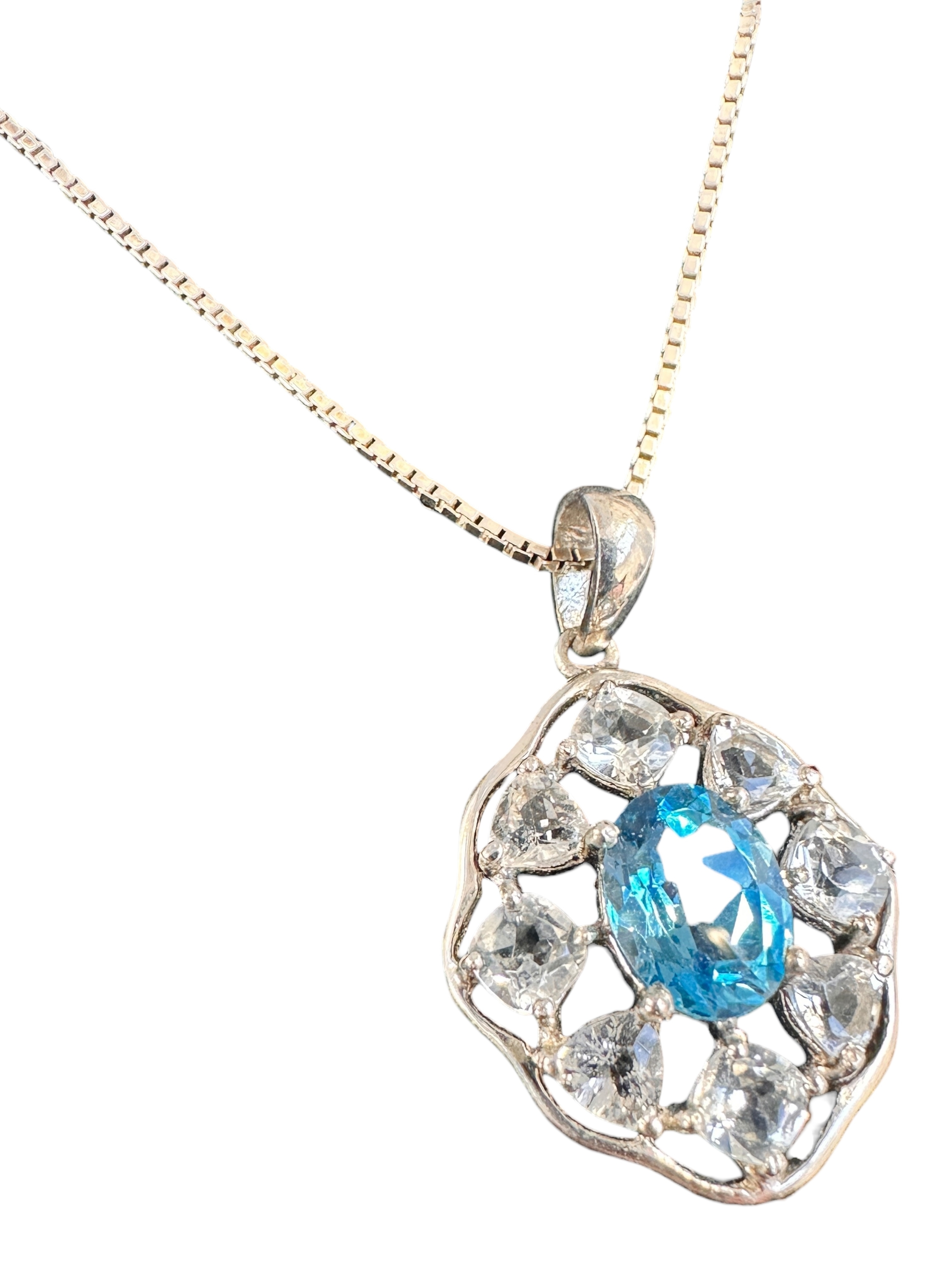 Silver Pendant Necklace with Central Blue Stone on 18" Chain with Stamped Marks. 7g gross