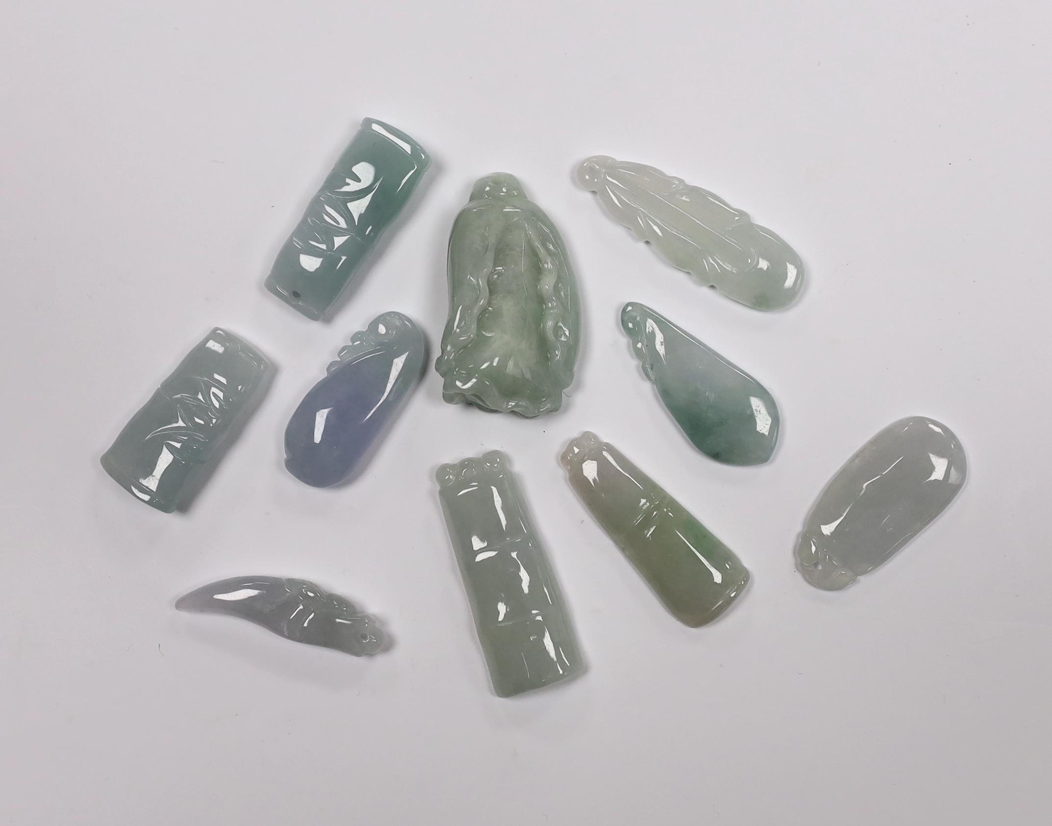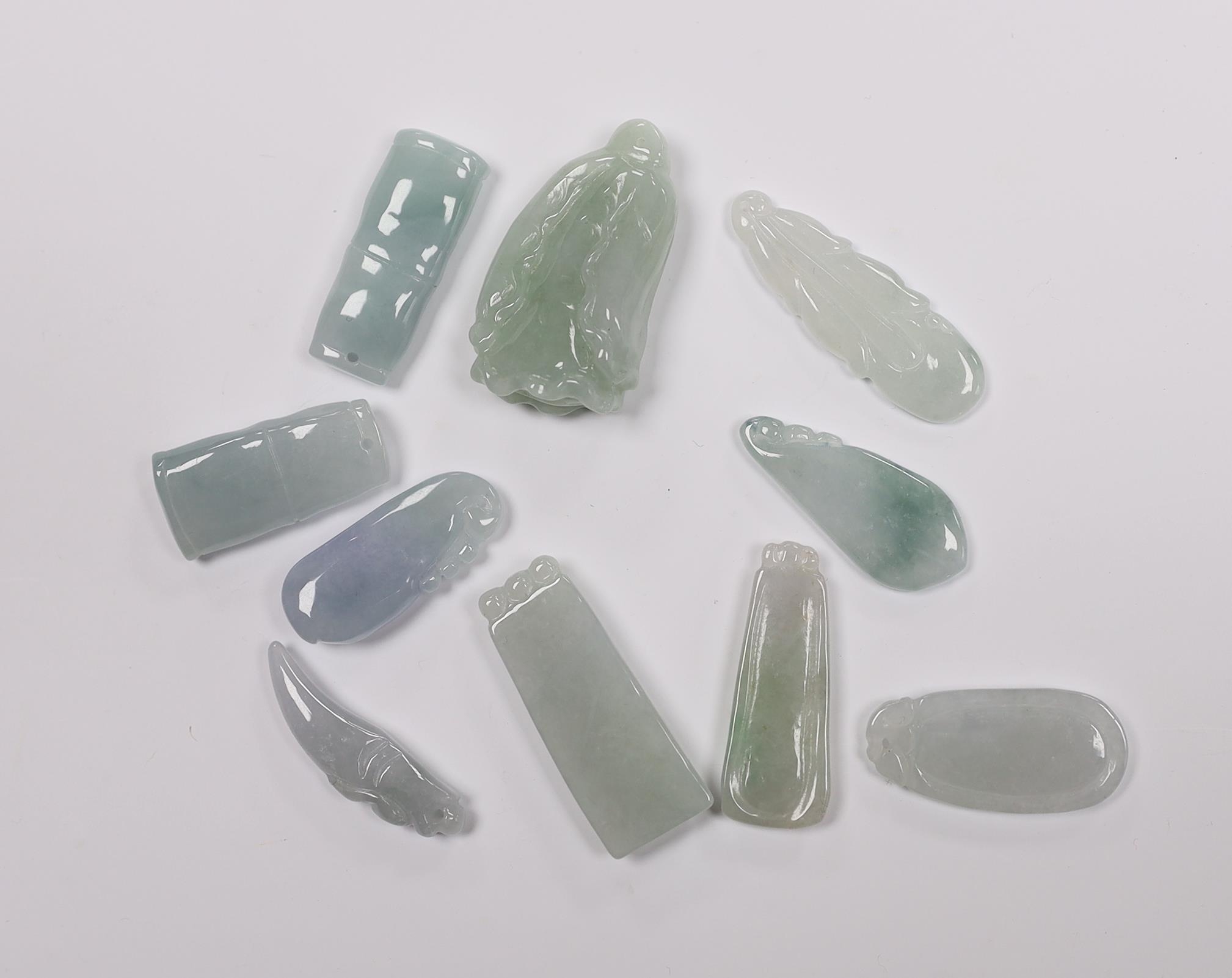 Ten various Chinese jadeite carved pendants