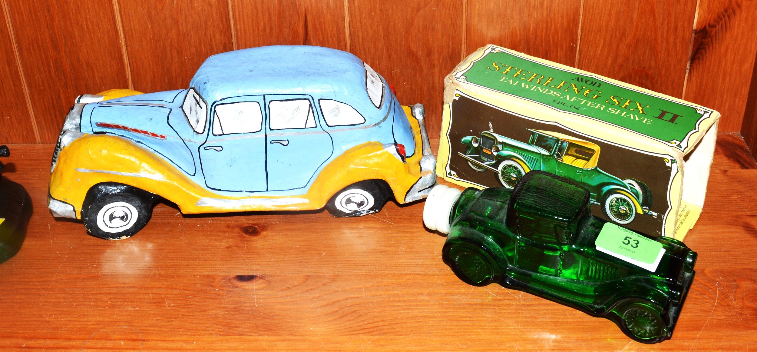 JOINED LOT to LOT 145 - Boxed Avon Aftershave in Car-Form Glass Bottle, Plus a Papier Mache Car