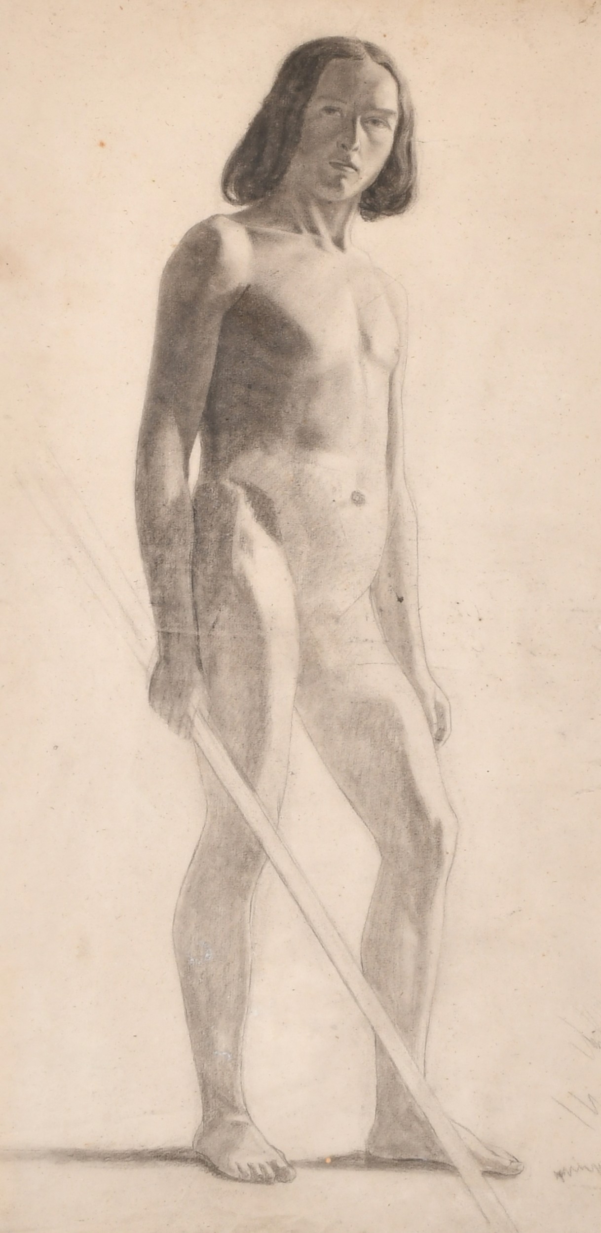 Phillipe Felix Dupuis (1824-1888) French. Standing Nude, Pencil, Inscribed on a label verso, 22.75" x 11.5" (57.8 x 29.2cm)