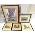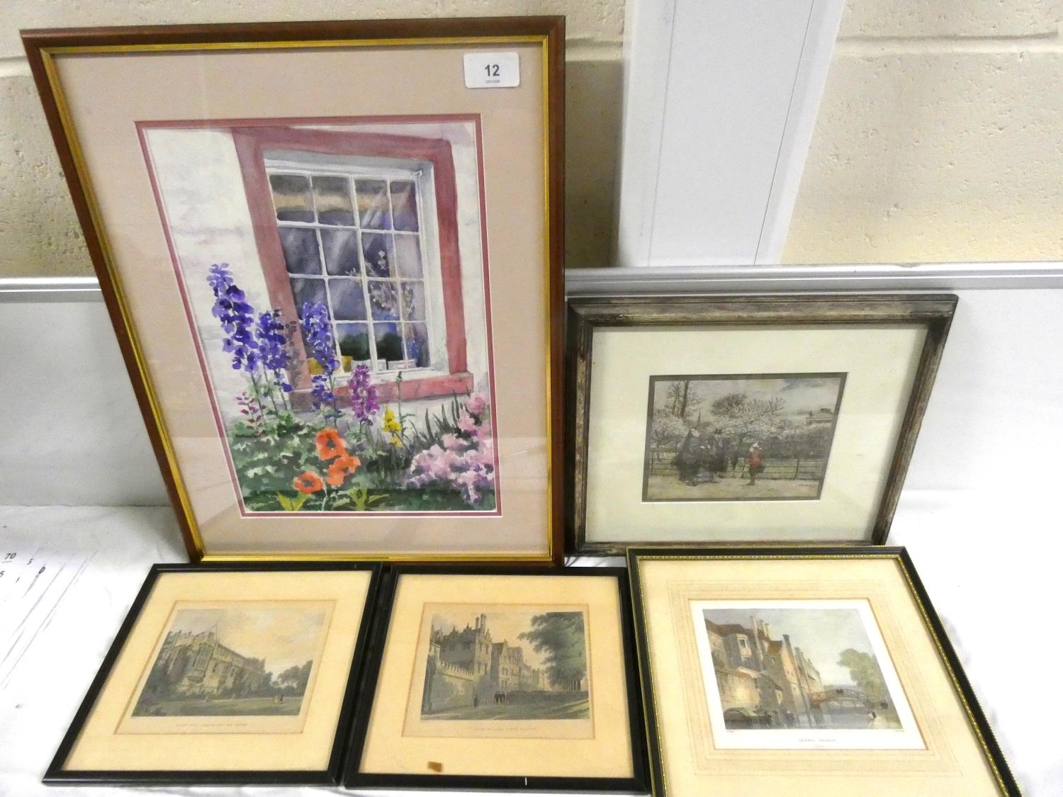 Various prints of Queen's College, some floral, unsigned watercolours.