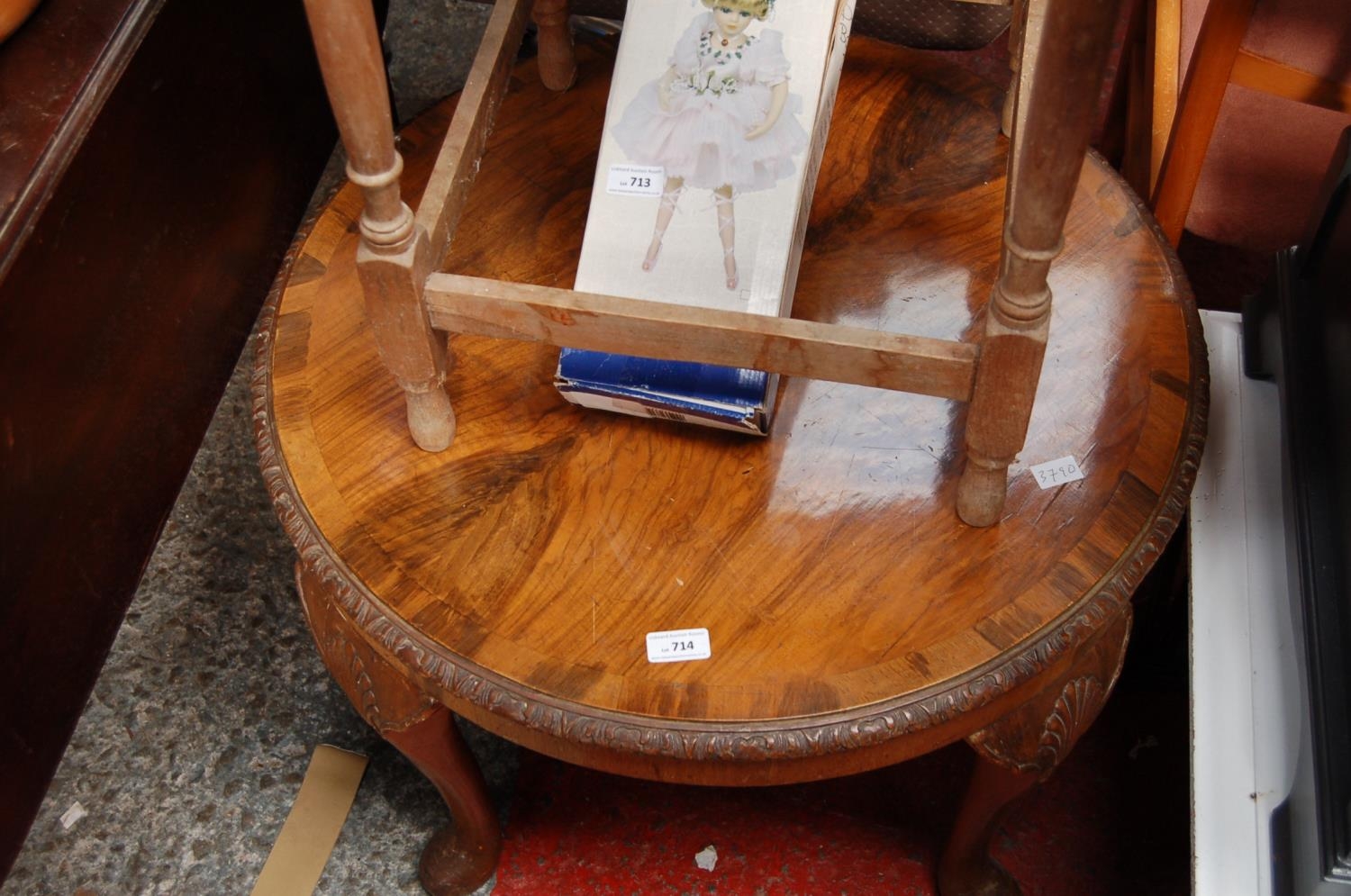 ROUND CARVED MAHOGANY TABLE ON PAD FEET