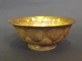 A gilt wash shaped metal bowl with incised decoration to sides and impressed flower decoration to centre, 5¼' diameter
