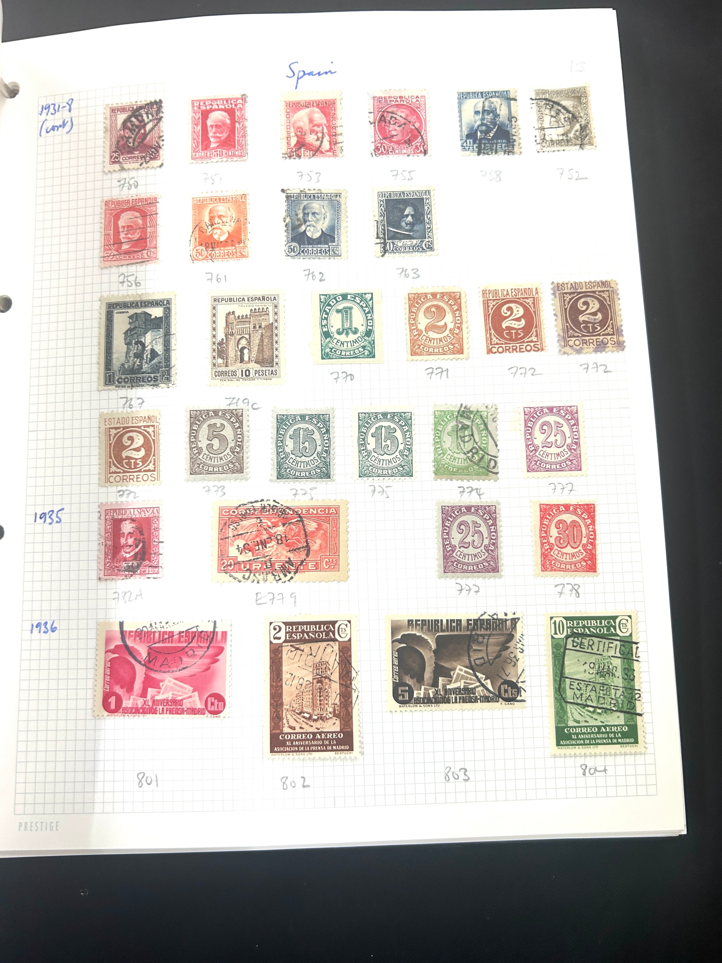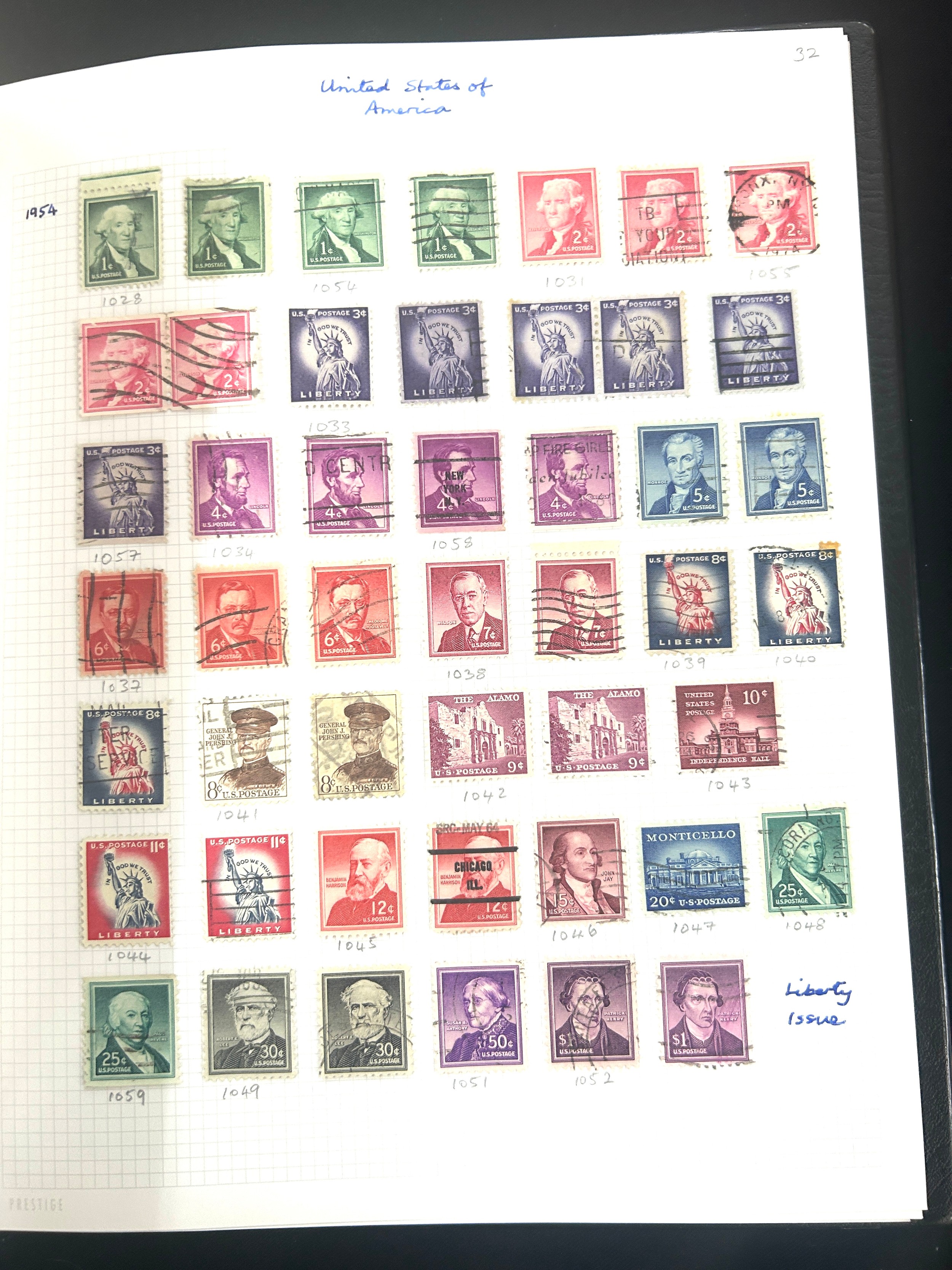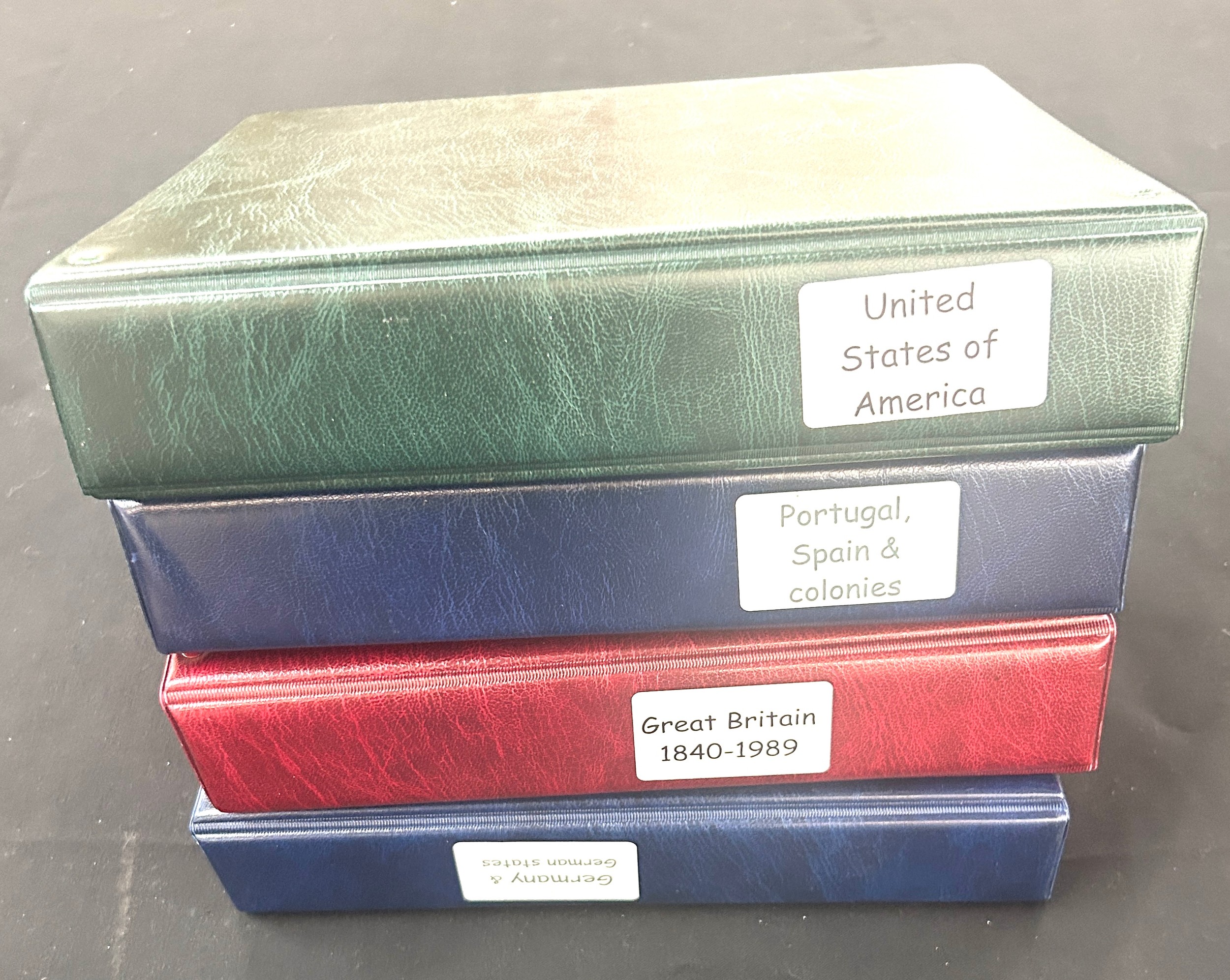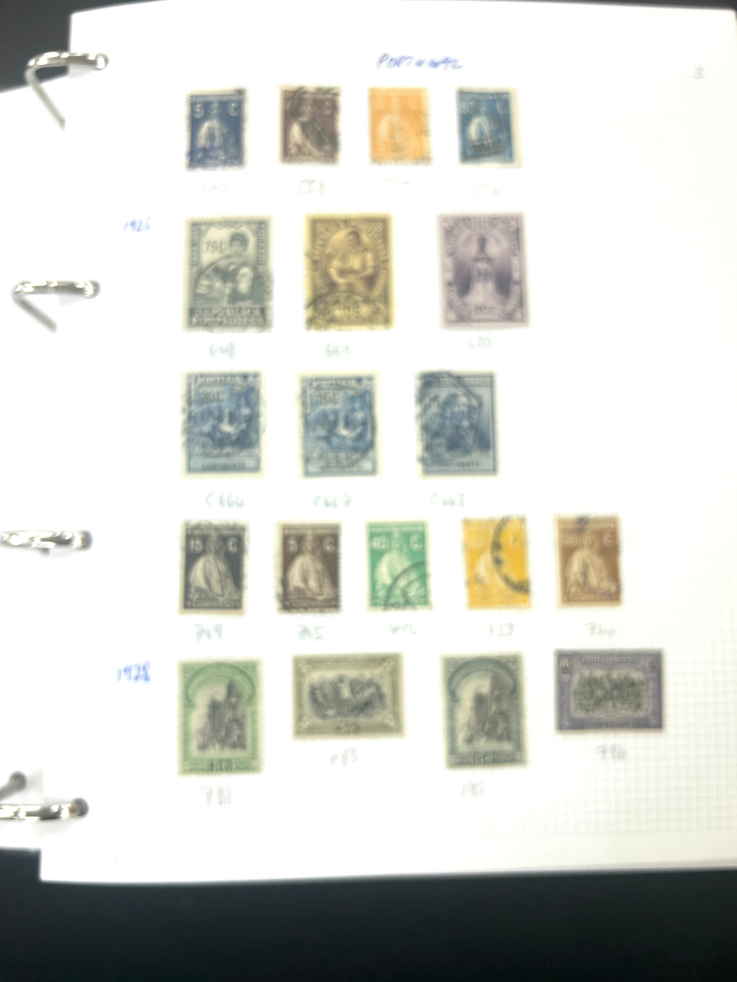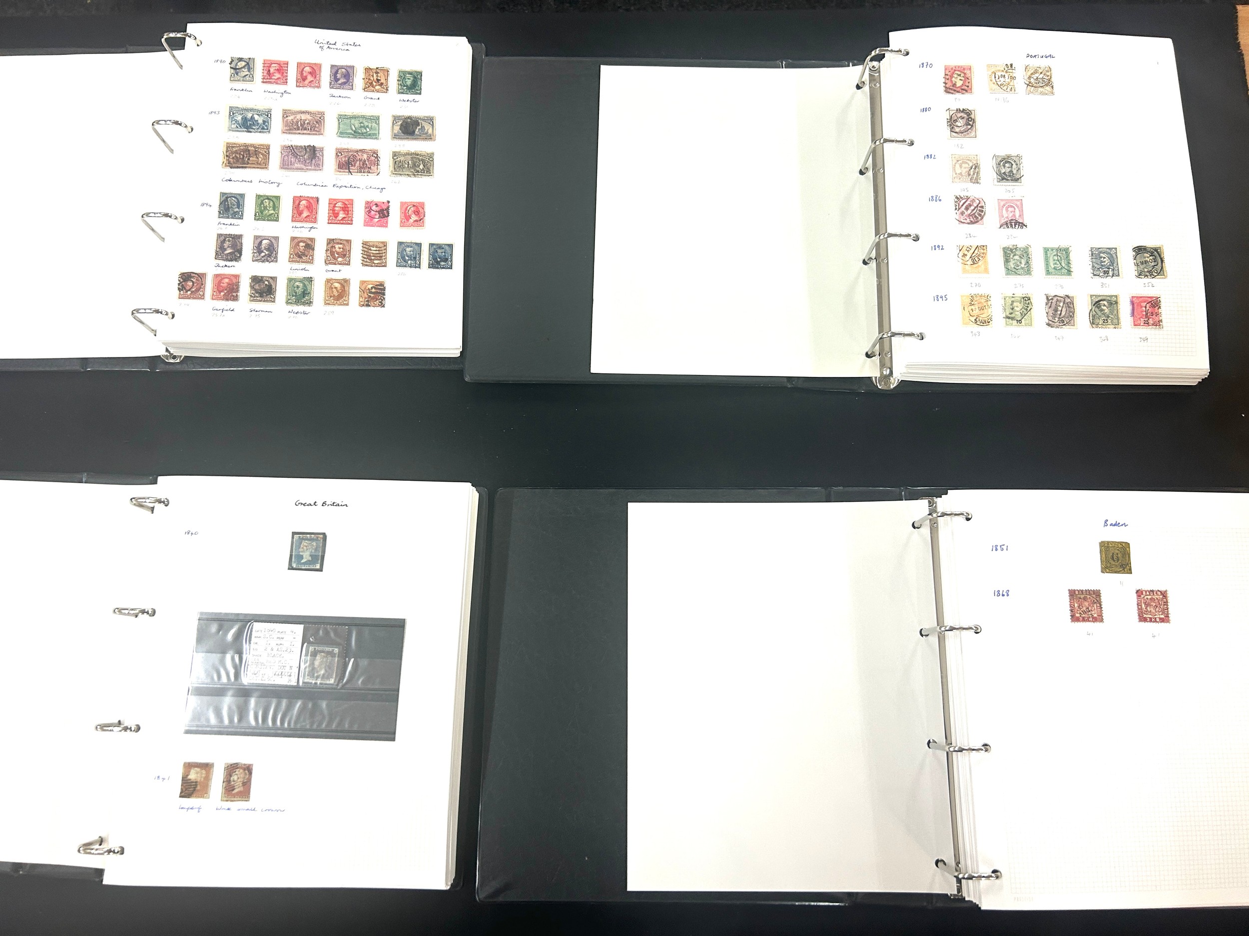 Four folders of Vintage and later stamps includes United states, Portugal and spain, Great Britain etc