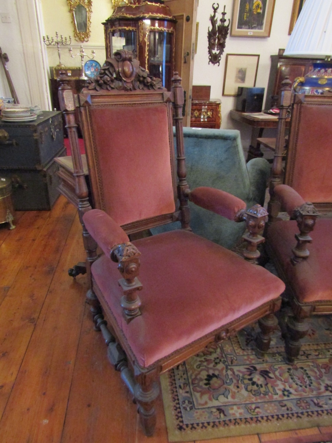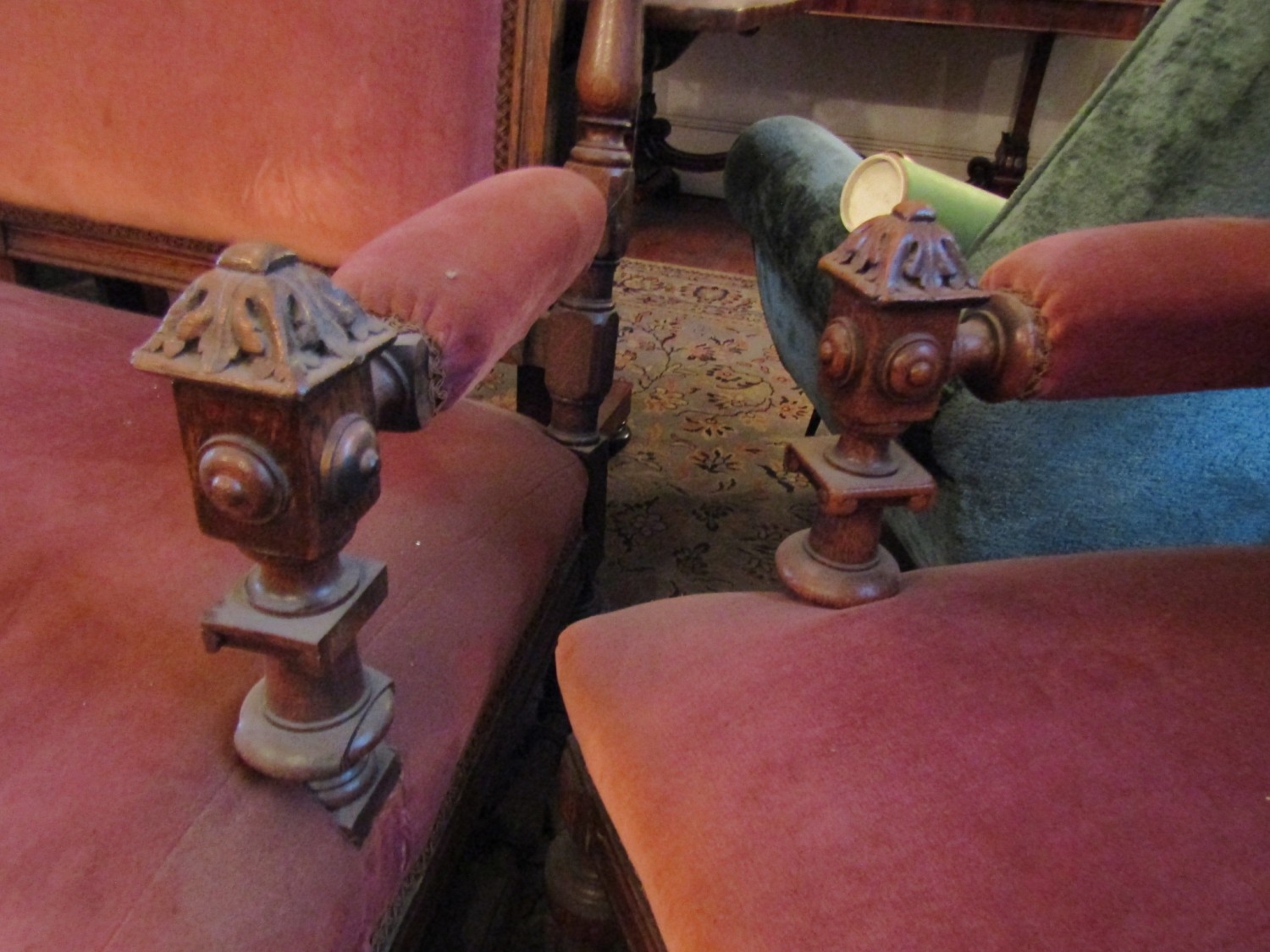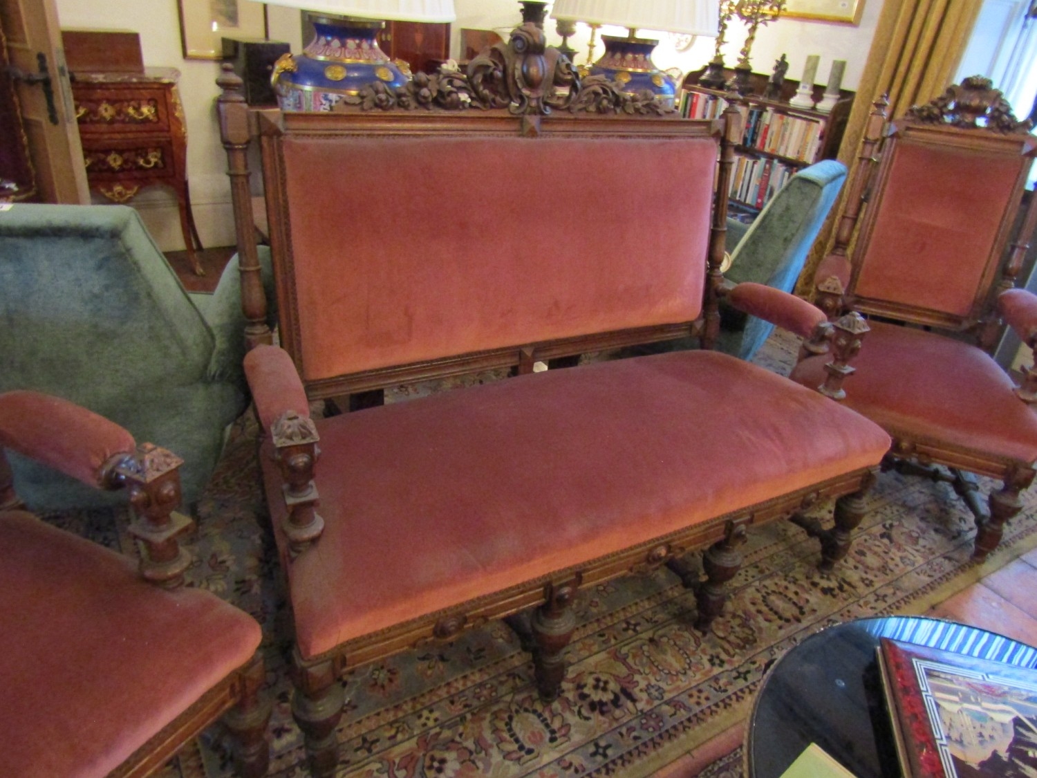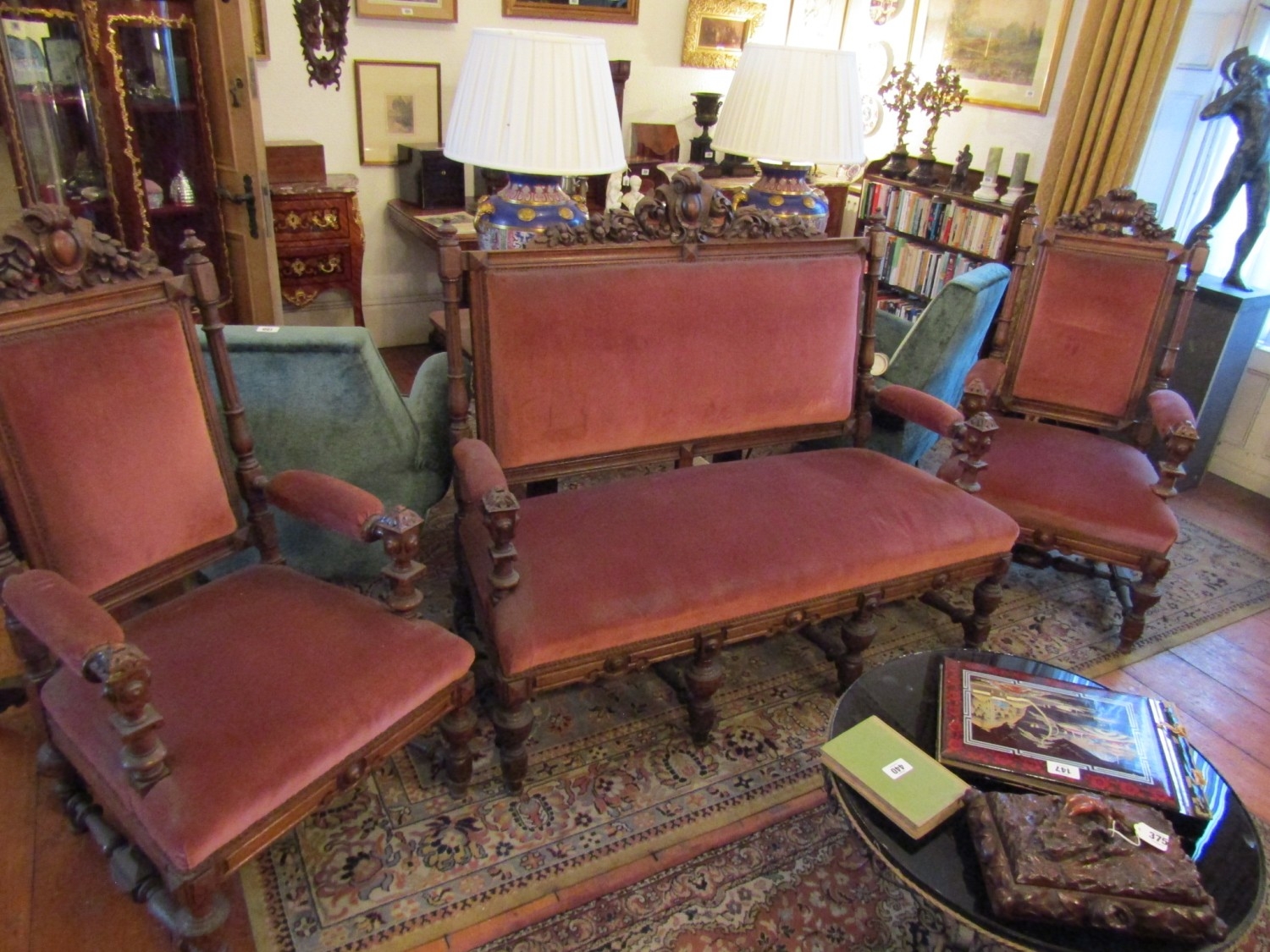 Antique Three Piece Drawing Room Suite Well Carved Settee Approximately 5ft 6 Inches Wide