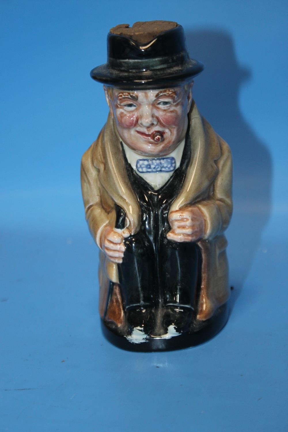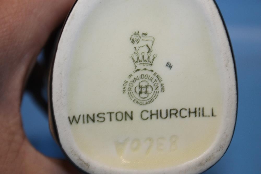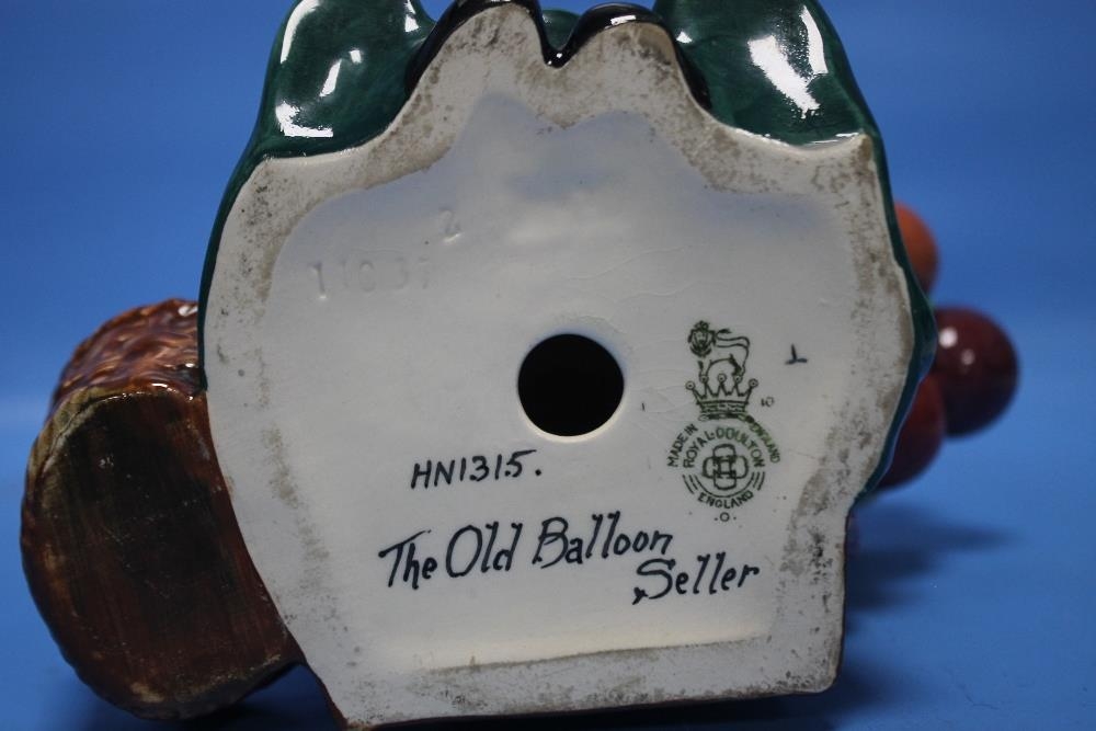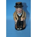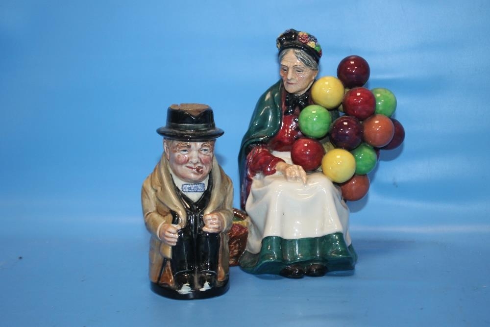 A ROYAL DOULTON FIGURINE 'THE OLD BALLOON SELLER' TOGETHER WITH A ROYAL DOULTON 'WINSTON CHURCHILL' CHARACTER JUG (2)