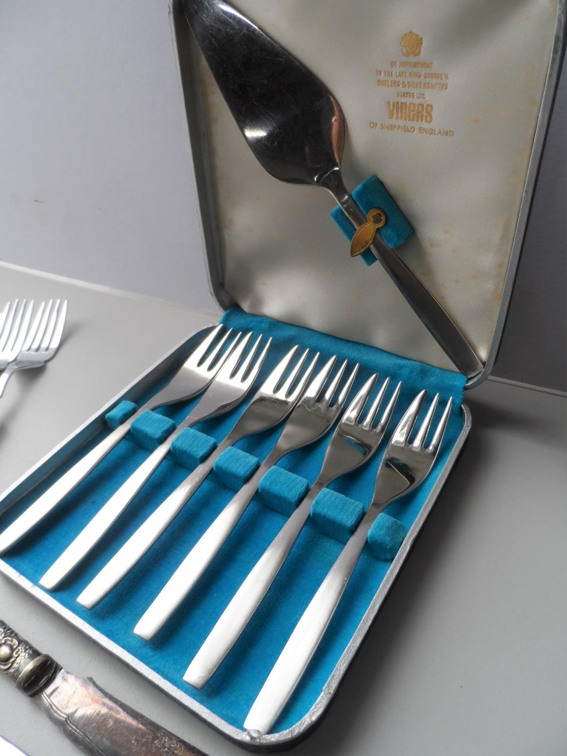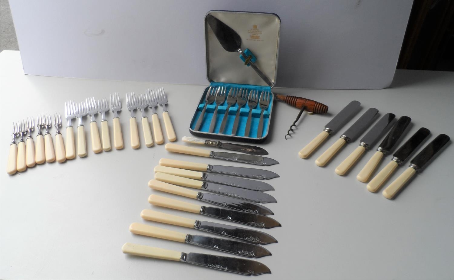 Collection of cased and uncased Edwardian flatware together with an antique corkscrew (Qty)