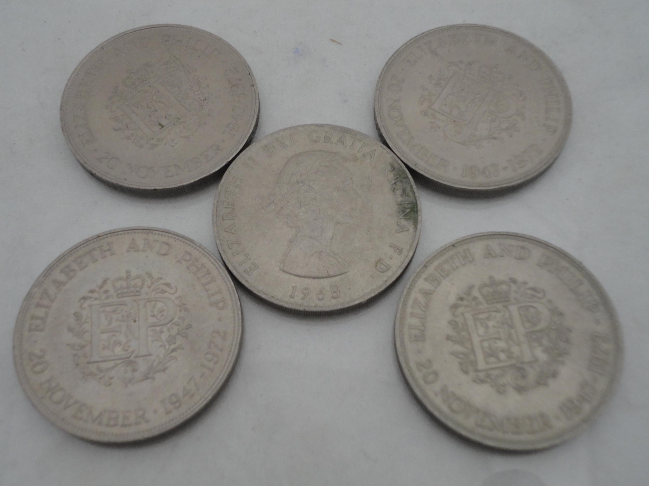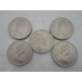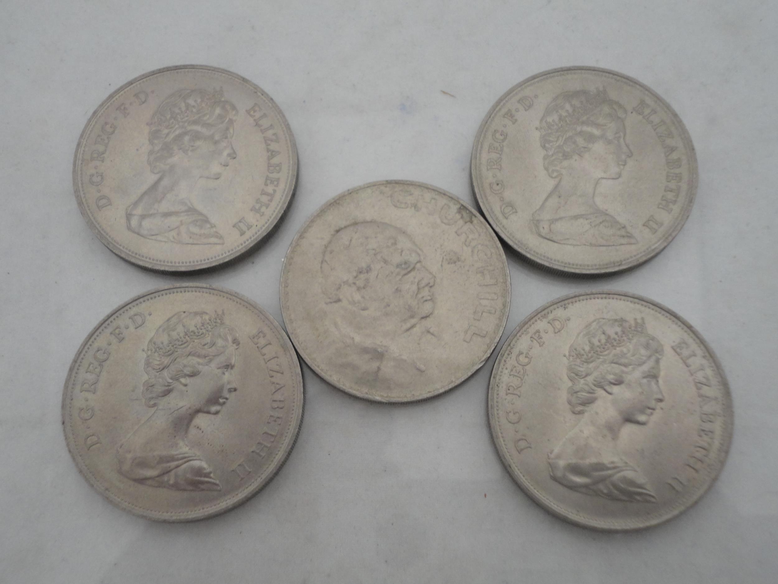 Five commemorative coins, to the obverse Winston Churchill and Queen Elizabeth II. (5)