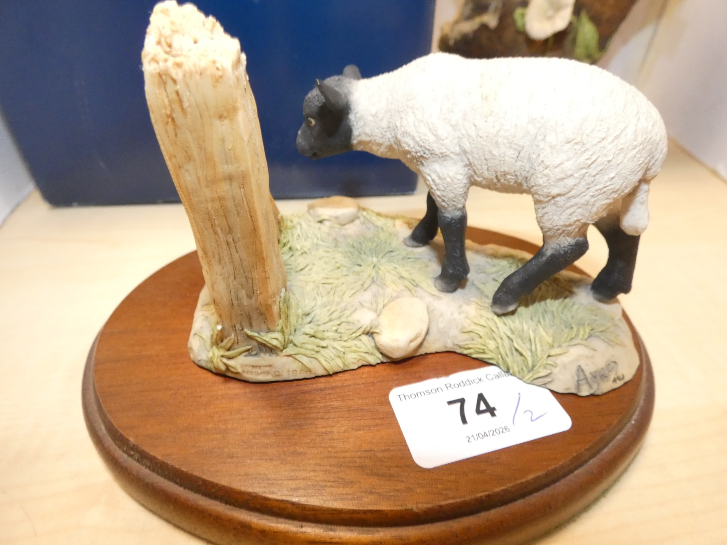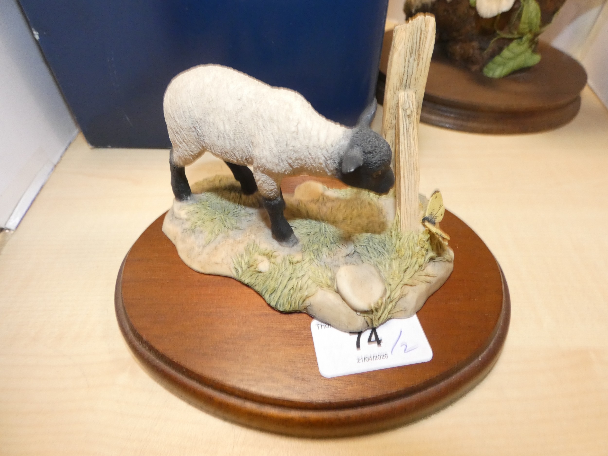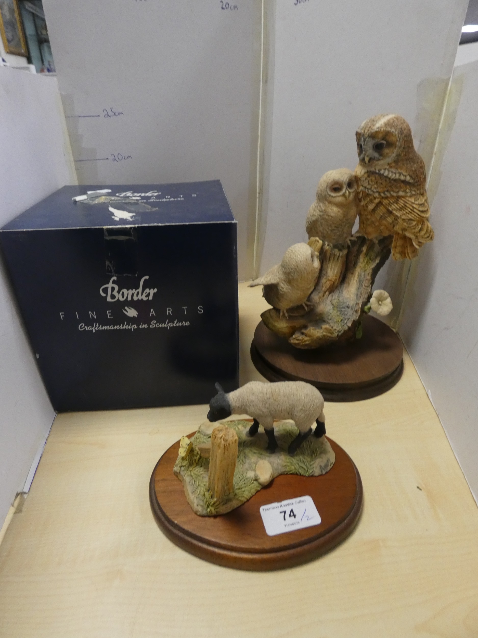 Border Fine Arts figure of a lamb, boxed, and a similar figure of an owl group. (2)
