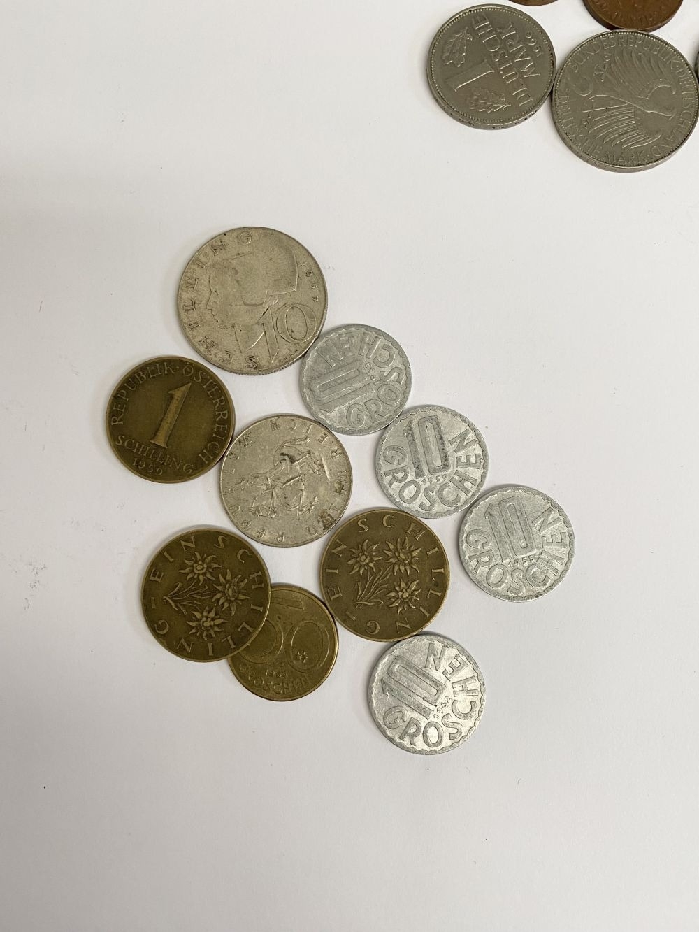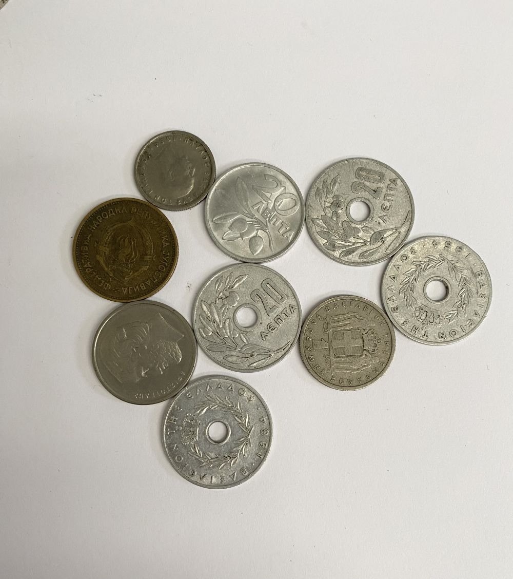 A COLLECTION OF WORLDWIDE COINS, to include rare United States of America Maryland Quarter dollar, French coins, German coins, Greek coins, Yugoslavia coin, Italian coins, Austrian coins etc. Condition as photographed.