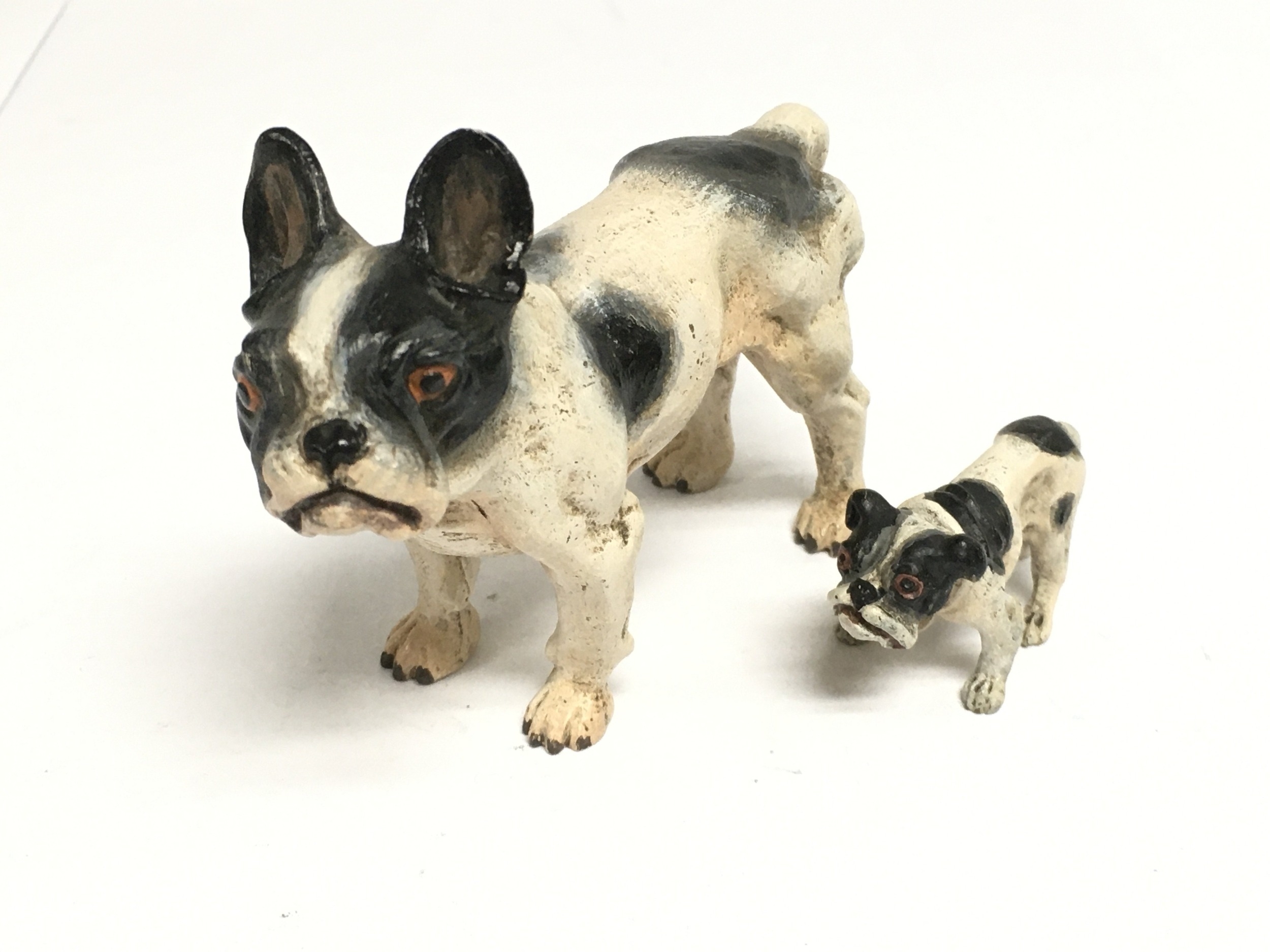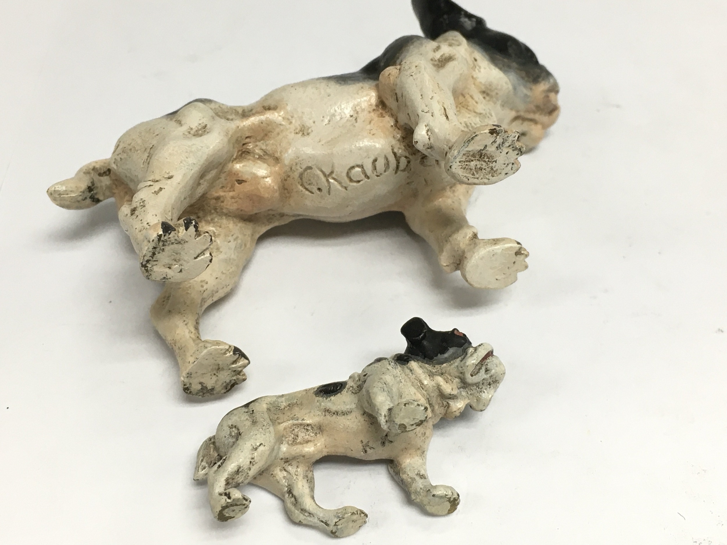 Two cold painted bronze figures of bulldogs, largest approx 7cm in height and marked C Kauba. Shipping category B.