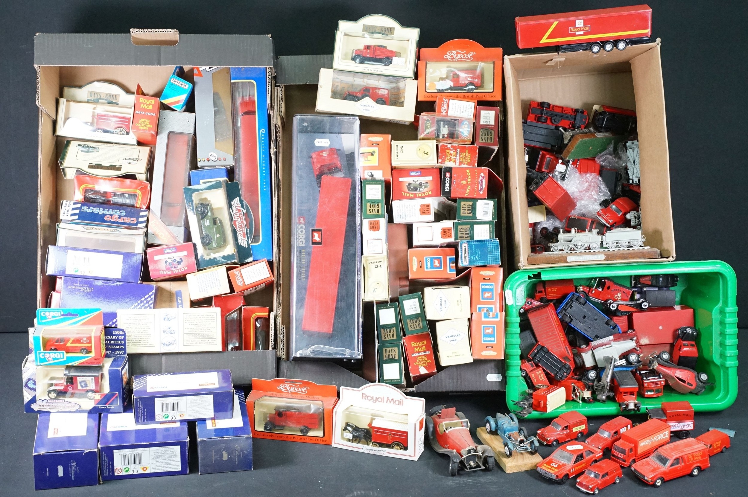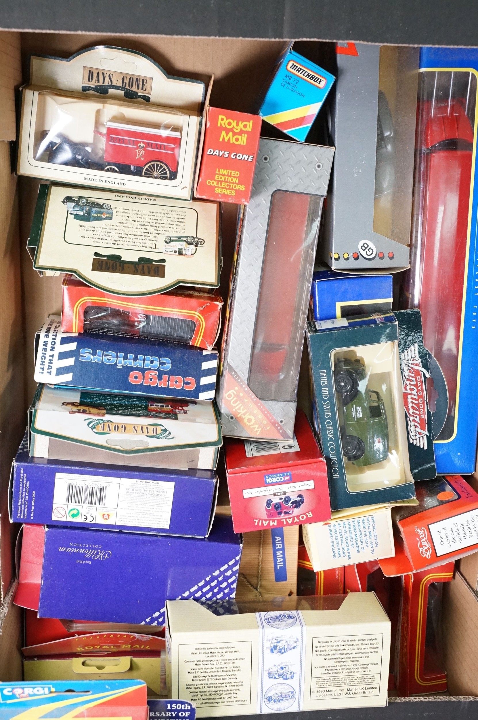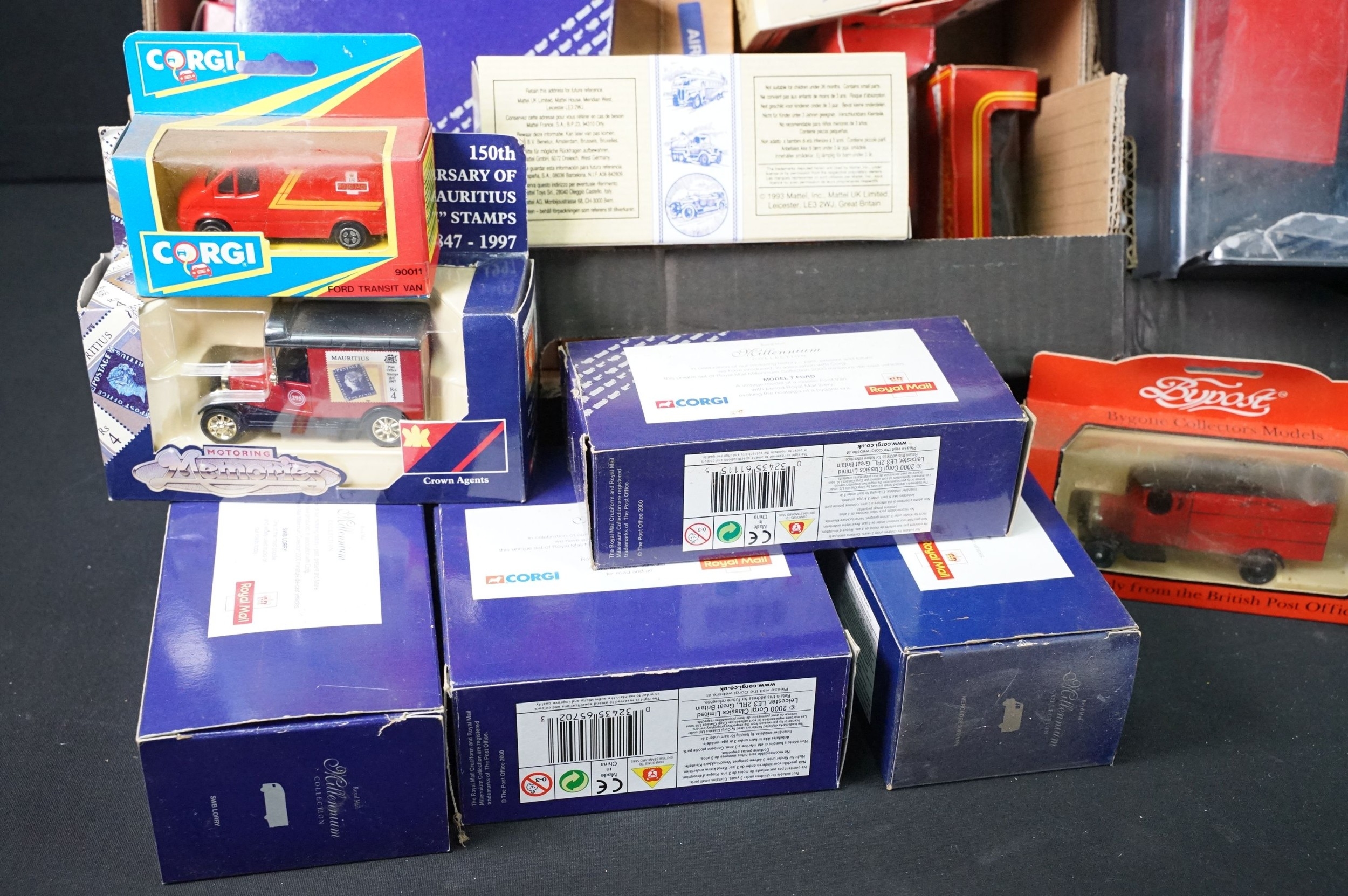 Over 60 boxed Royal Mail / postal related diecast models to include Corgi Millennium, Corgi Royal Mail, Matchbox Models of Yesteryear etc, diecast ex, box condition varies throughout, plus a quantity o unboxed Royal Mail and postal related diecast models (4 boxes)