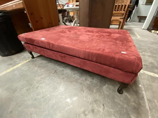 Burgundy upholstered footstool (35H 120W 82D cm)