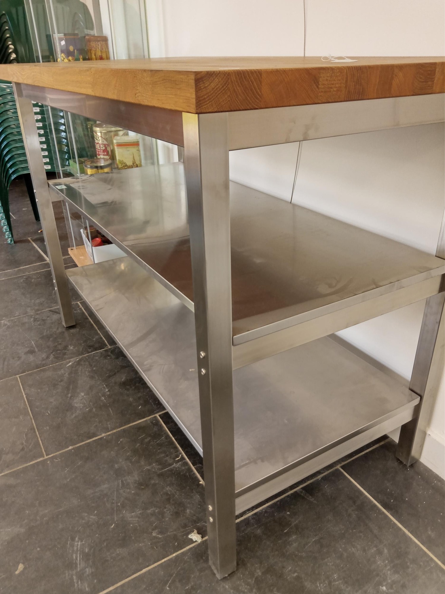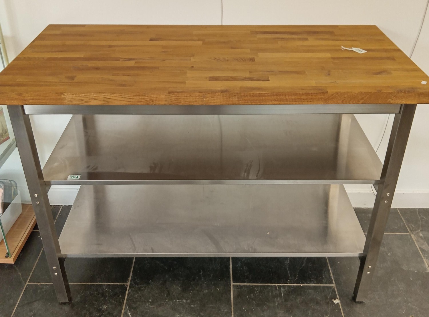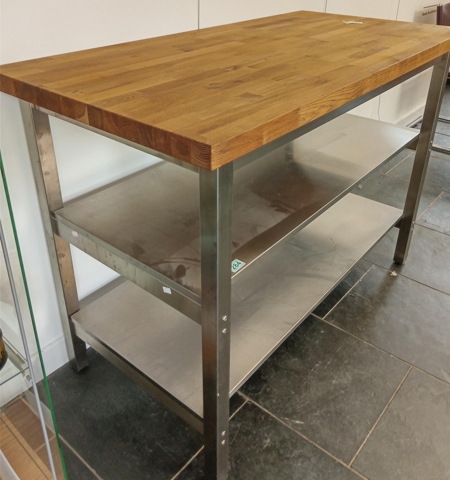 Stainless Steel and Oak Top Kitchen Island