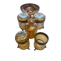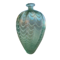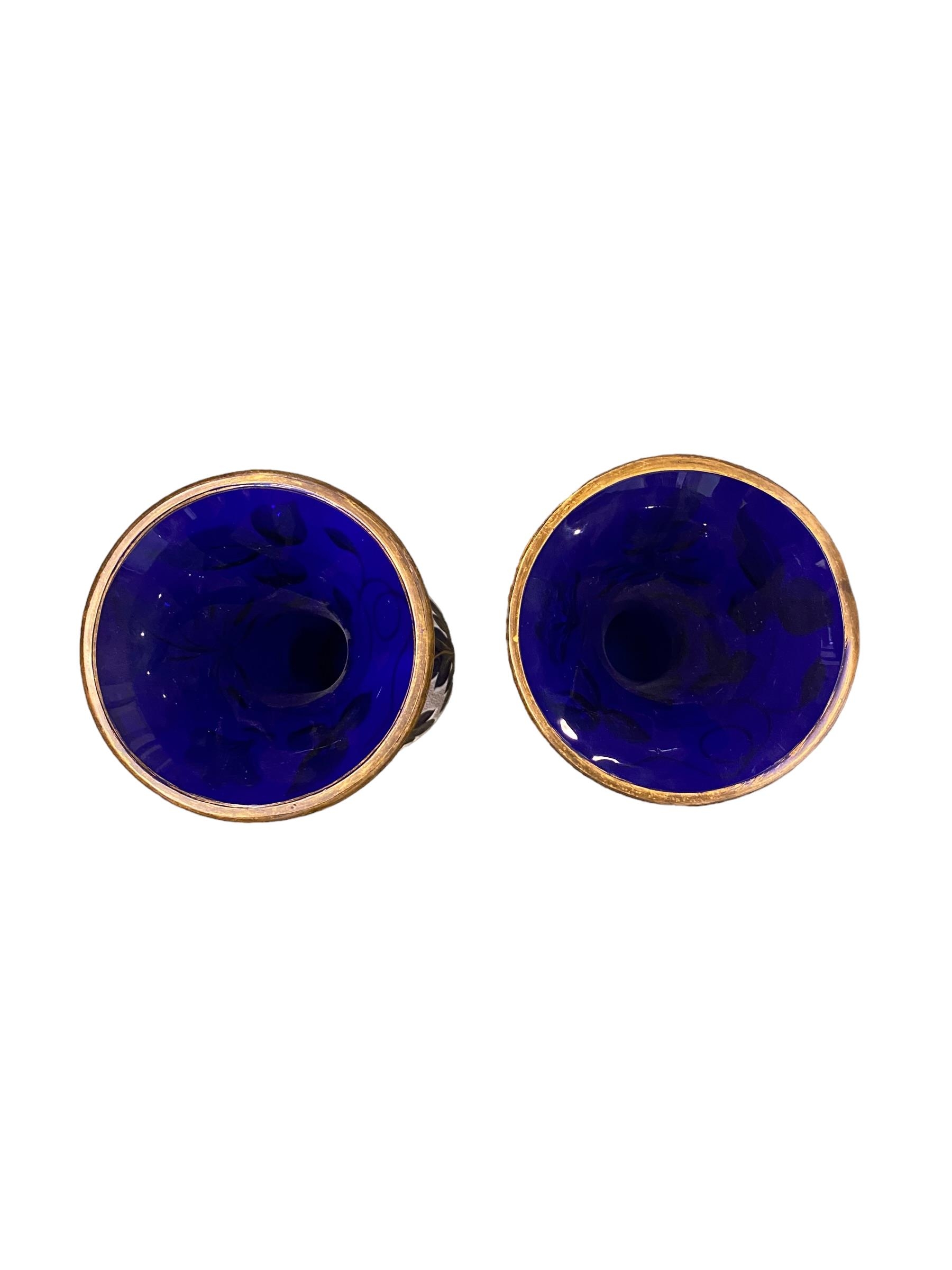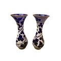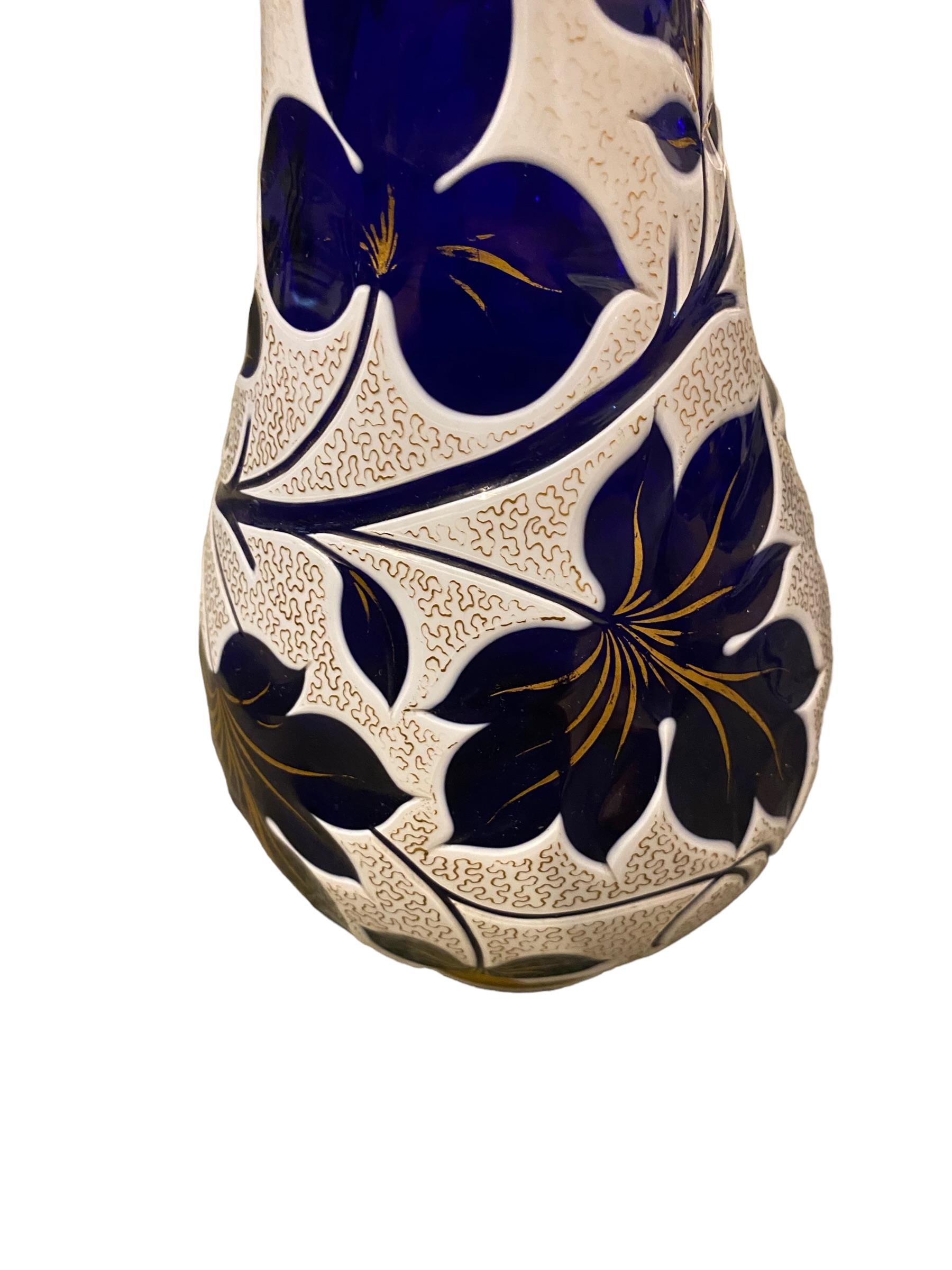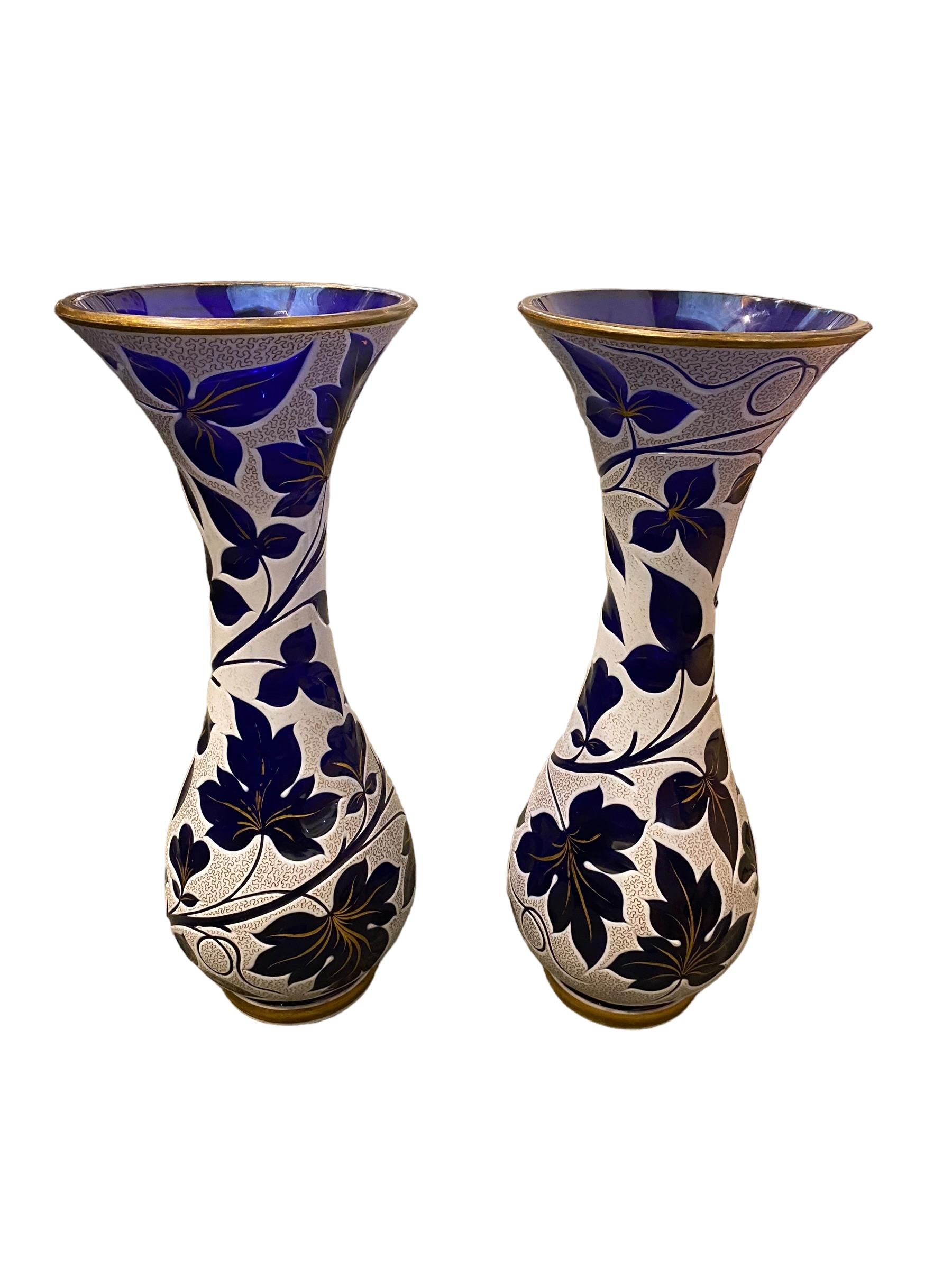 Pair of C20th blue white and gilt waisted glass vases 39 cm H