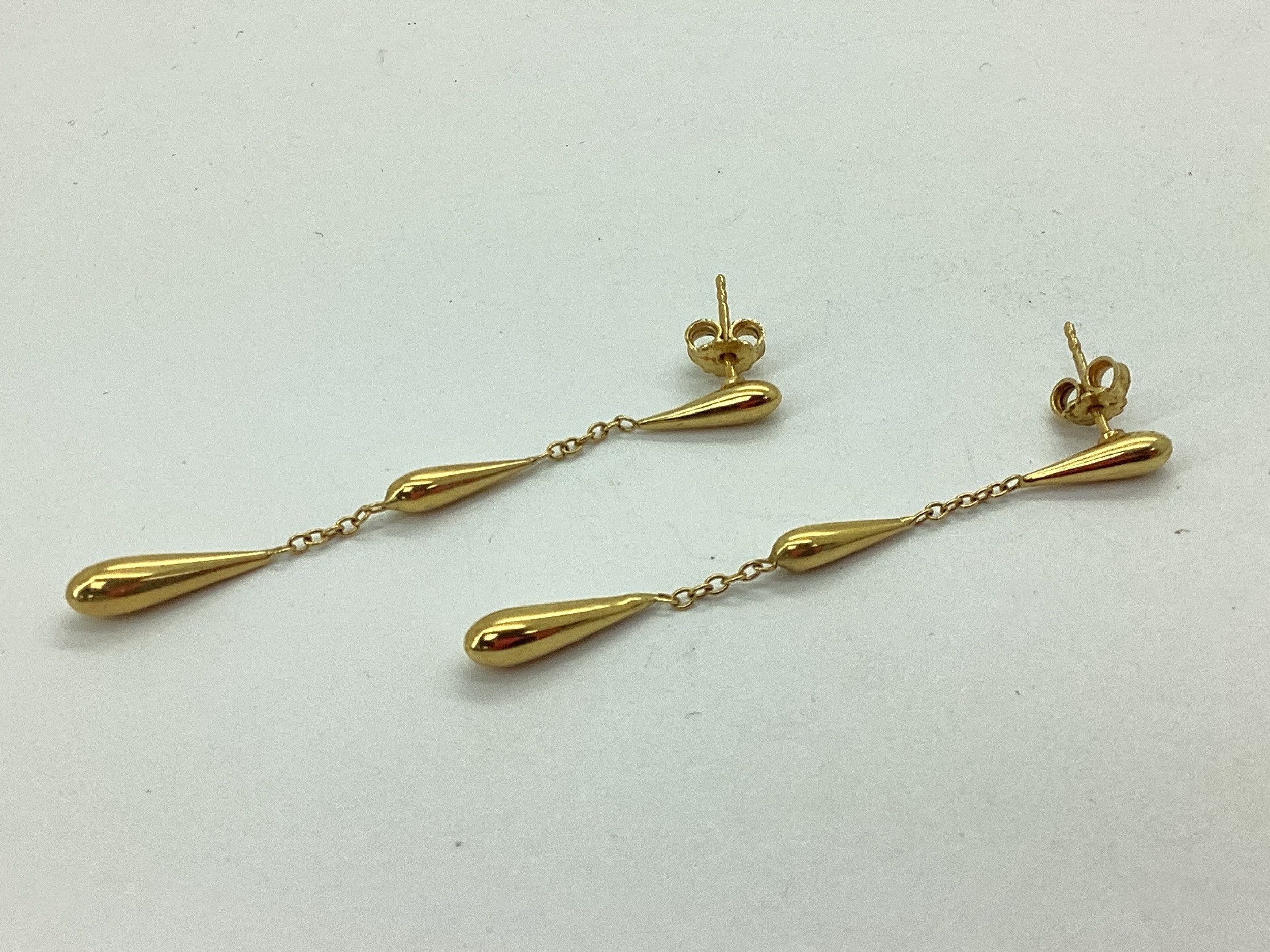 A Pair of Modern Chain Link Drop Earrings, stamped "375", to post and scroll fittings, approximately 5.5cm long (1.7grams).