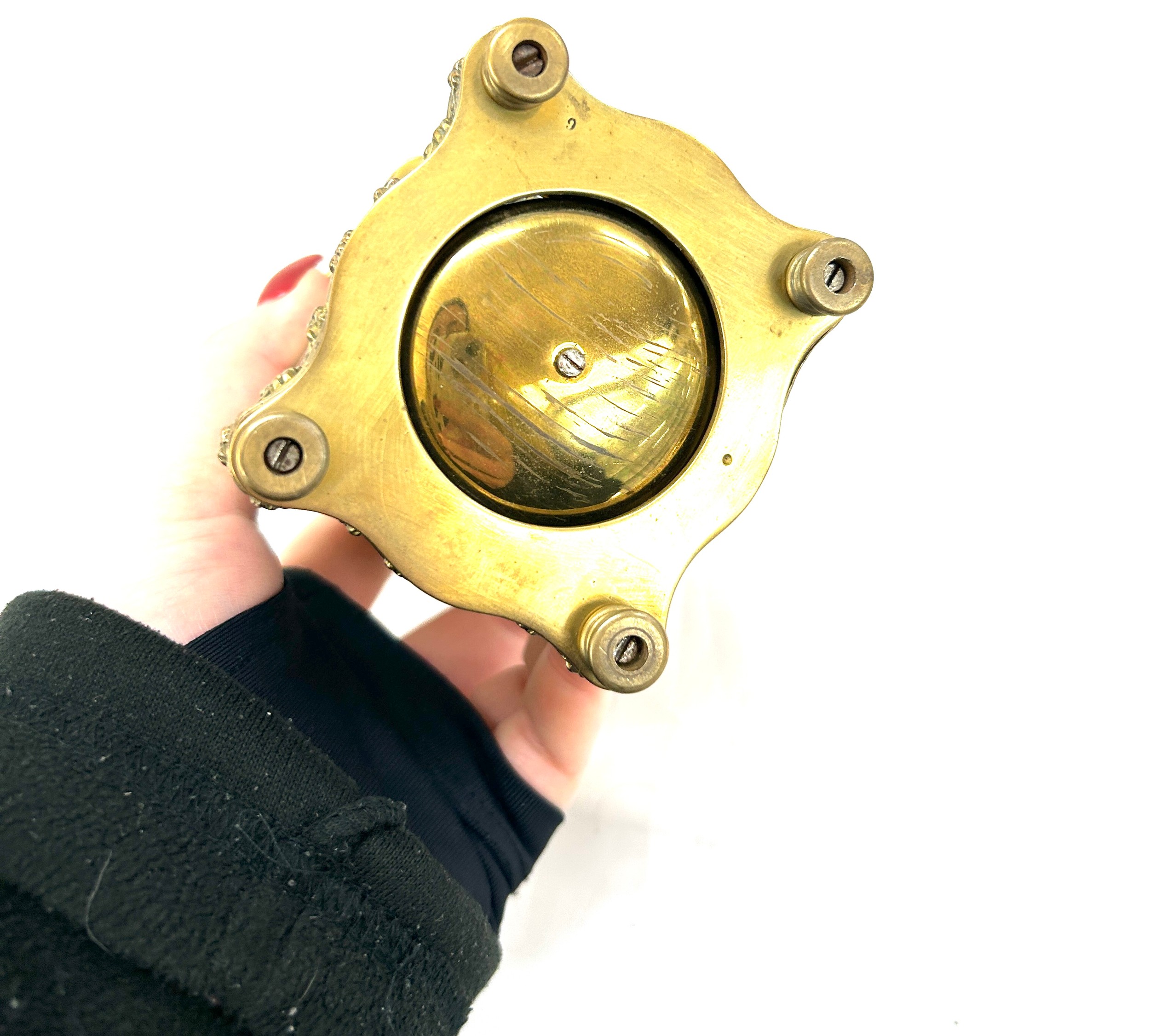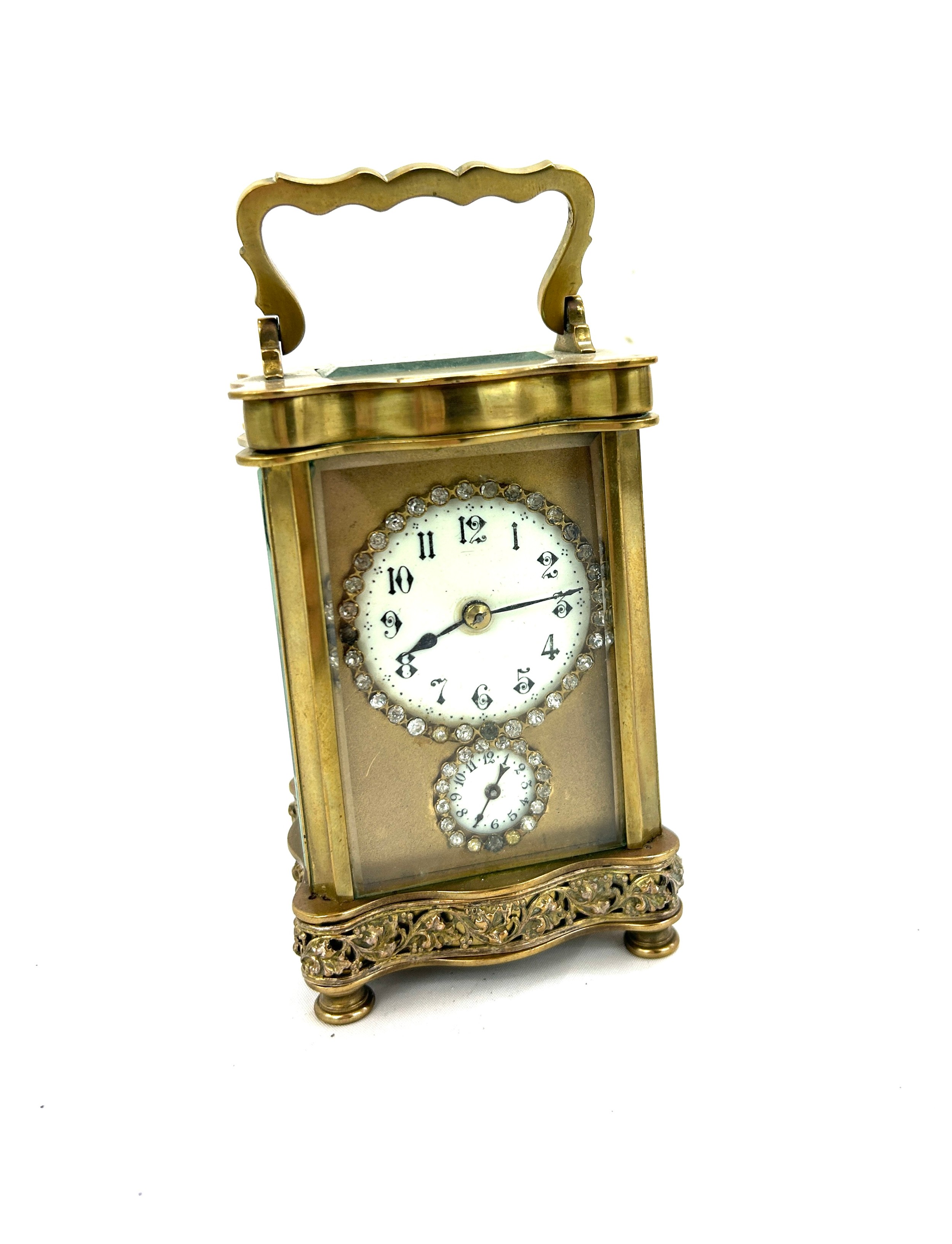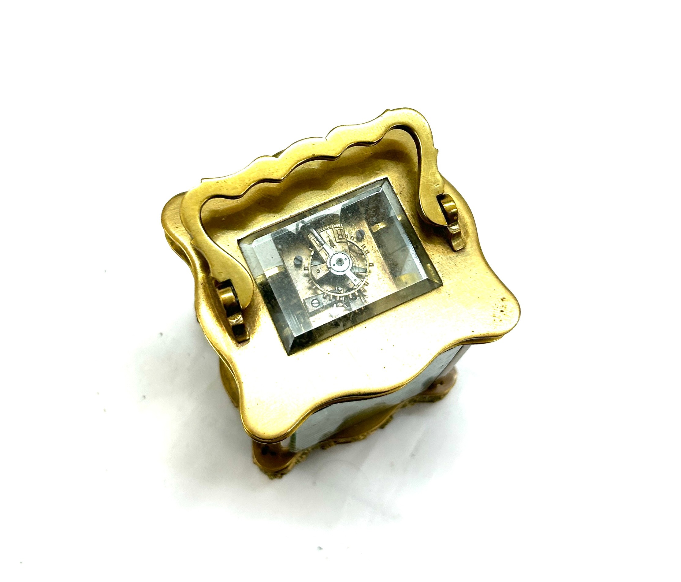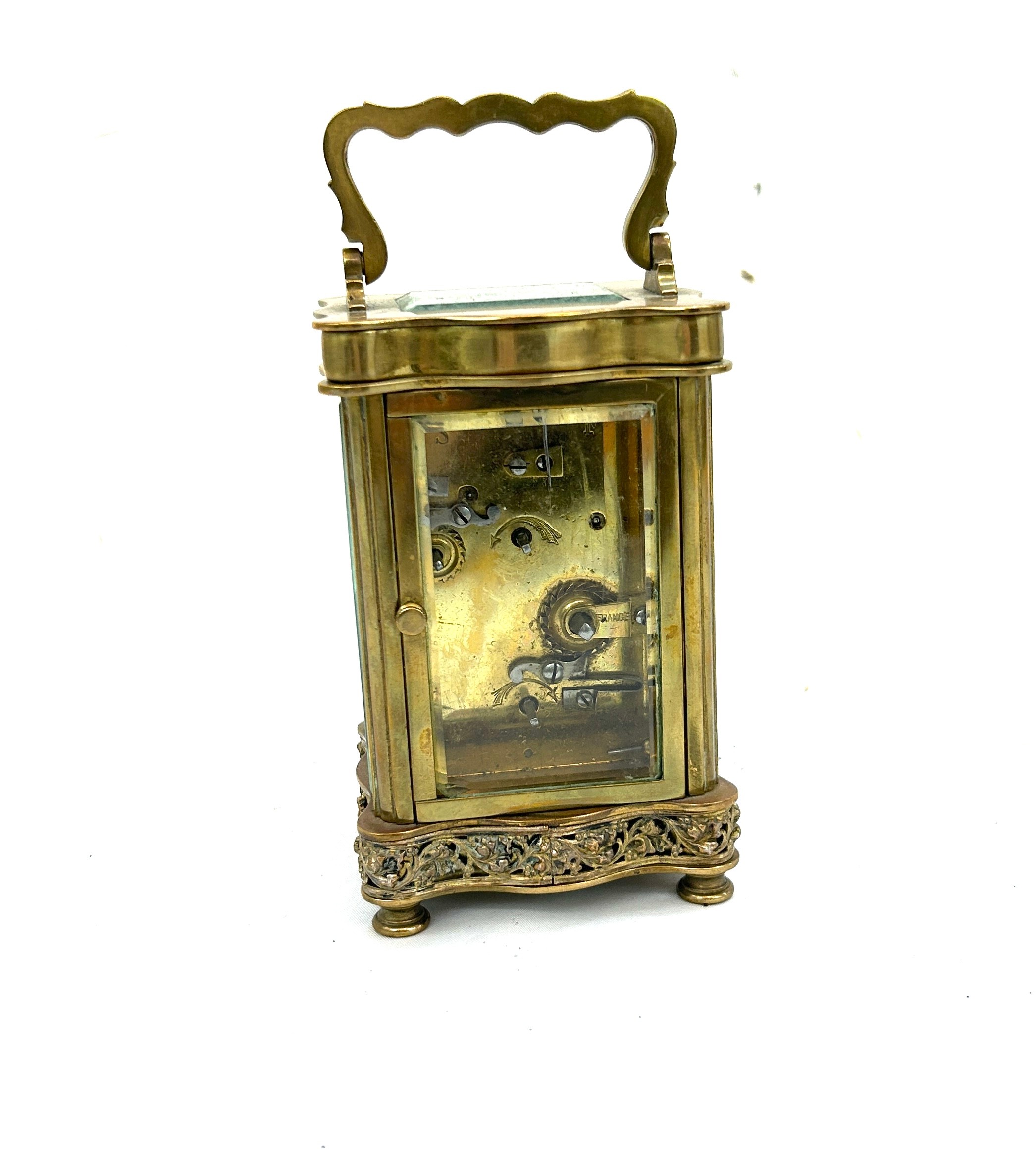 Antique brass carriage clock possibly French, strikes with bell