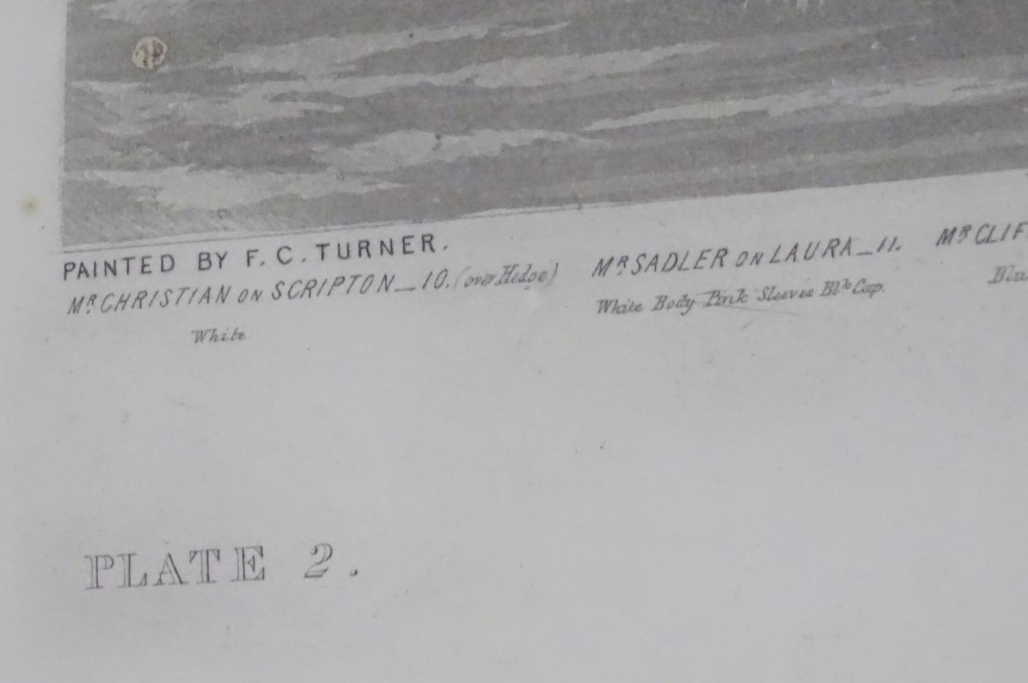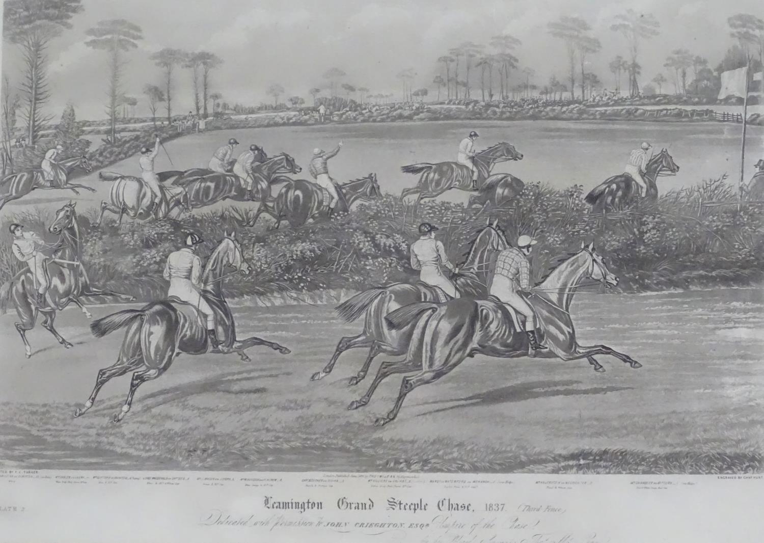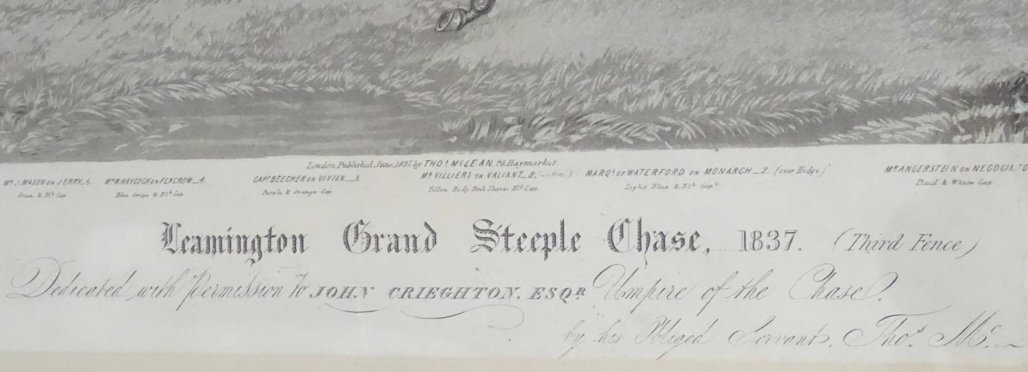 Charles Hunt (1803-1877), After Francis Calcraft Turner (act. 1810-1846), Engraving, Leamington Grand Steeple Chase, Third Fence, Plate 2. Titled with information under. Published by Thomas McLean, London, 1837. Approx. 14 1/2" x 23 3/4"