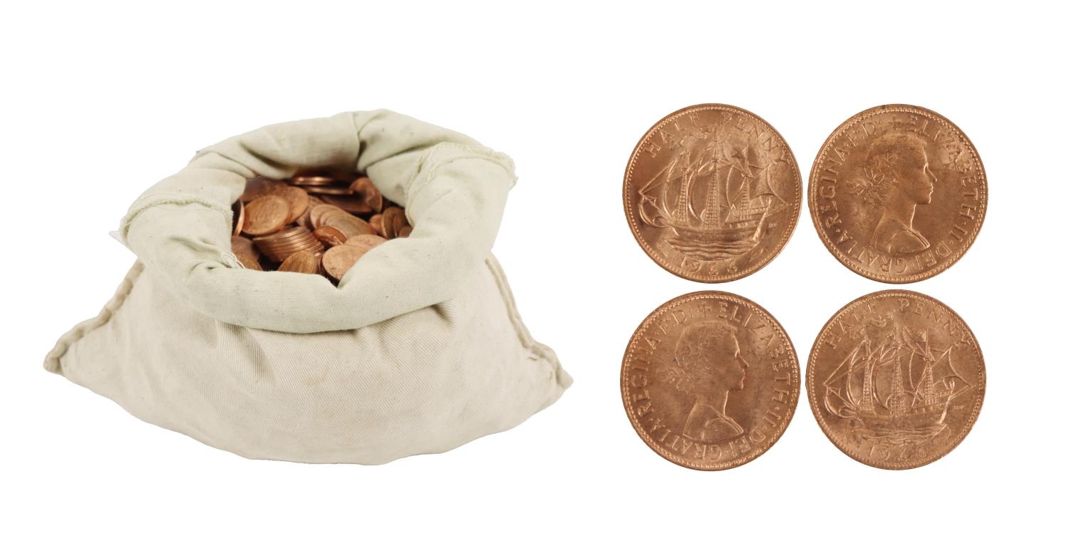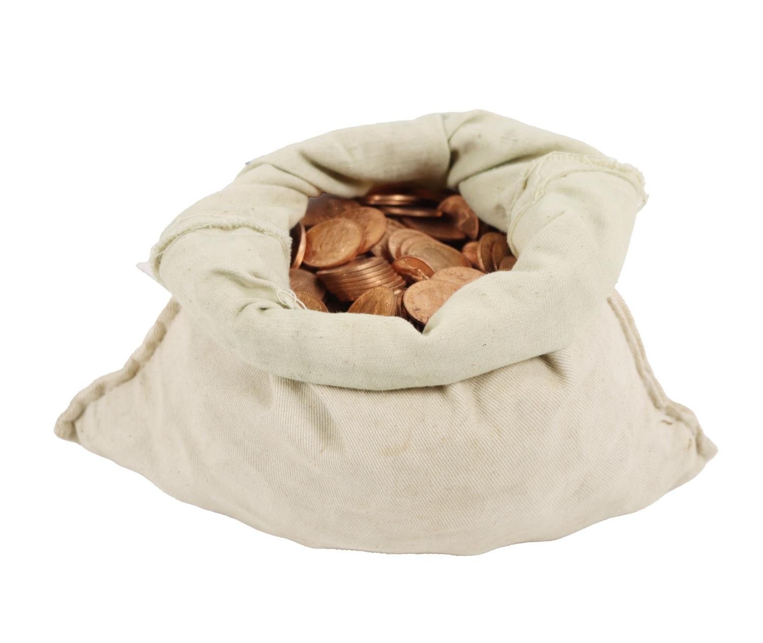 Coins: A large collection of English Pennies, of various dates (housed in white money sack), as a collection. (1)