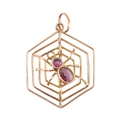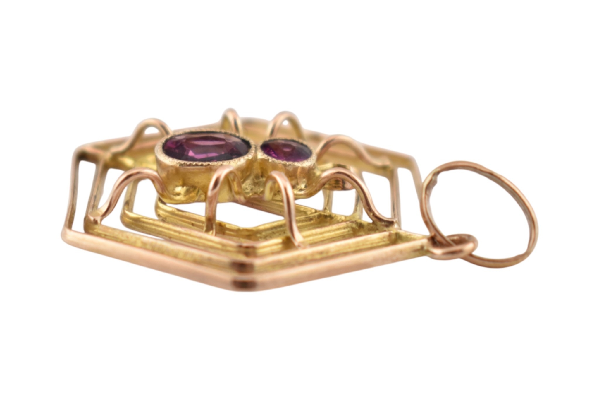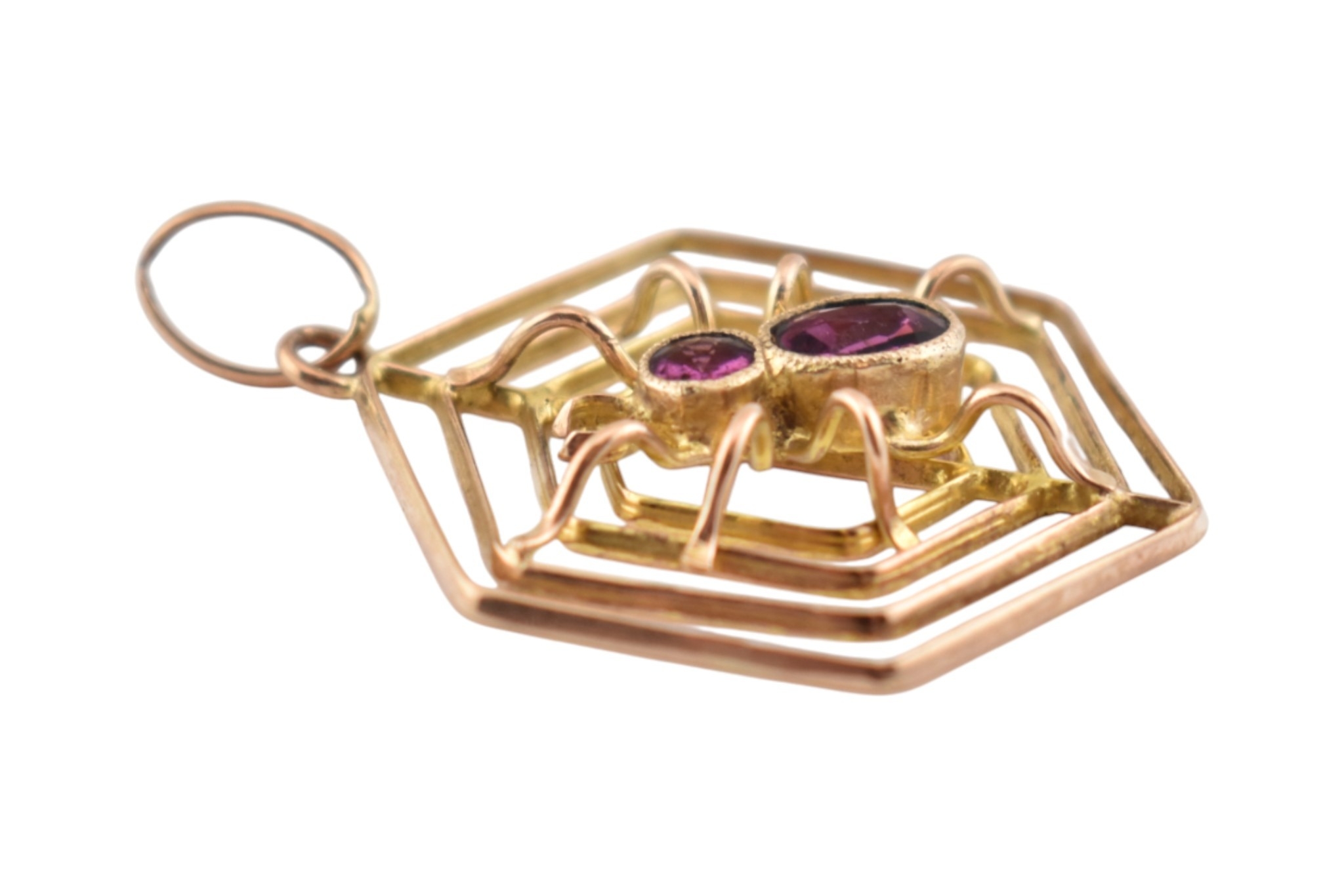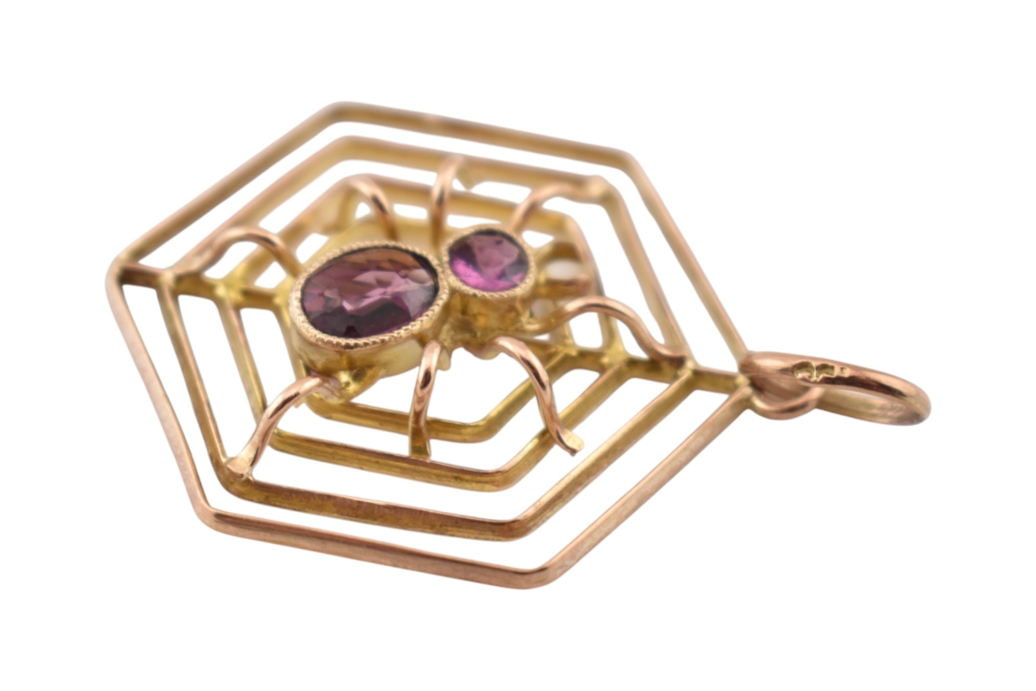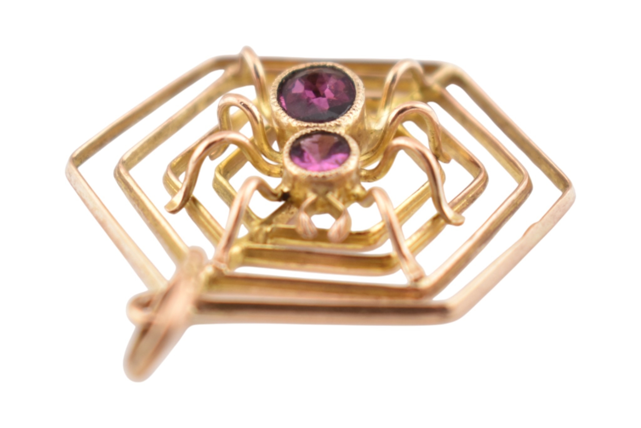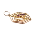 A 9ct gold spider gem set pendant. The pendant marked 9ct. Measures 3cm including bail.
