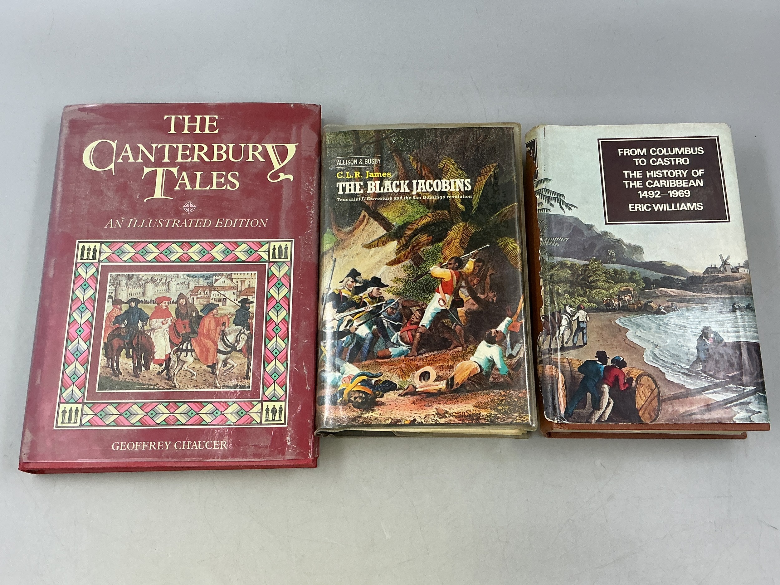 Three Vintage Hard Back Reading Books to include C.L.R james The Black Jacobins, Eric Williams From Columbus to Castro 1942-1969, Geoffrey Chauncer The Canterbury Tales