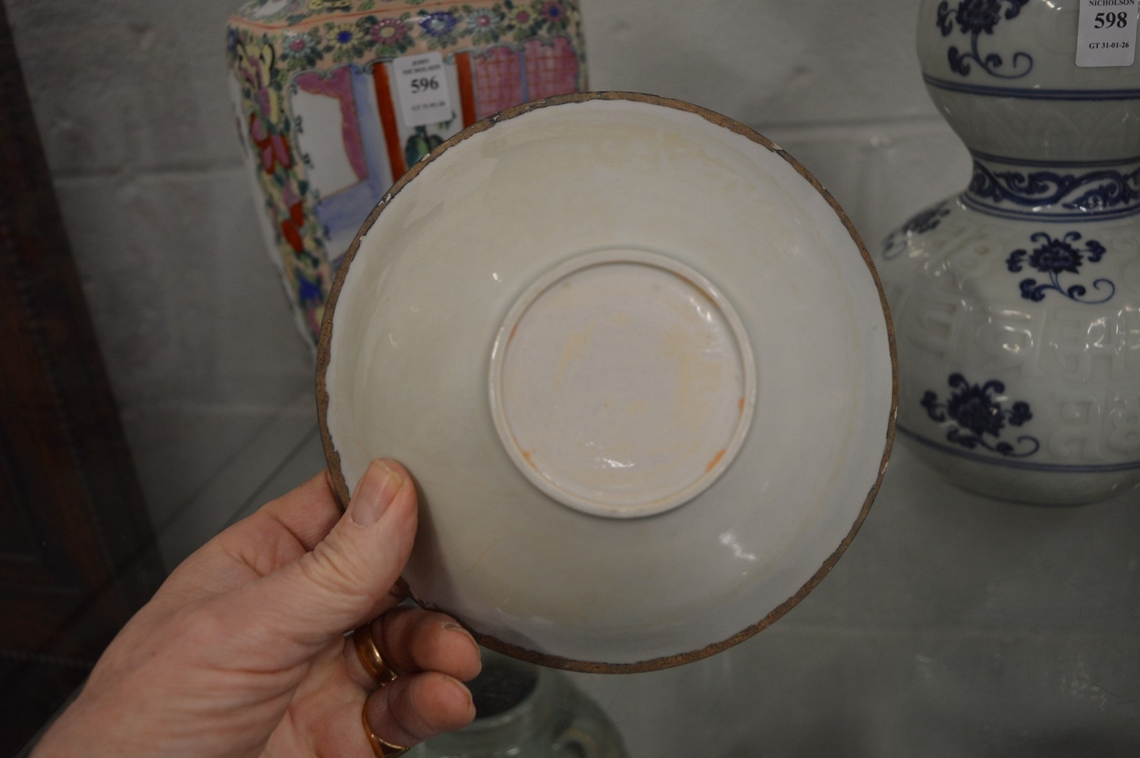 Chinese porcelain circular bowl with incised decoration.