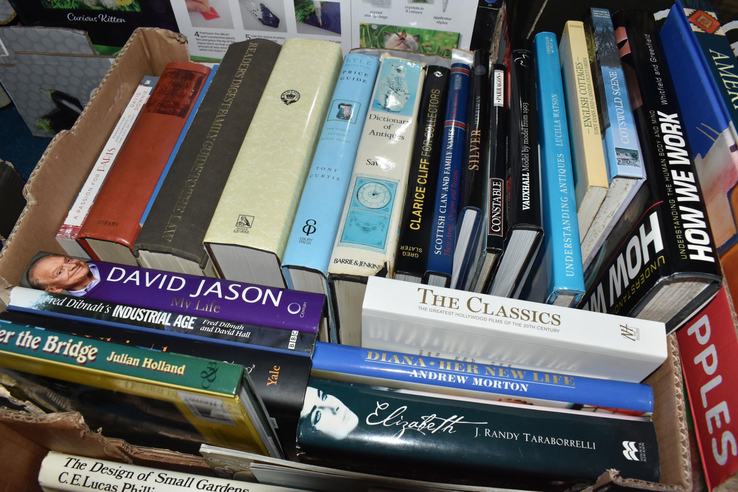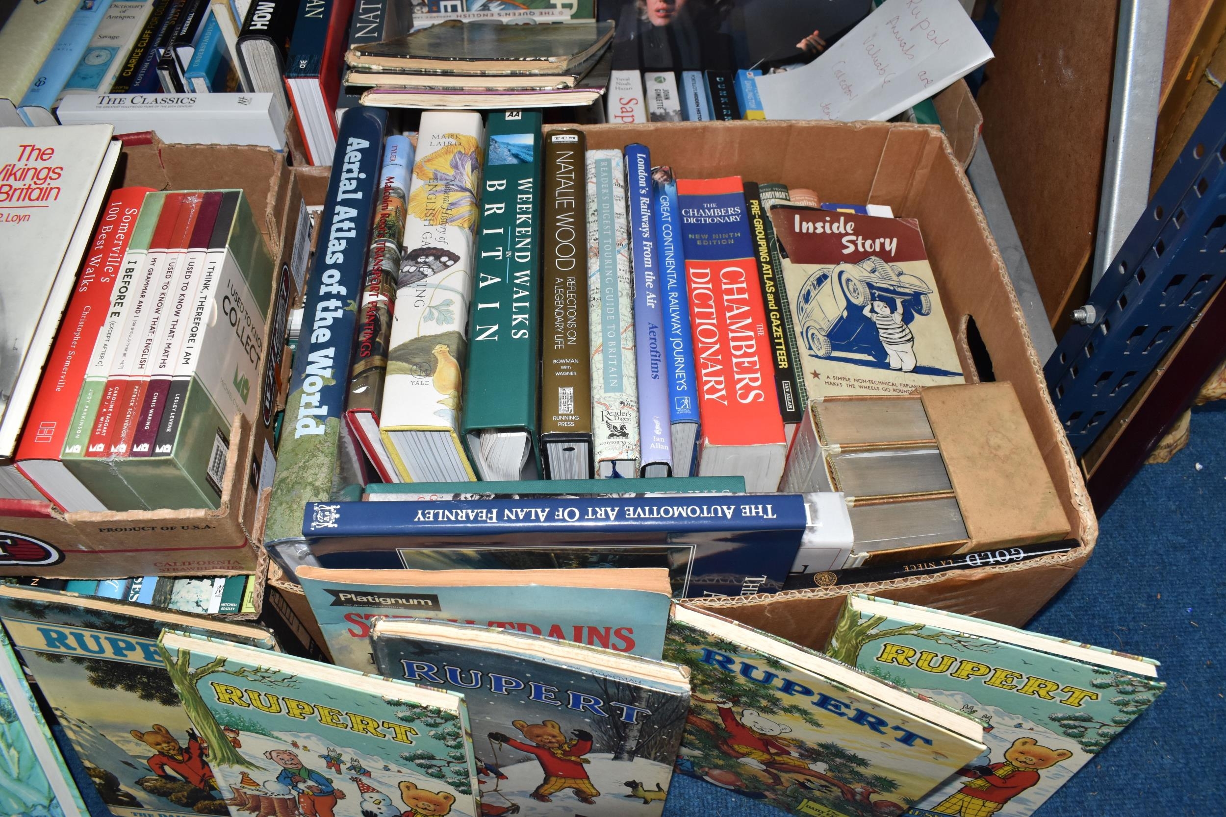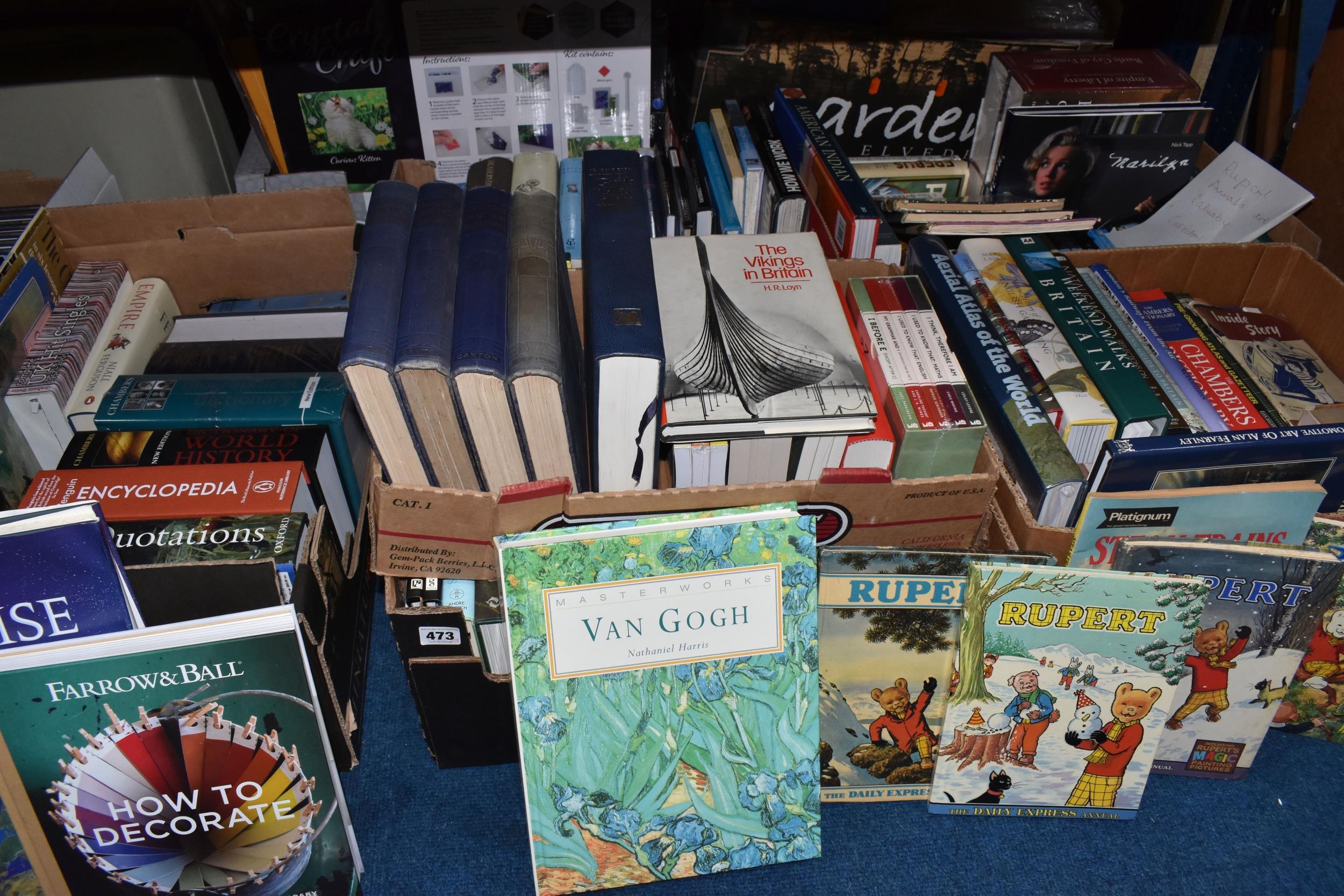 SIX BOXES OF BOOKS, to include approximately one hundred titles in paperback and hardback formats, subjects to include gardening, art, antiques and collectables, reference, Great Britain, Rupert annuals, history, etc (6 boxes) (sd)